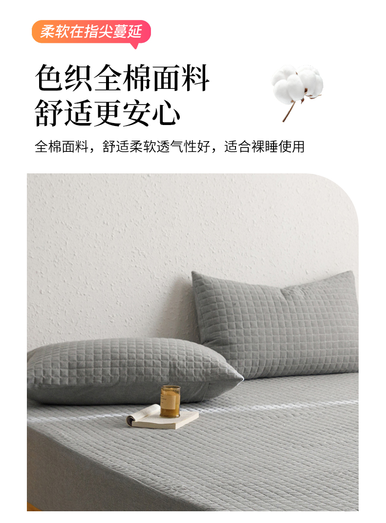(总)忘忧草 2025新款A类针织棉夹棉防水床笠隔尿垫床罩,淡雅白,豆沙红,翡翠绿,丽人粉,浅米黄,绅士灰