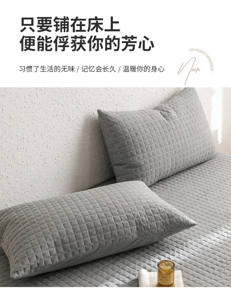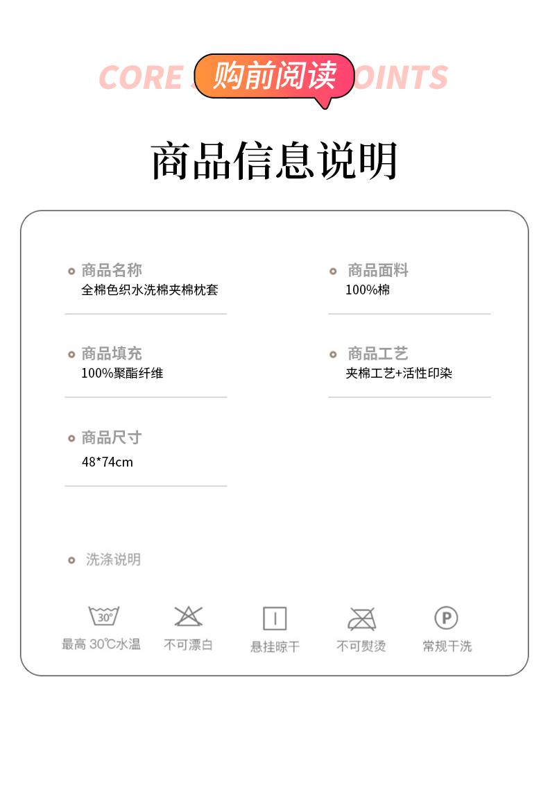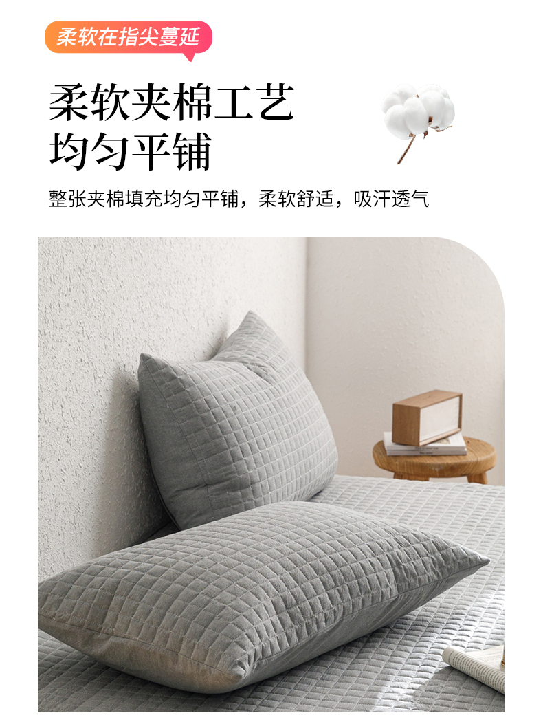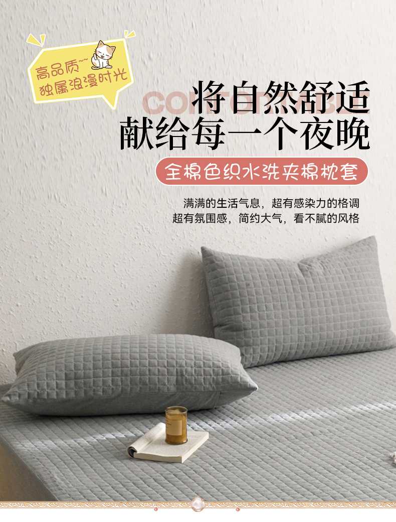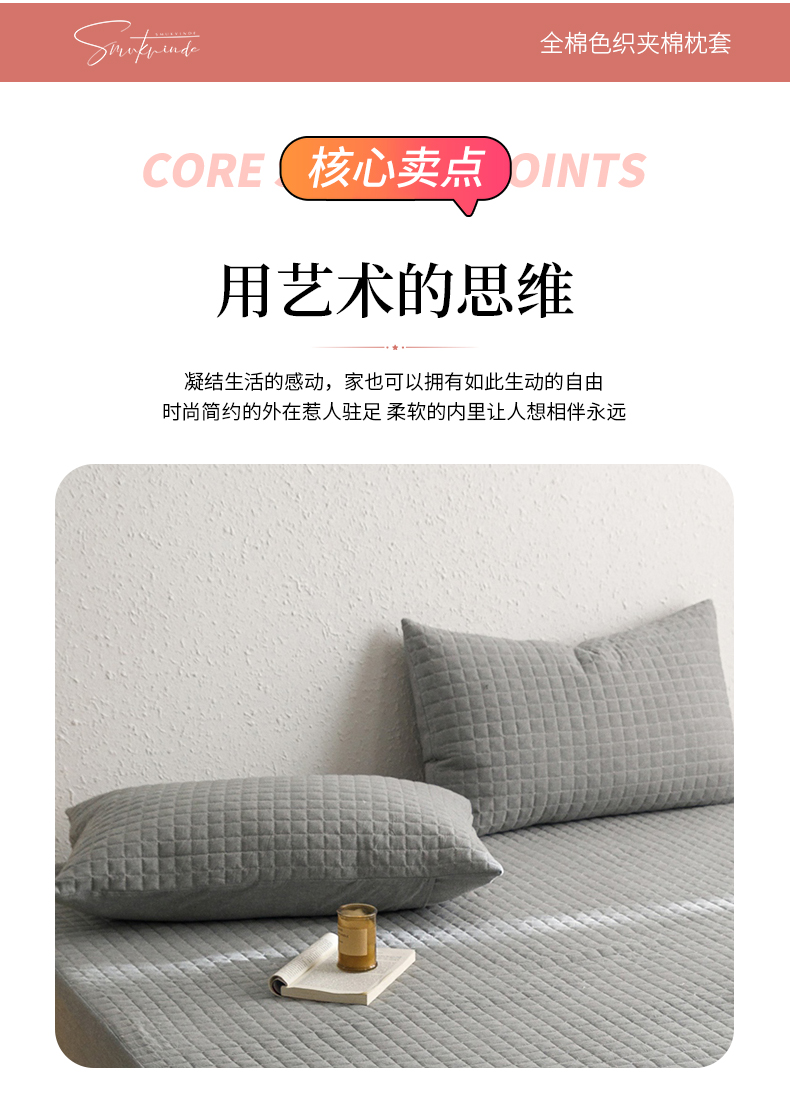 商品名称:忘忧草 2024新款全棉色织水洗棉夹棉枕套-格韵 格韵-浅灰