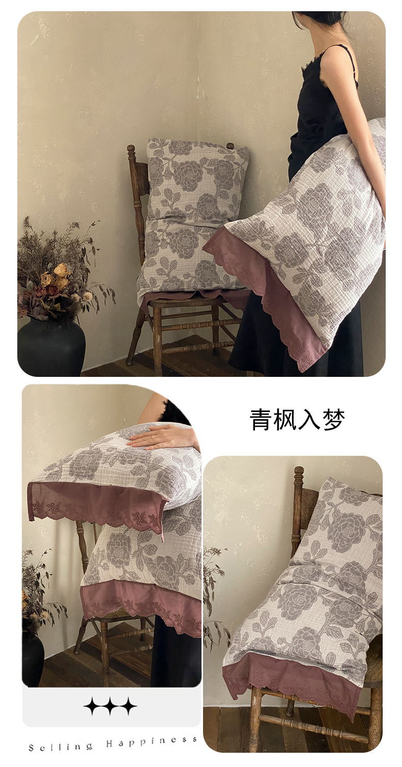 商品名称:麻依 2024新款法式四层纱布枕套花边款 青枫入梦
