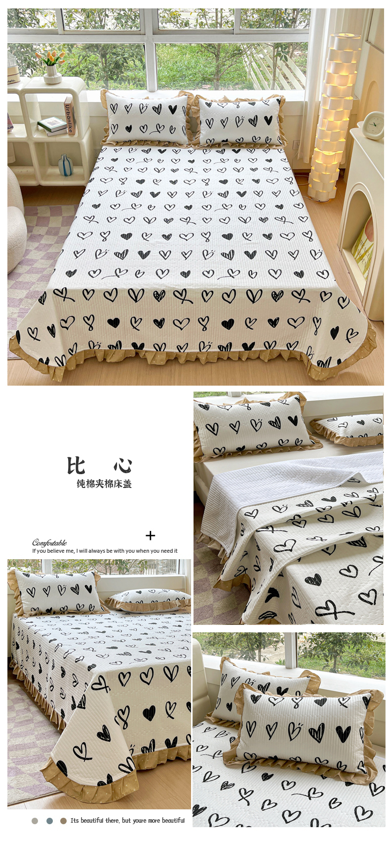 2024新款13372全棉斜纹夹棉绗缝纯棉花边床盖 比心
