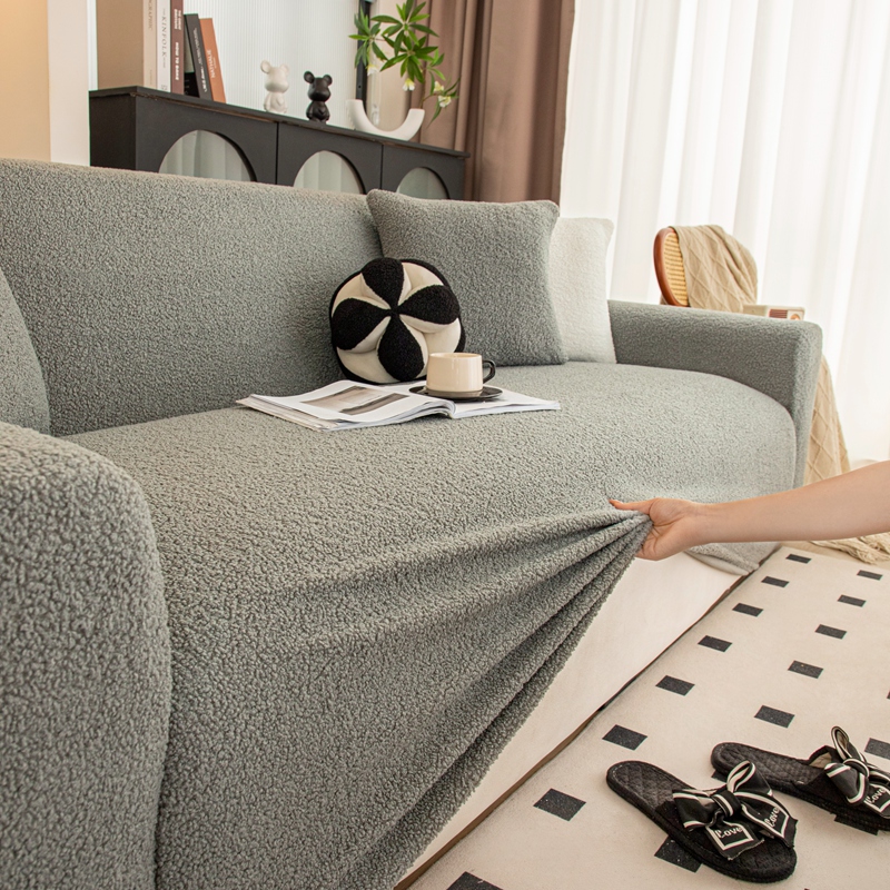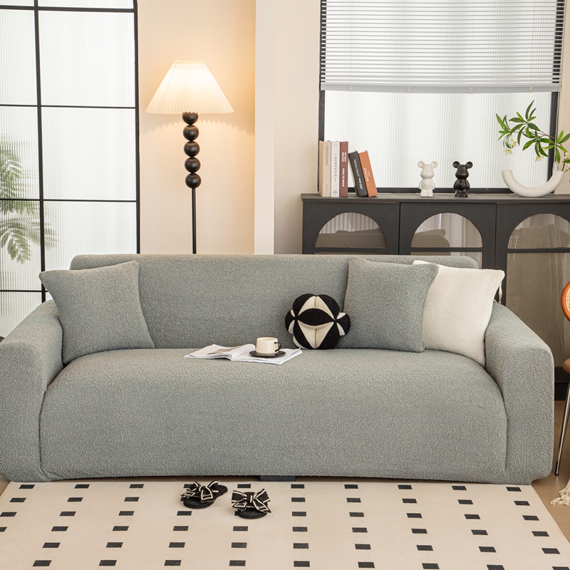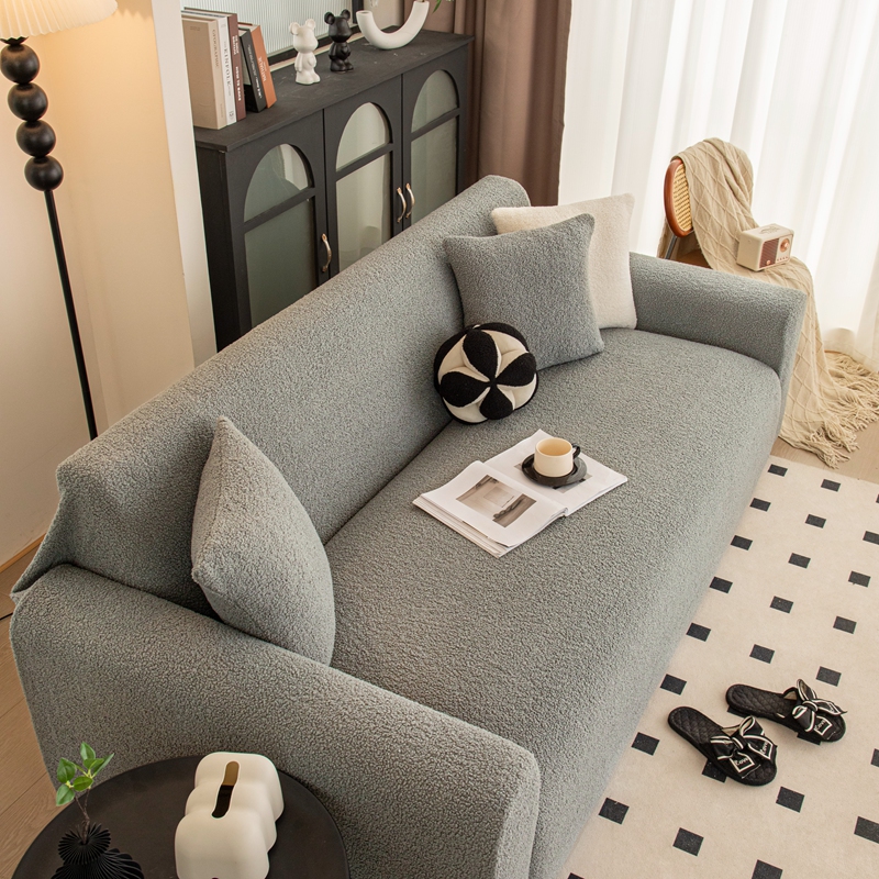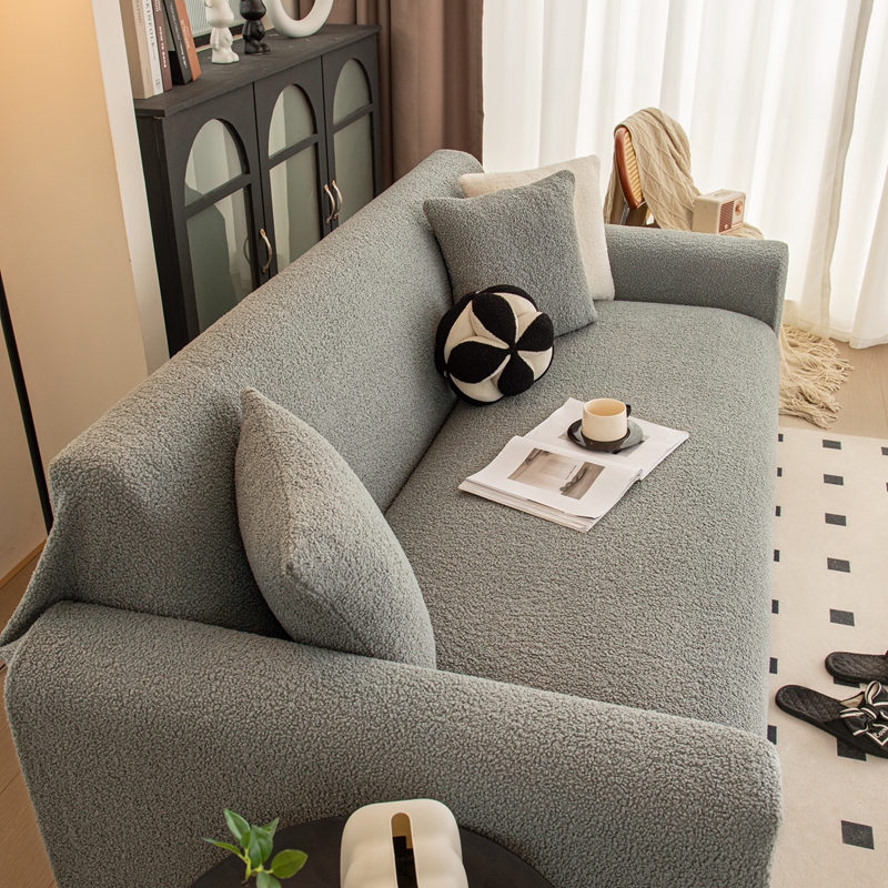 沐沐家纺 2026新款泰迪绒沙发套 青色