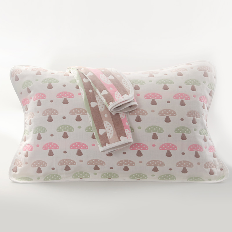(买家秀爆款花型不断货)A类母婴级全棉纯棉六层纱多功能枕巾多层宽边枕巾无印风流苏纱布枕巾50*80cm/对 蘑菇