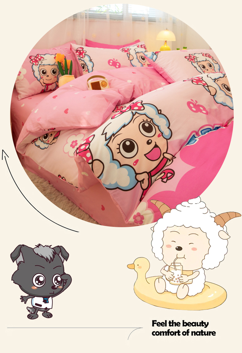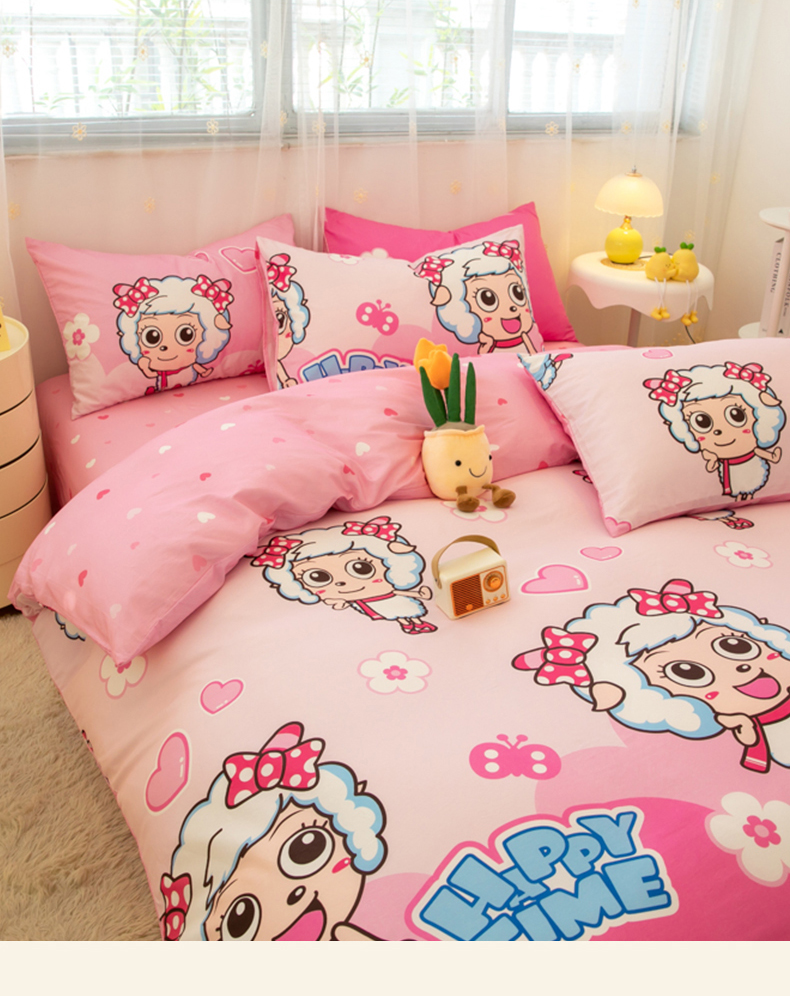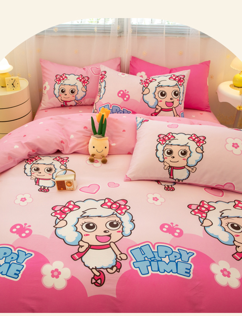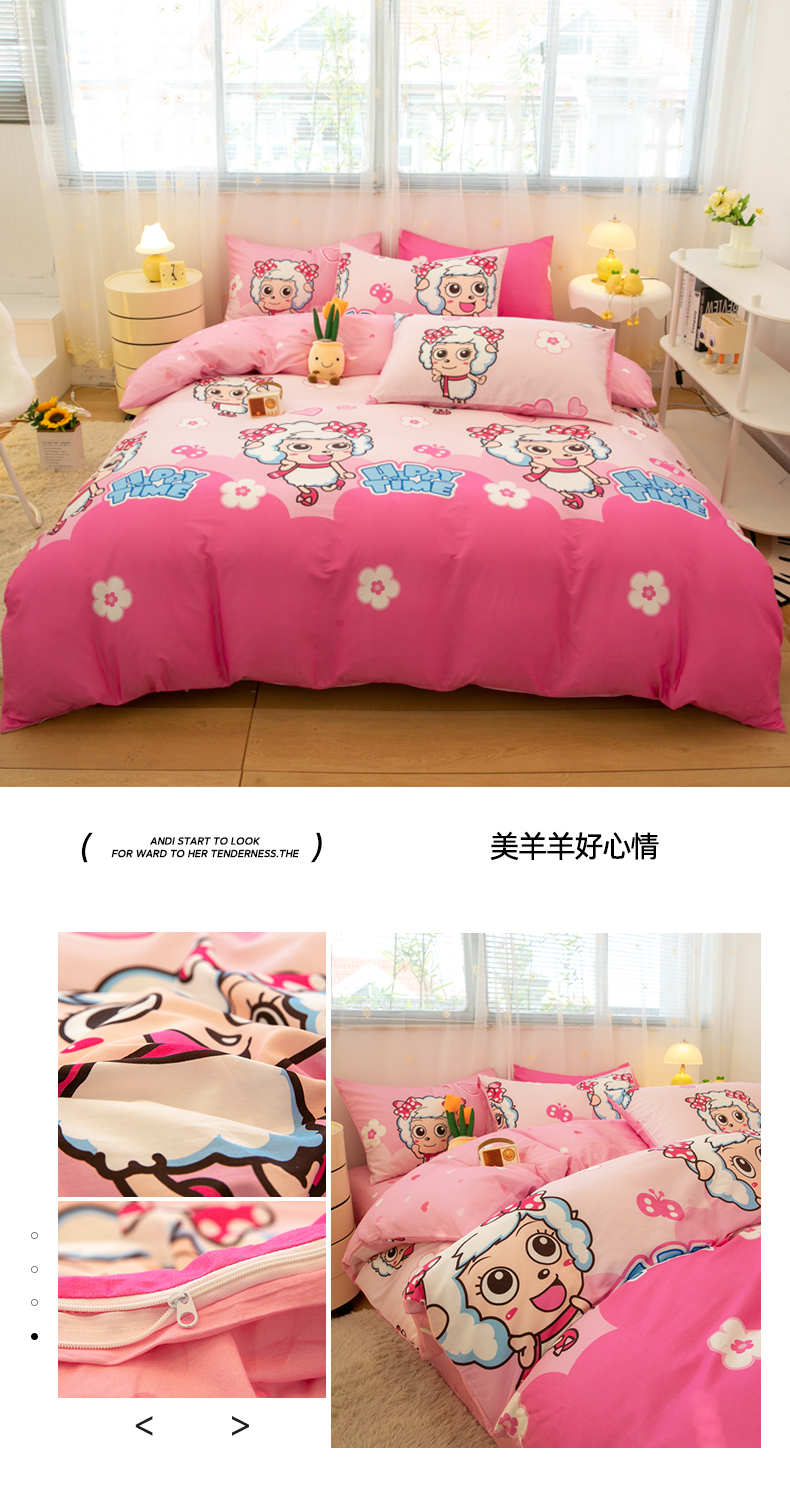 当前位置: 91家纺网 > 商品网购 > 床品套件 > 四件套 > 全棉普通四件套 > 简宜家居(朝初家纺) 2025新款40支斜纹12868纯棉全棉喜羊羊灰太狼系列四件套 美羊羊好心情