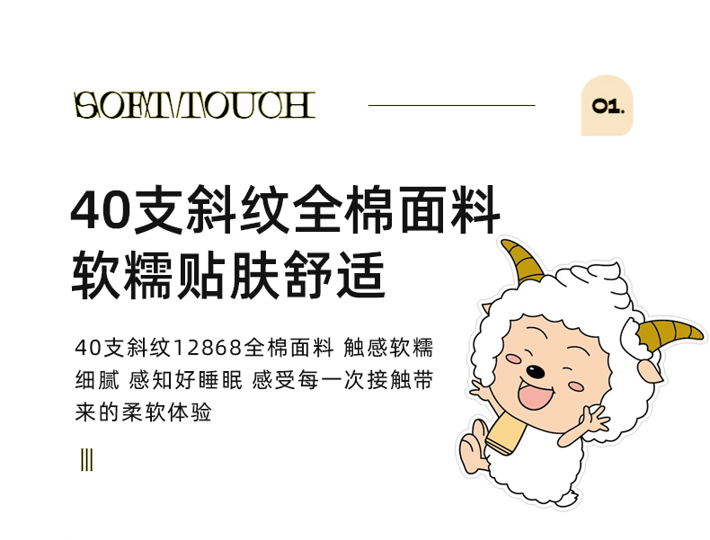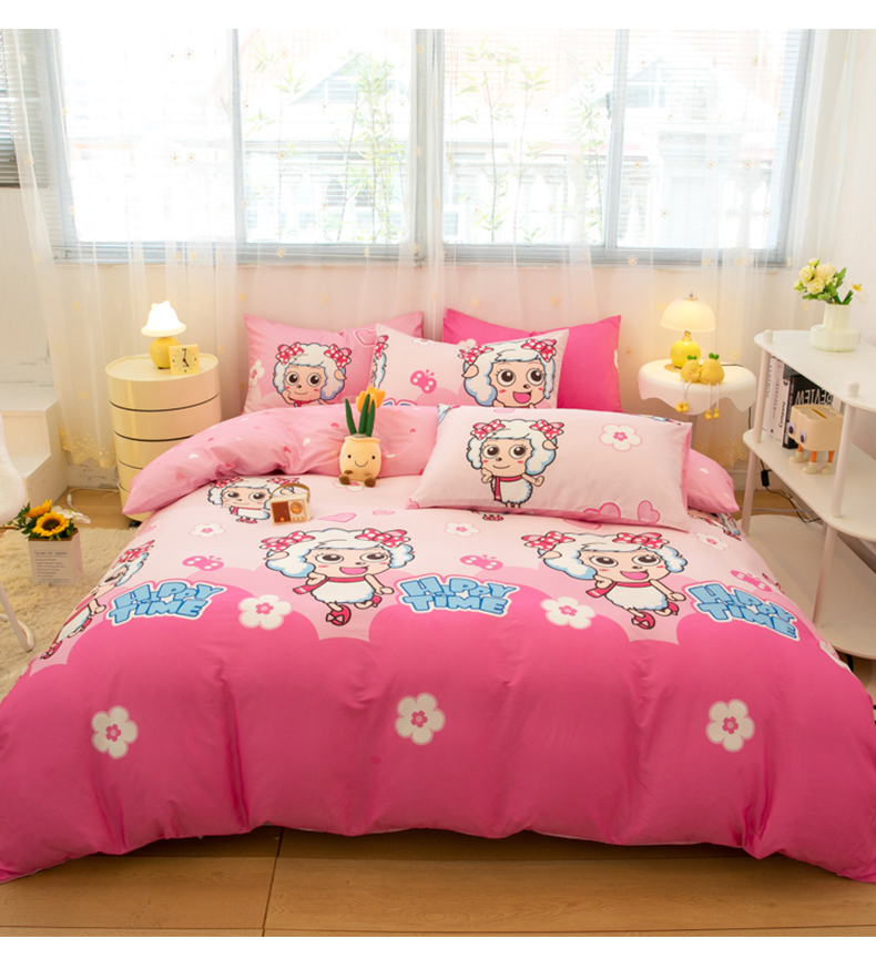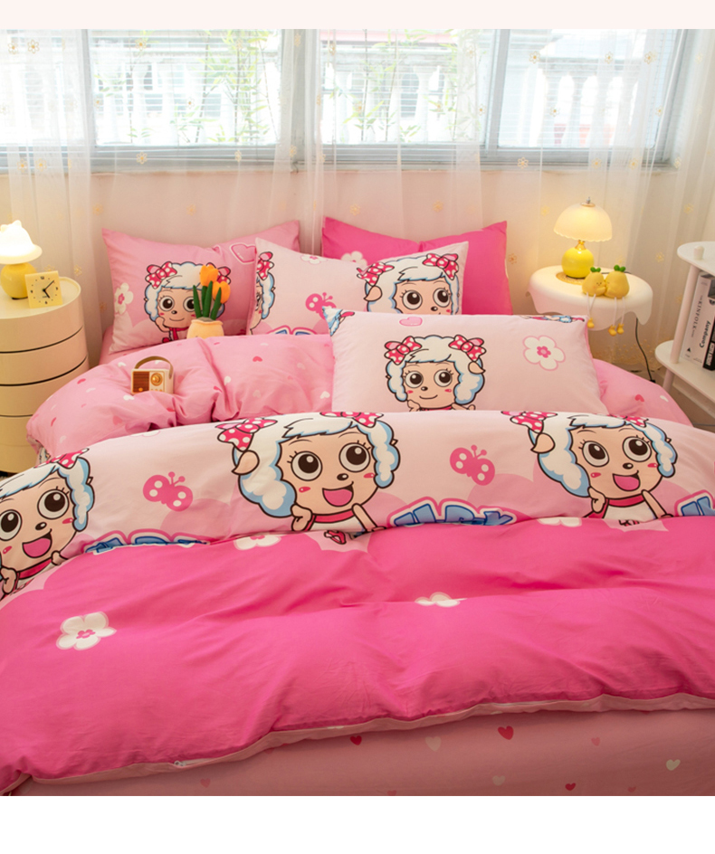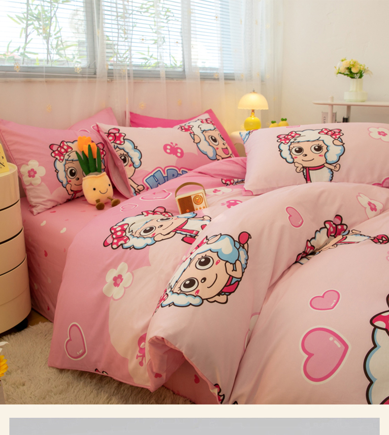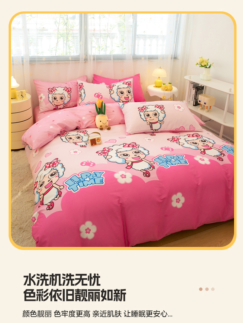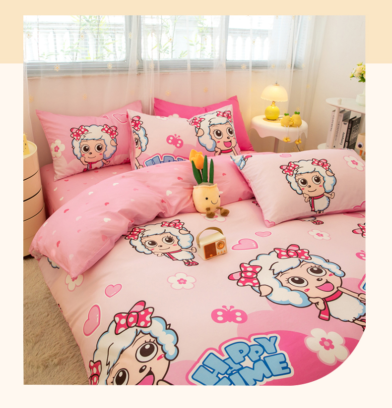 当前位置: 91家纺网 > 商品网购 > 床品套件 > 四件套 > 全棉普通四件套 > 简宜家居(朝初家纺) 2025新款40支斜纹12868纯棉全棉喜羊羊灰太狼系列四件套 美羊羊好心情