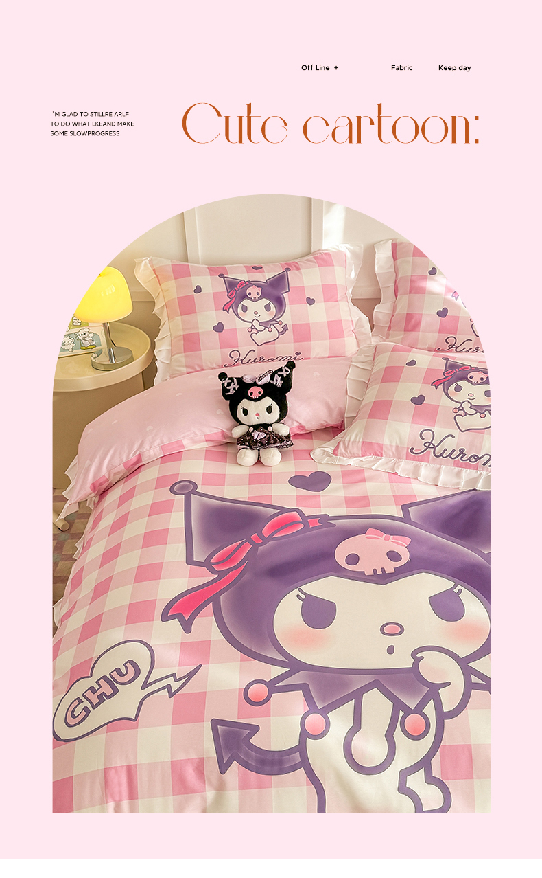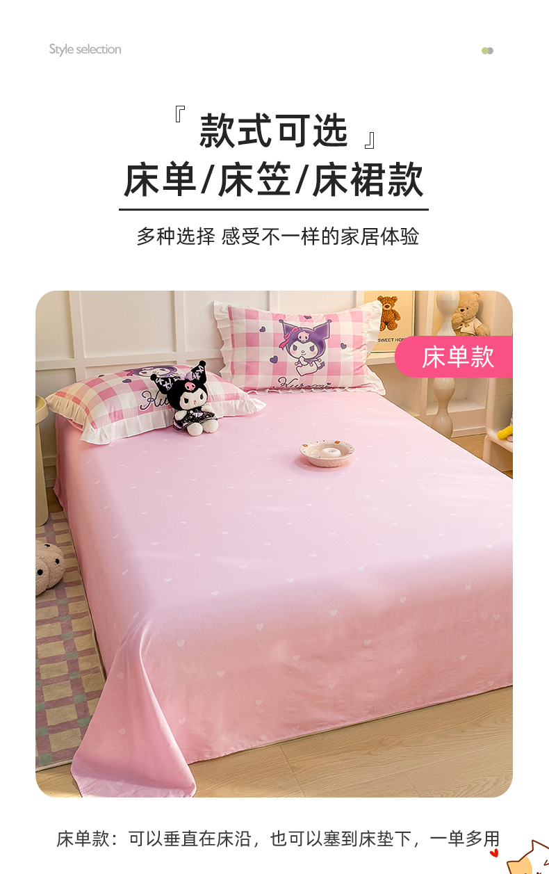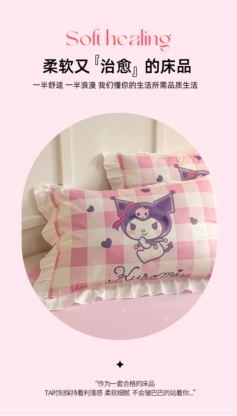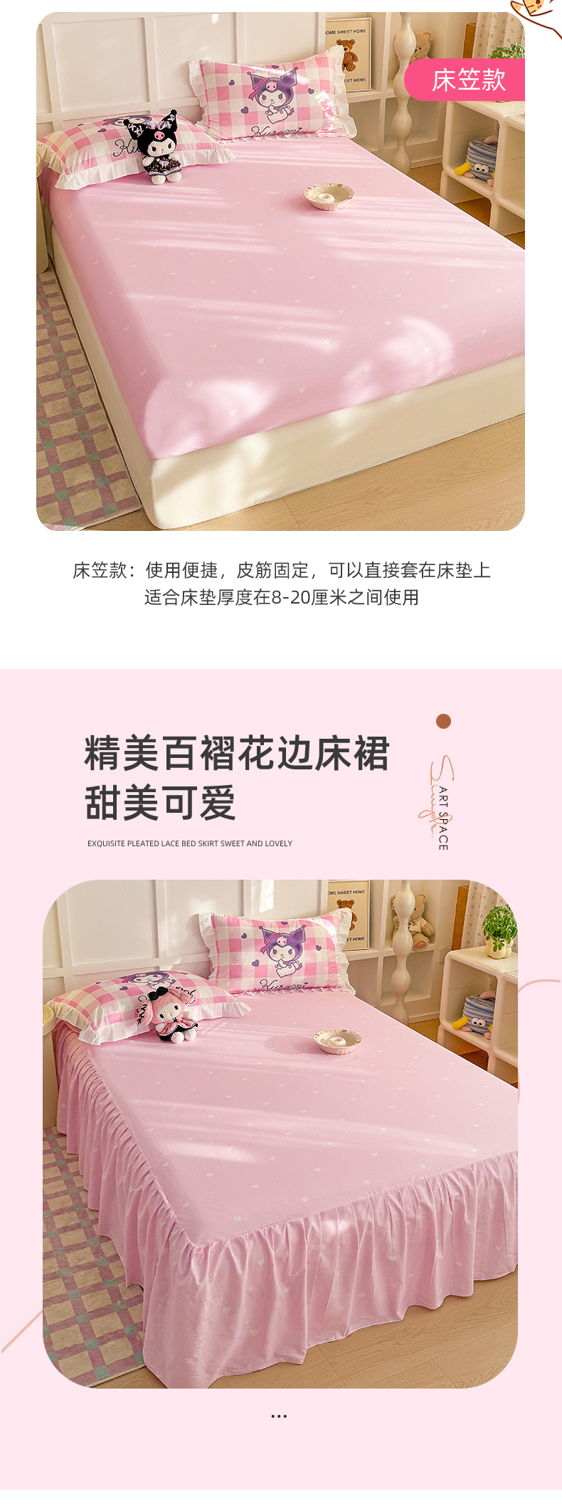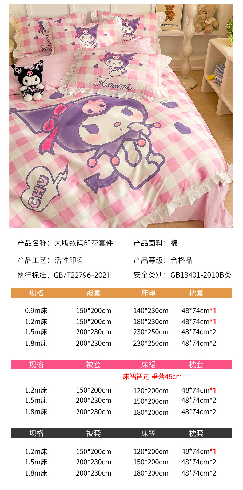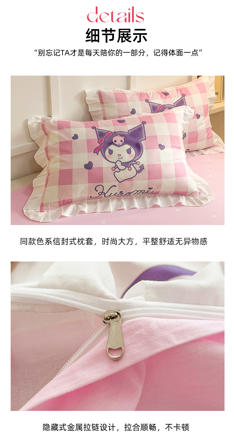 当前位置: 91家纺网 > 商品网购 > 床品套件 > 四件套 > 全棉普通四件套 > 玉元坊 2025年新款三丽鸥系列数码印花纯棉全棉床裙三件套四件套-花边款式 大版花边-格子库洛米