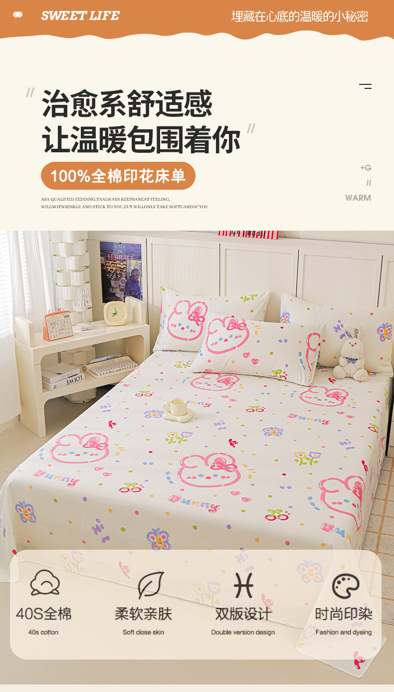 商品名称:金鑫汇家纺 2025新款超好卖全棉单床单 奇趣小兔