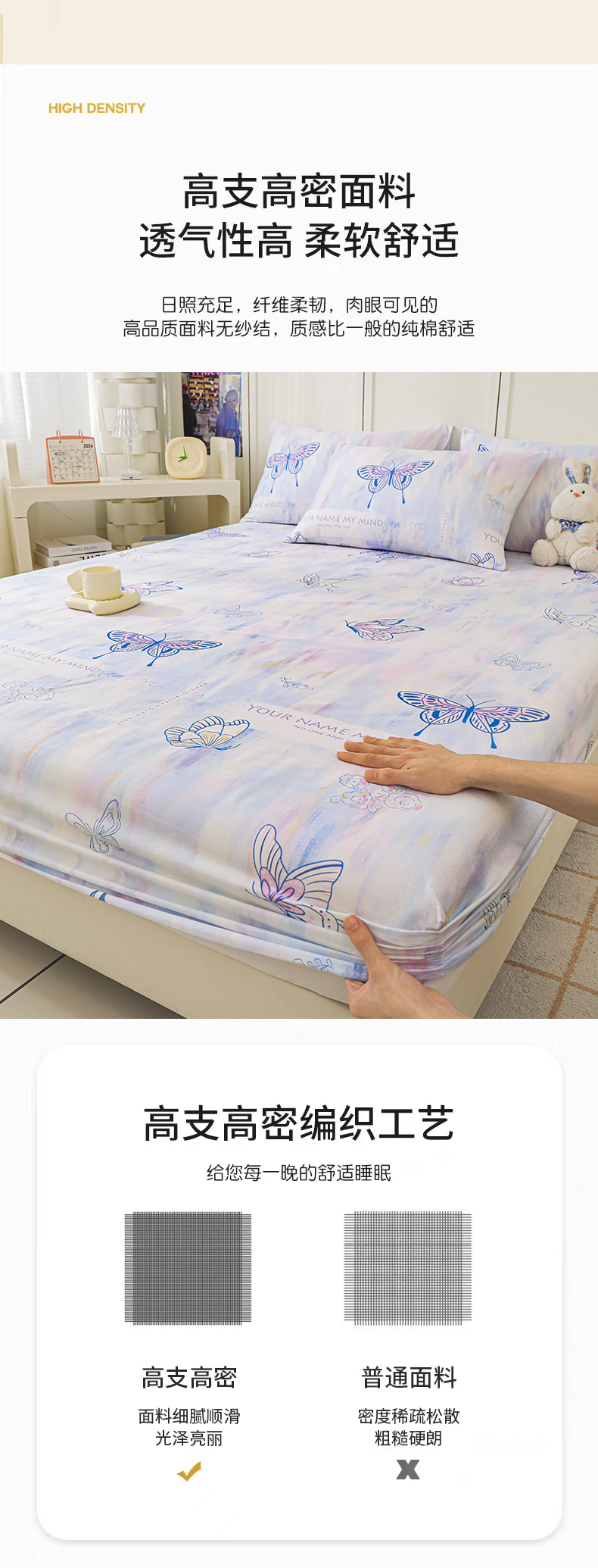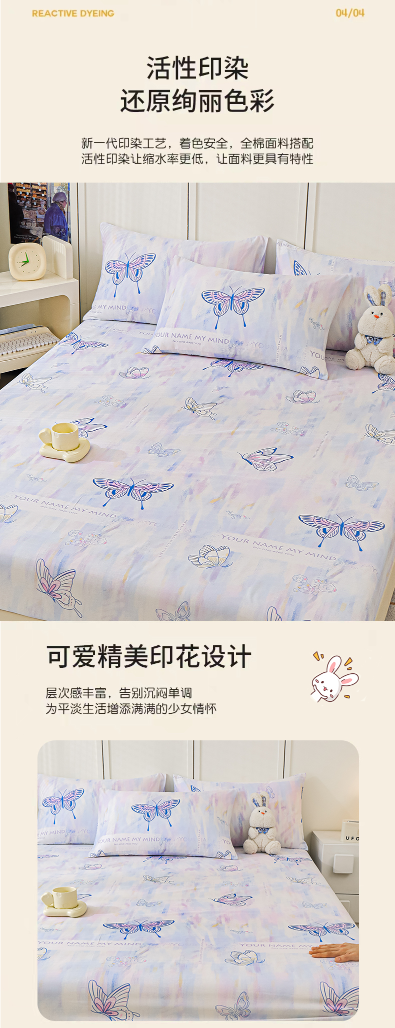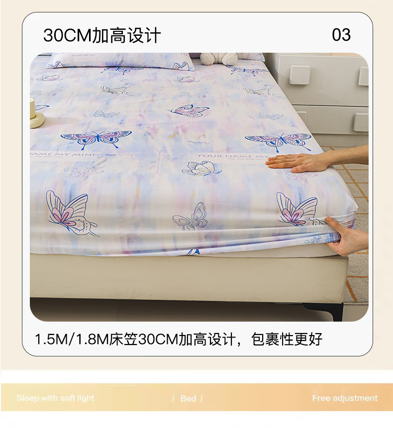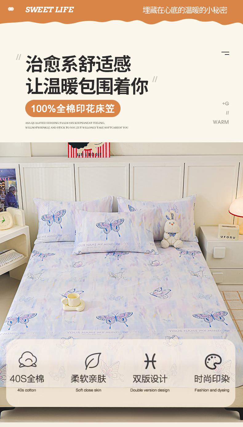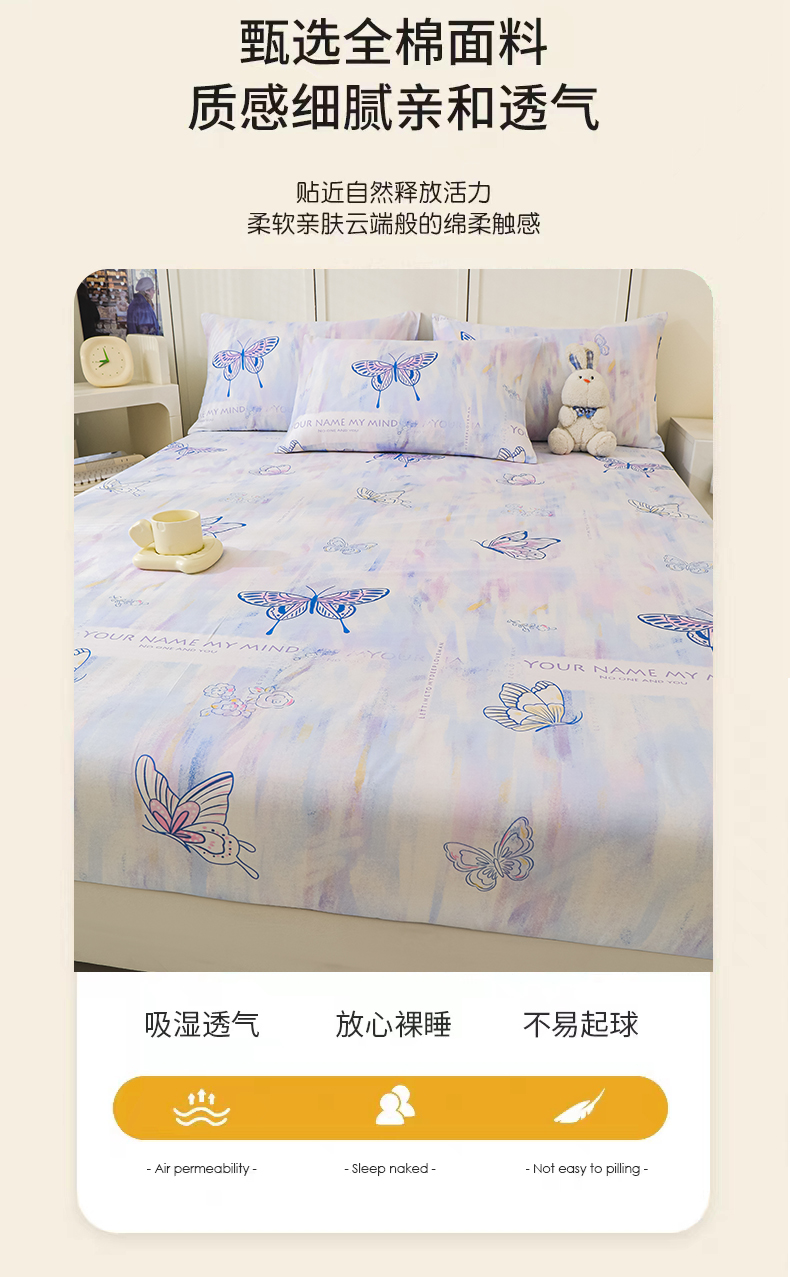 商品名称:金鑫汇家纺 2025新款超好卖全棉单床笠 梦蝶