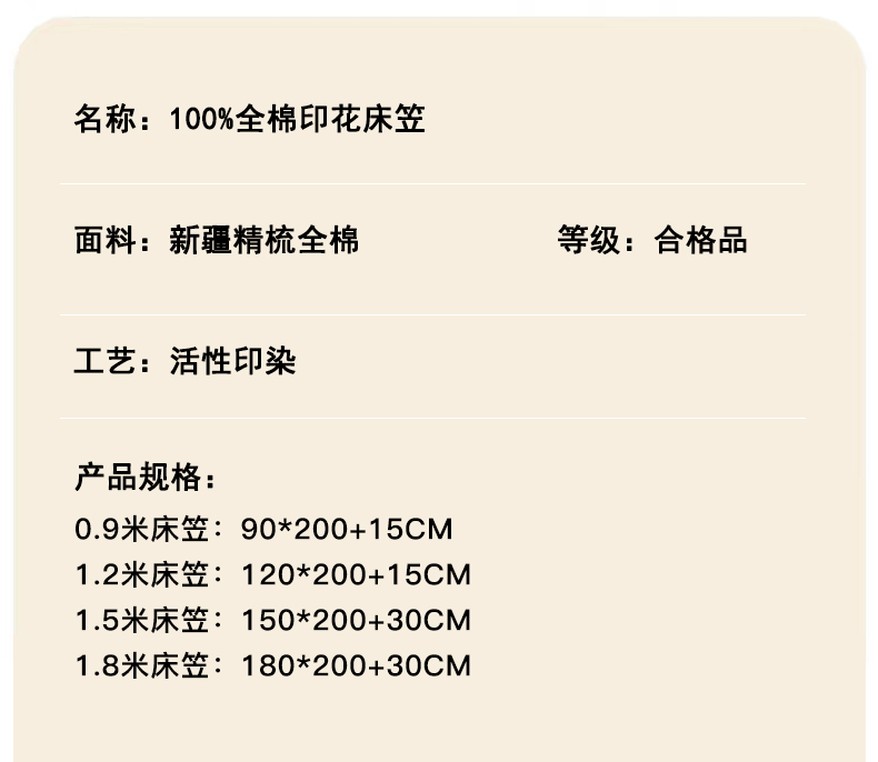 床单/床笠尺寸