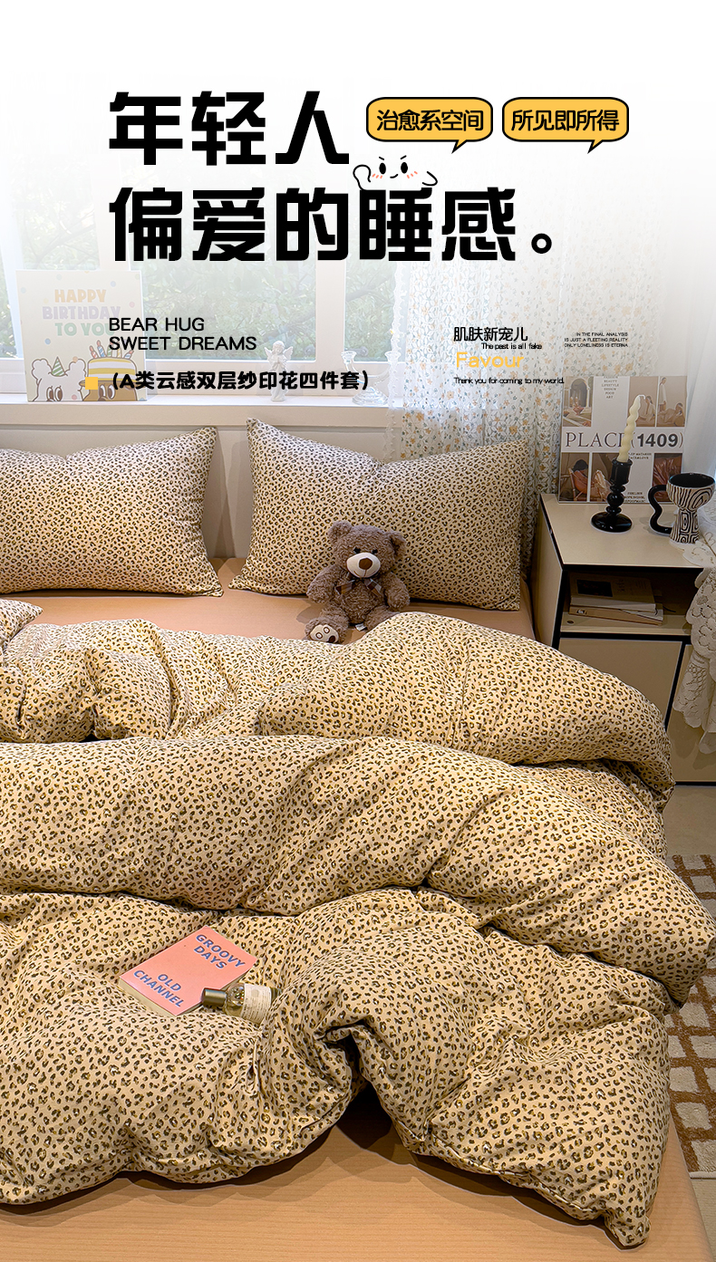 商品名称:(总)奈颜 2025新款爆款云感提花双层纱裸睡四件套-叠拍图