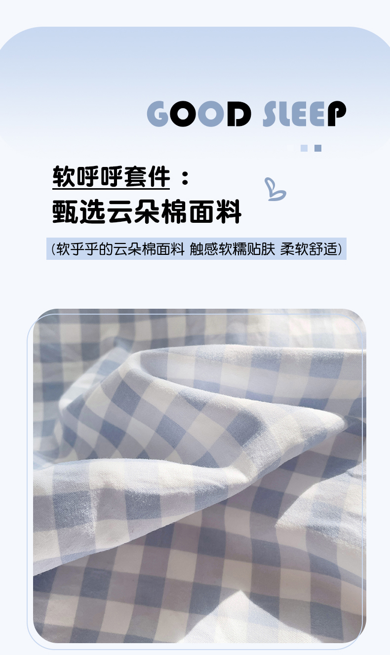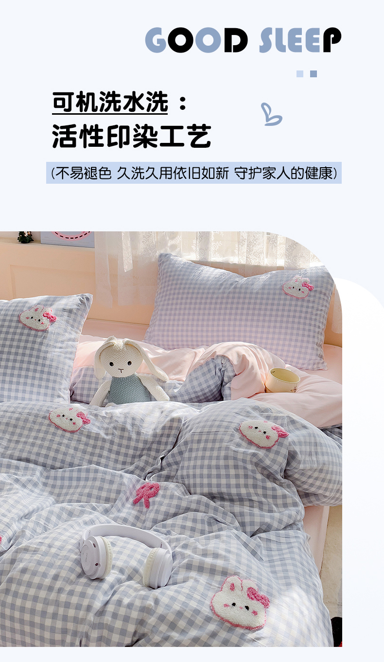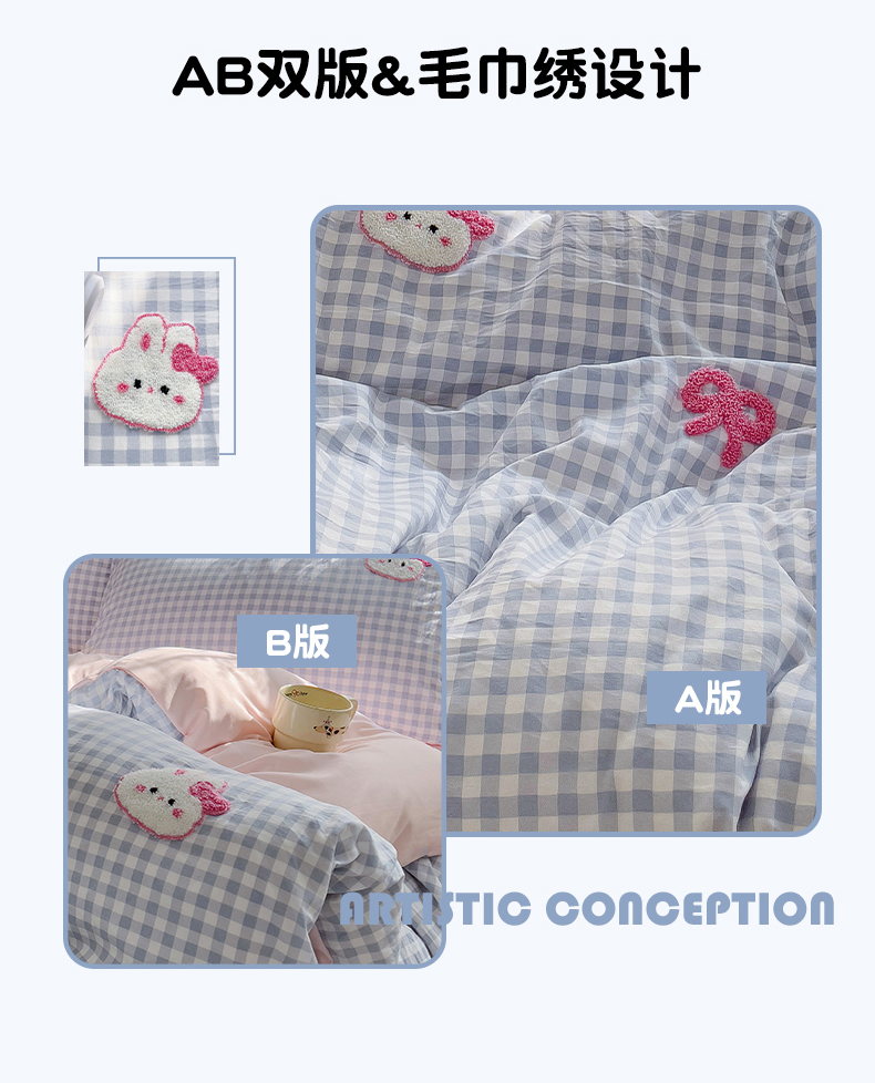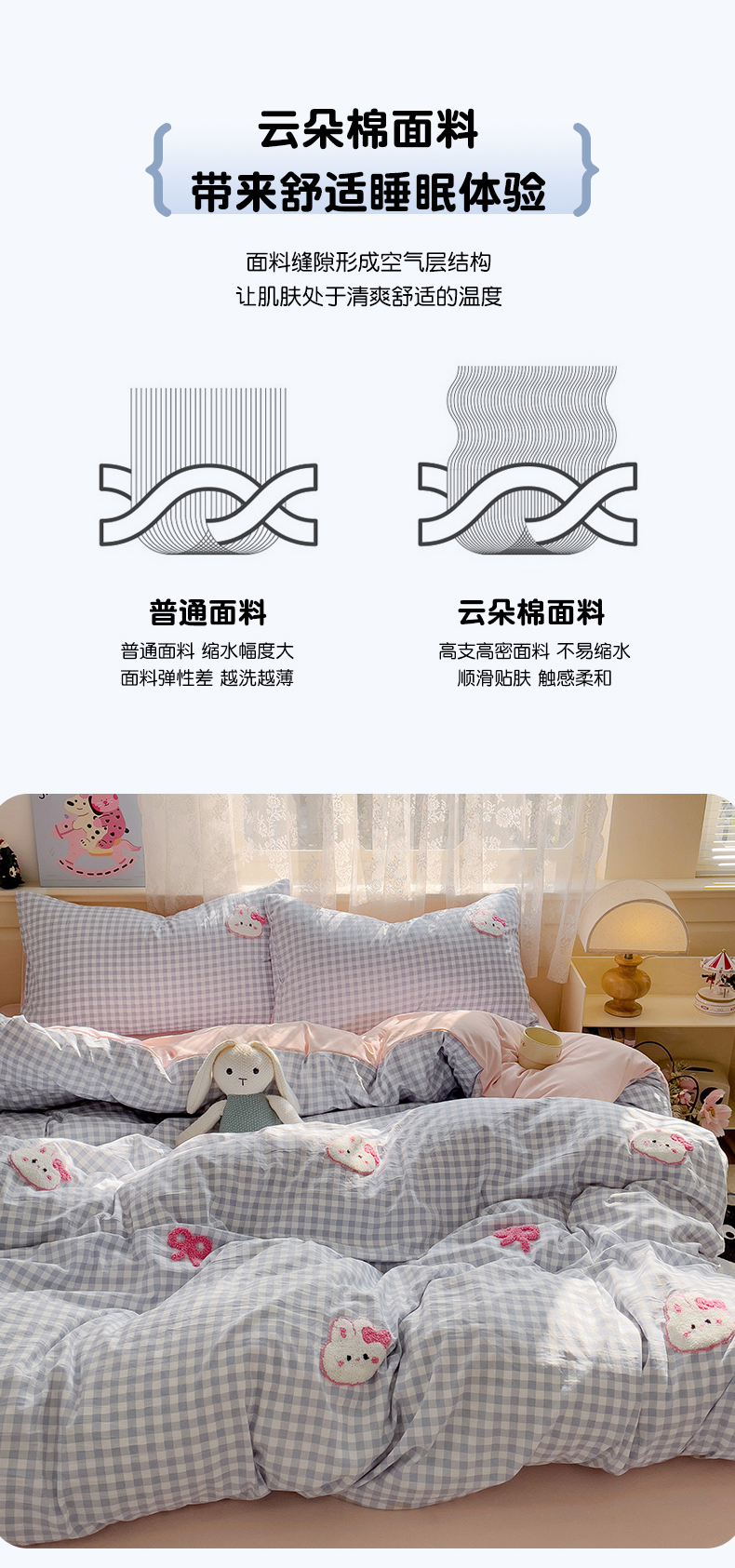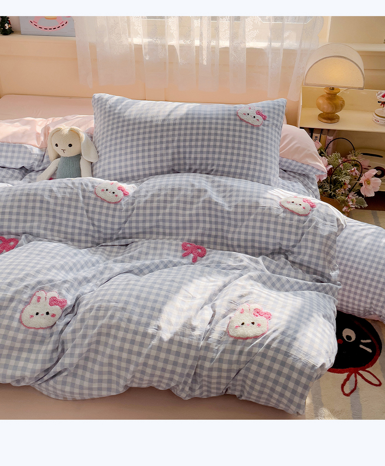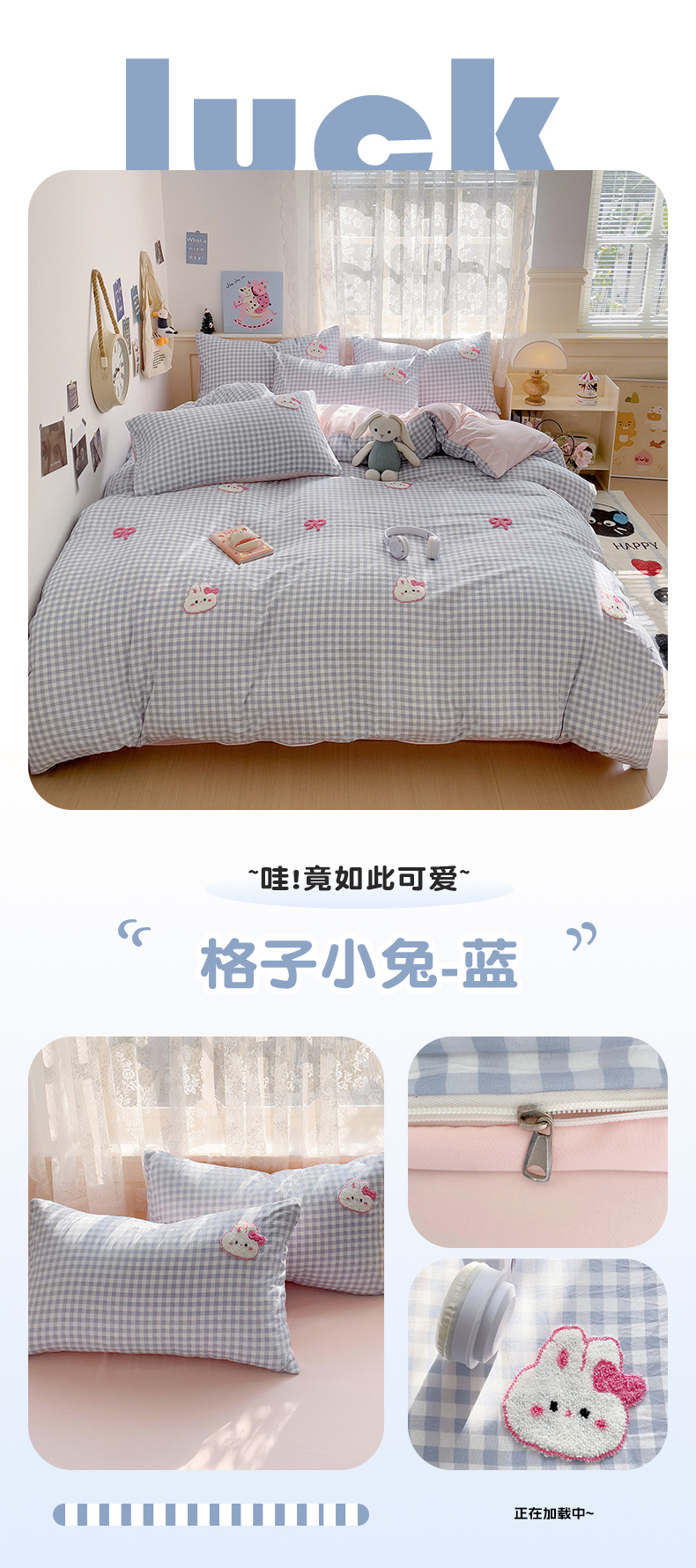 当前位置: 91家纺网 > 商品网购 > 床品套件 > 四件套 > 其它四件套 > 梦之岛 2025云朵棉ins格子小兔可爱毛巾绣四件套 格子小兔-蓝