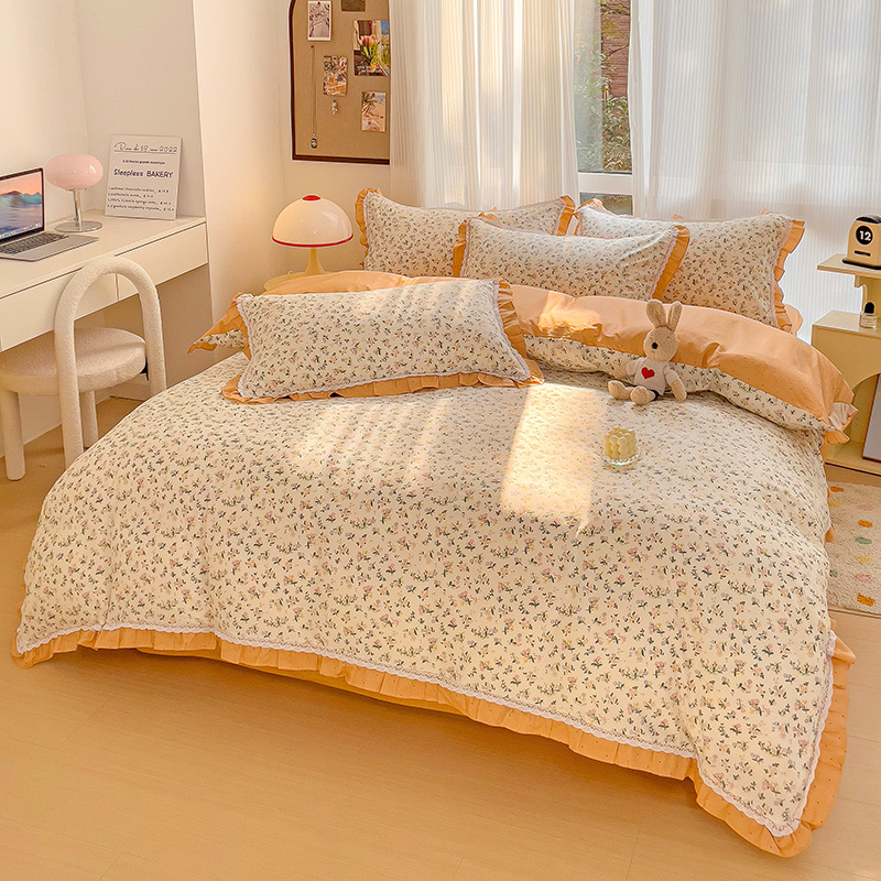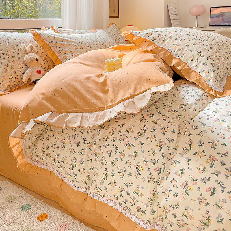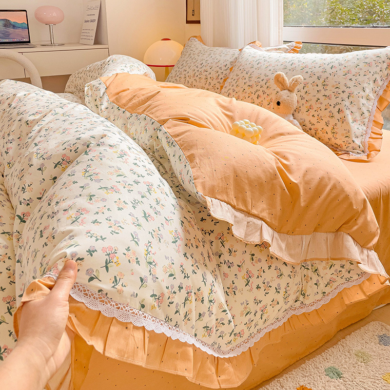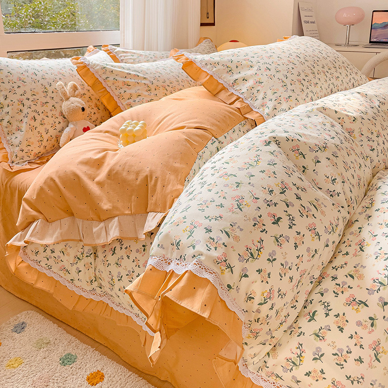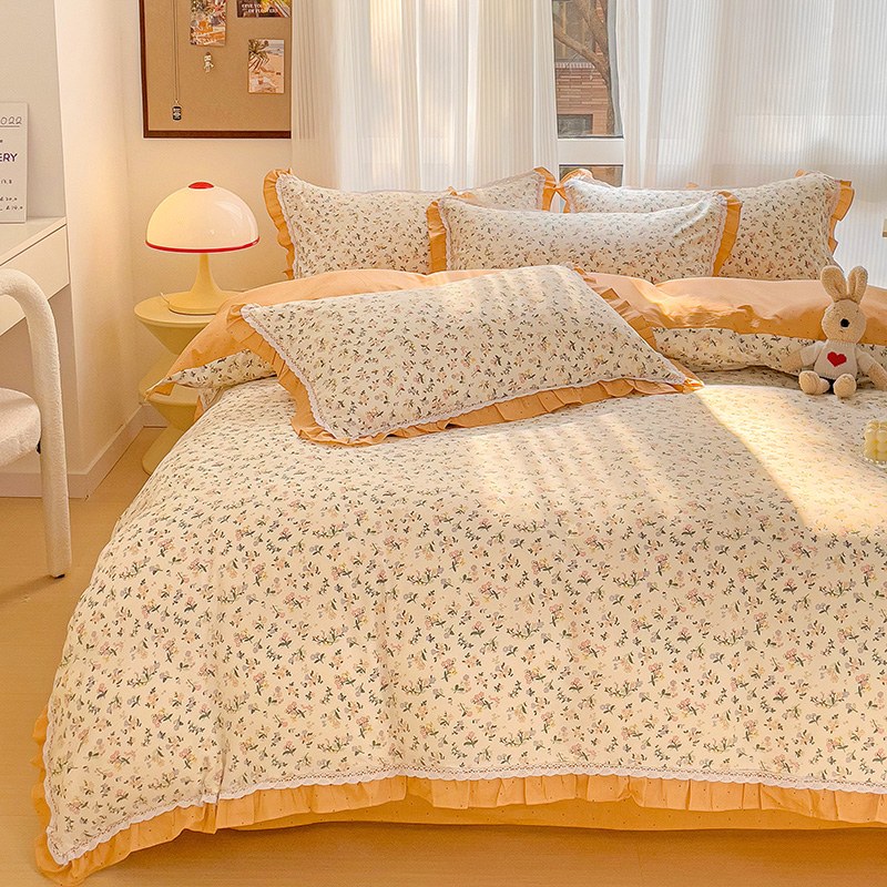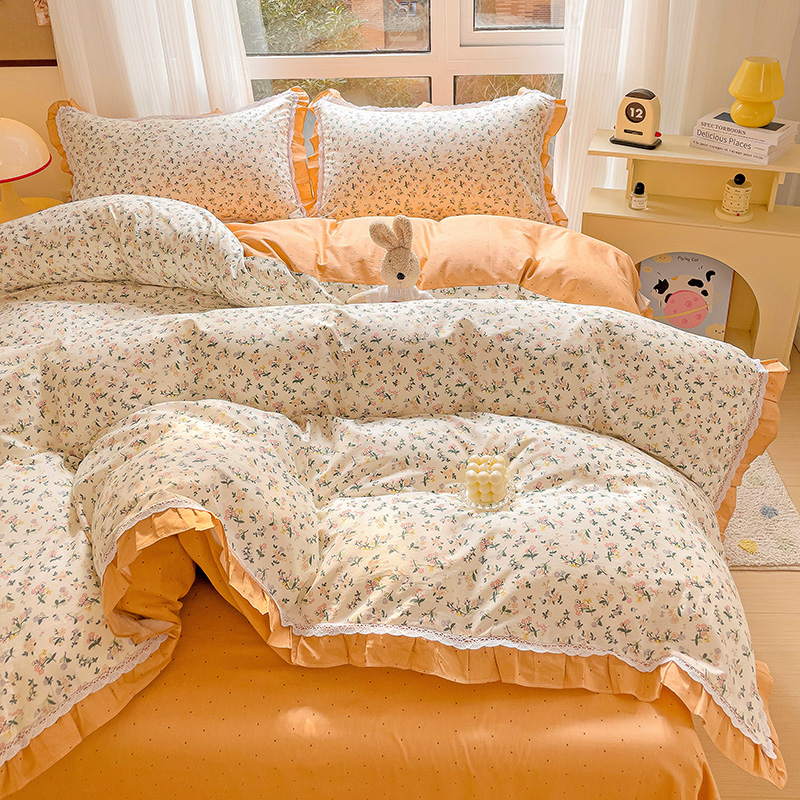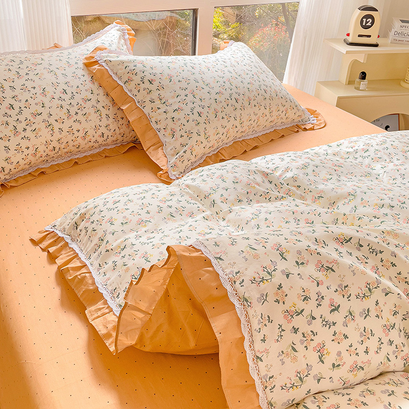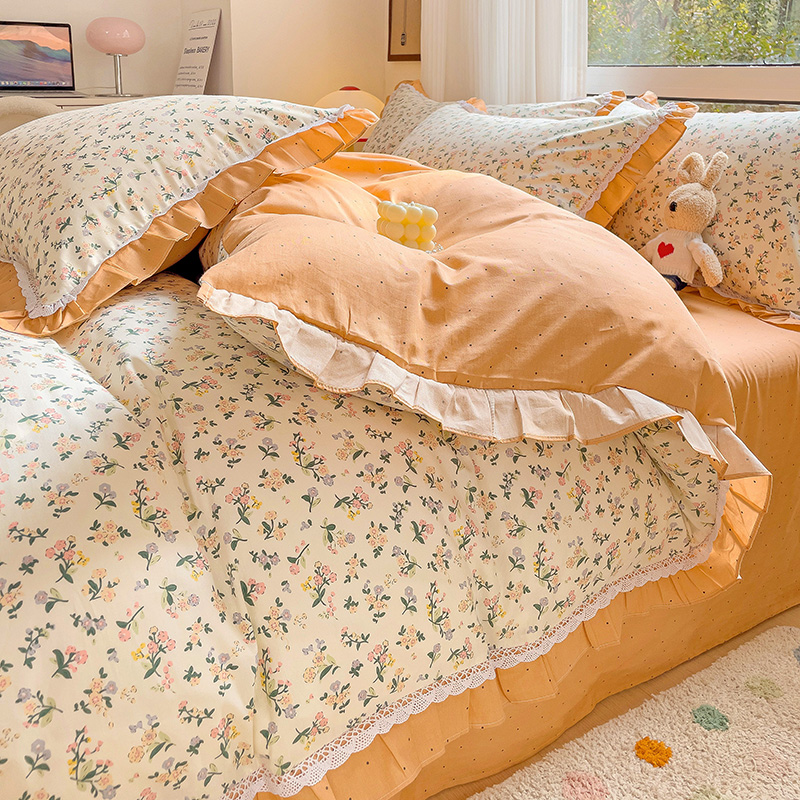 棉生活家纺 2025新款全棉小清新花边款蕾丝四件套 田园生活