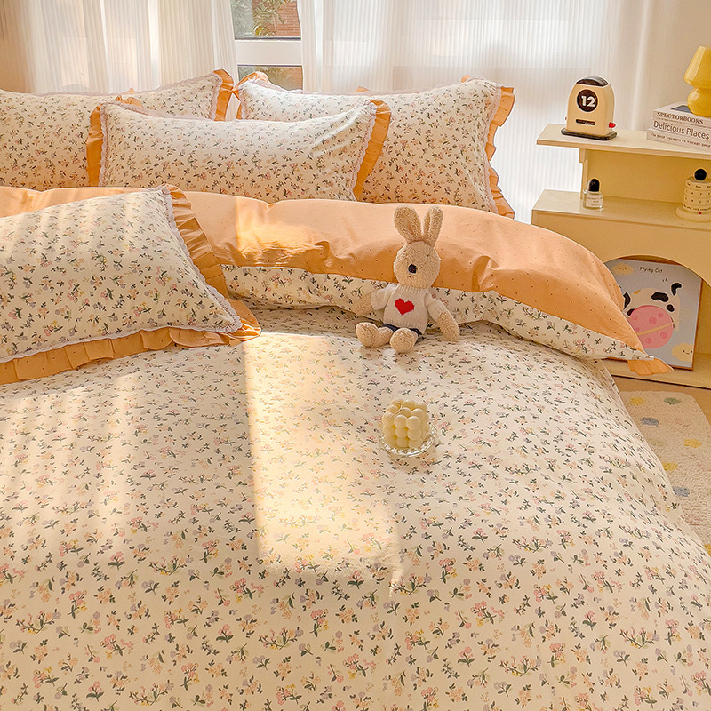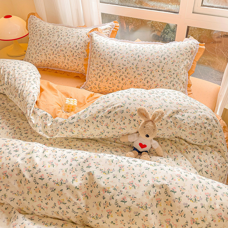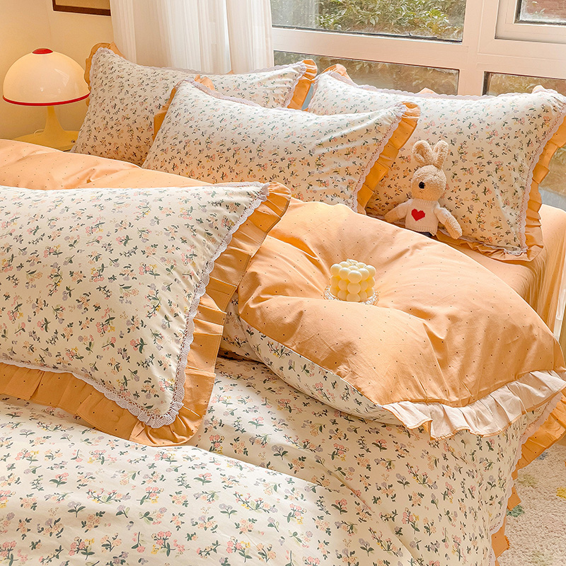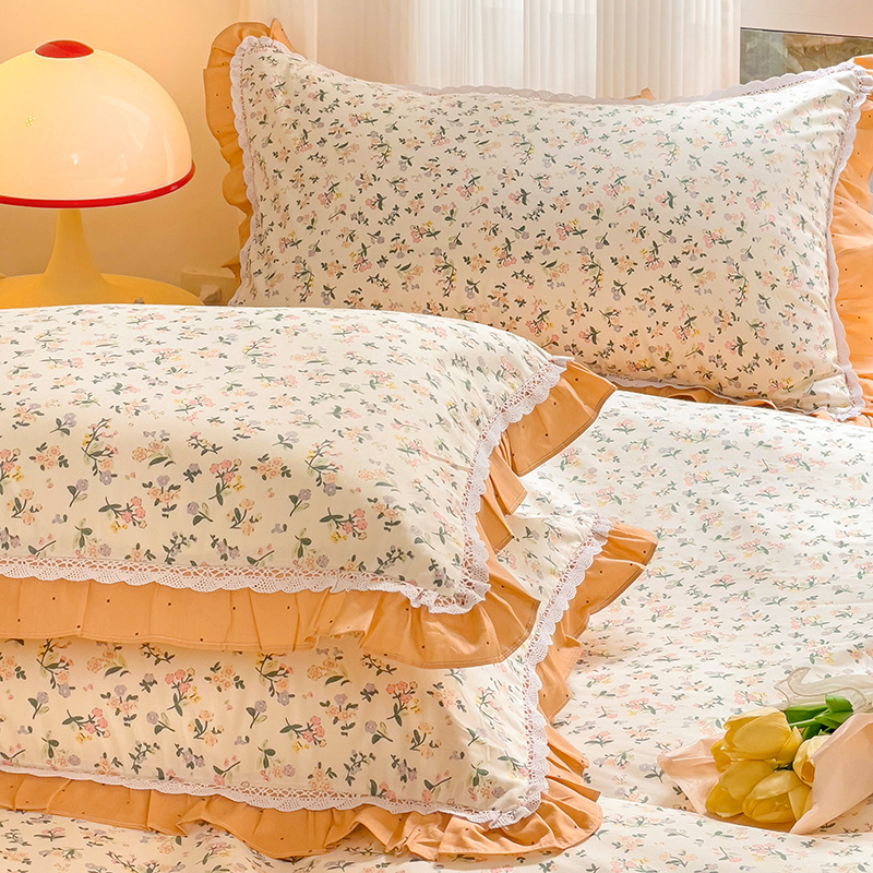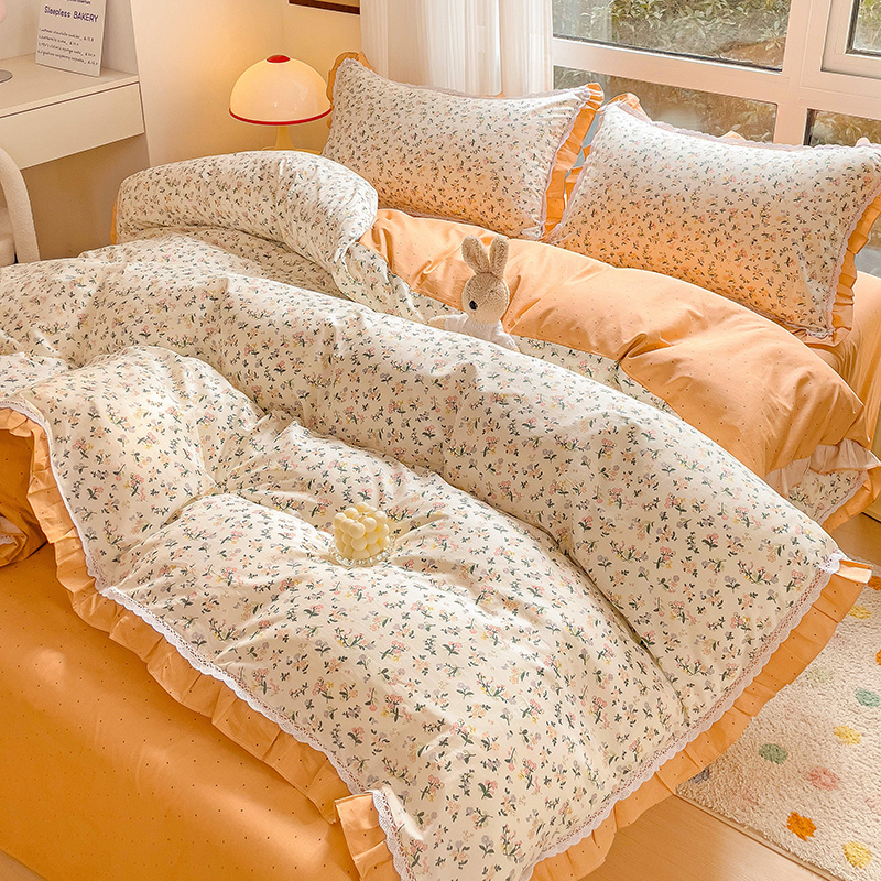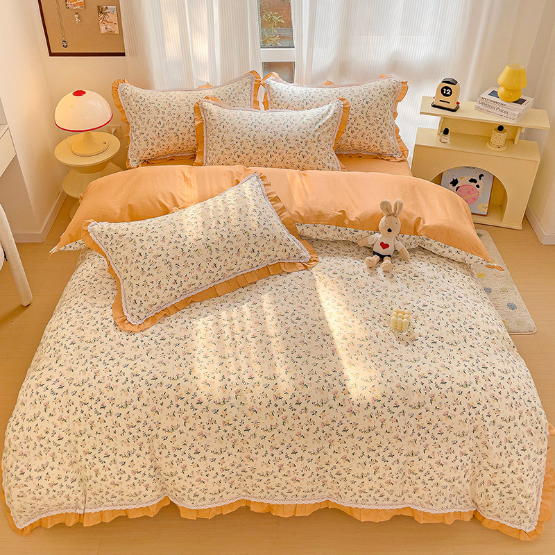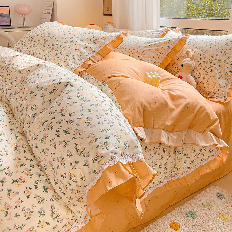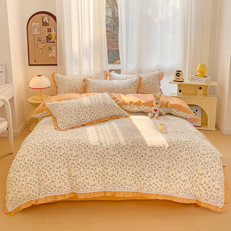 棉生活家纺 2025新款全棉小清新花边款蕾丝四件套 田园生活