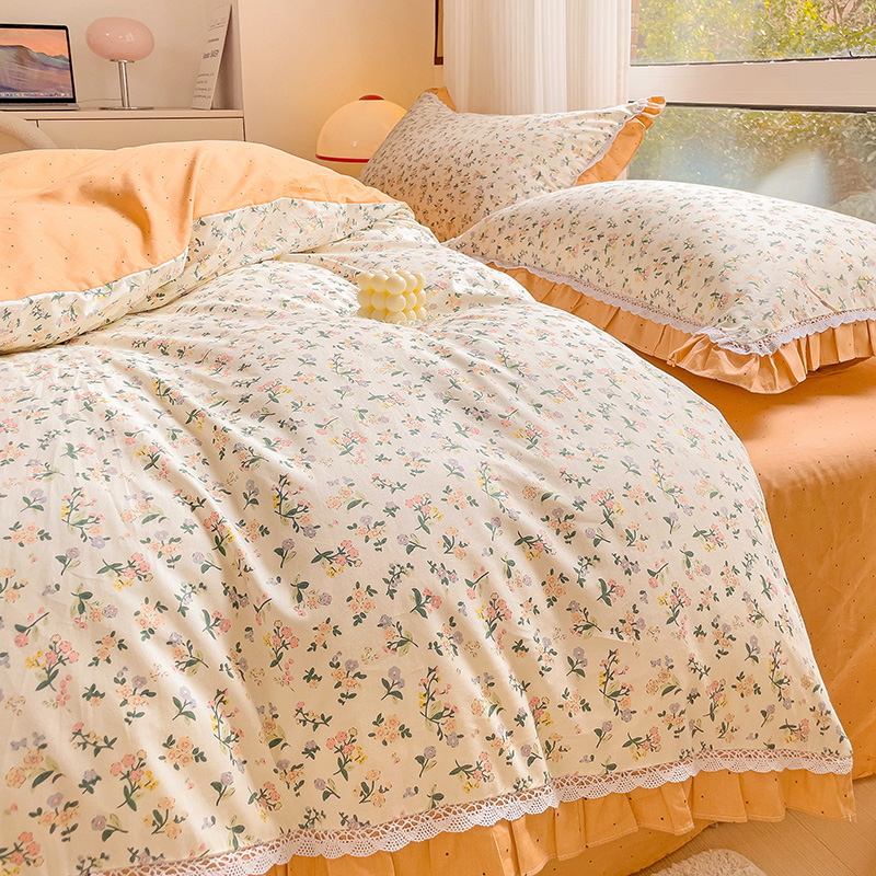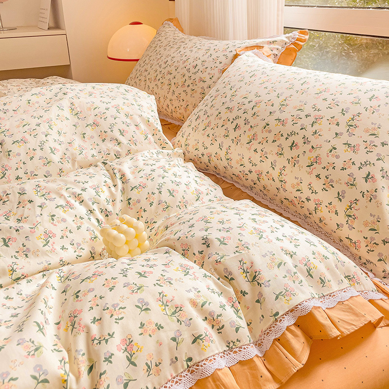 商品名称:棉生活家纺 2025新款全棉小清新花边款蕾丝四件套 田园生活