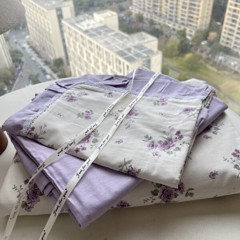 棉生活家纺 2025新款全棉小清新花边款蕾丝四件套 洛潇