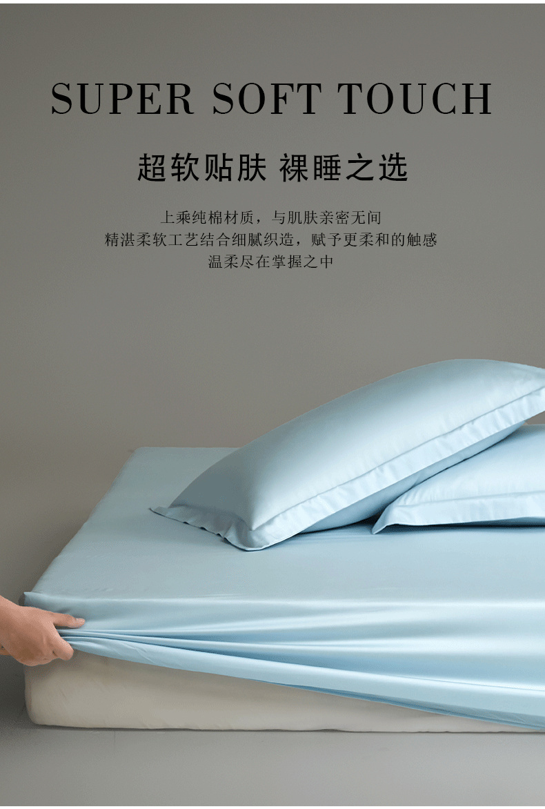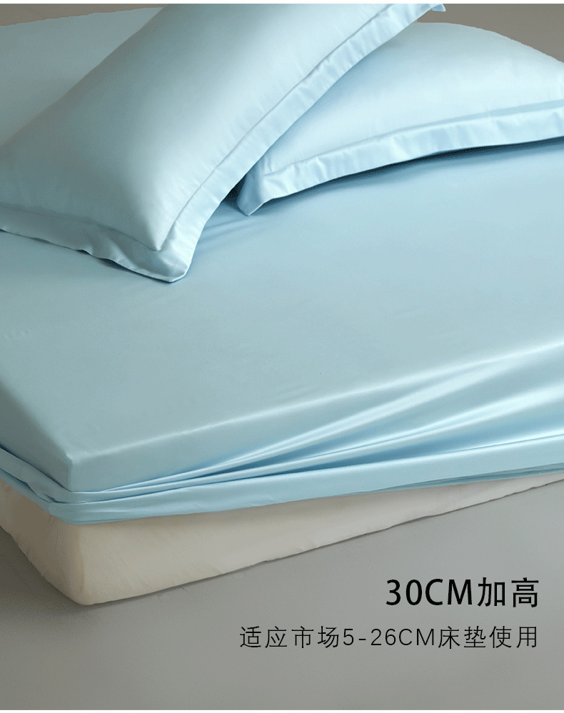 商品名称:618家纺 2025新款50S100支全棉单品系列-单床笠 冰蓝