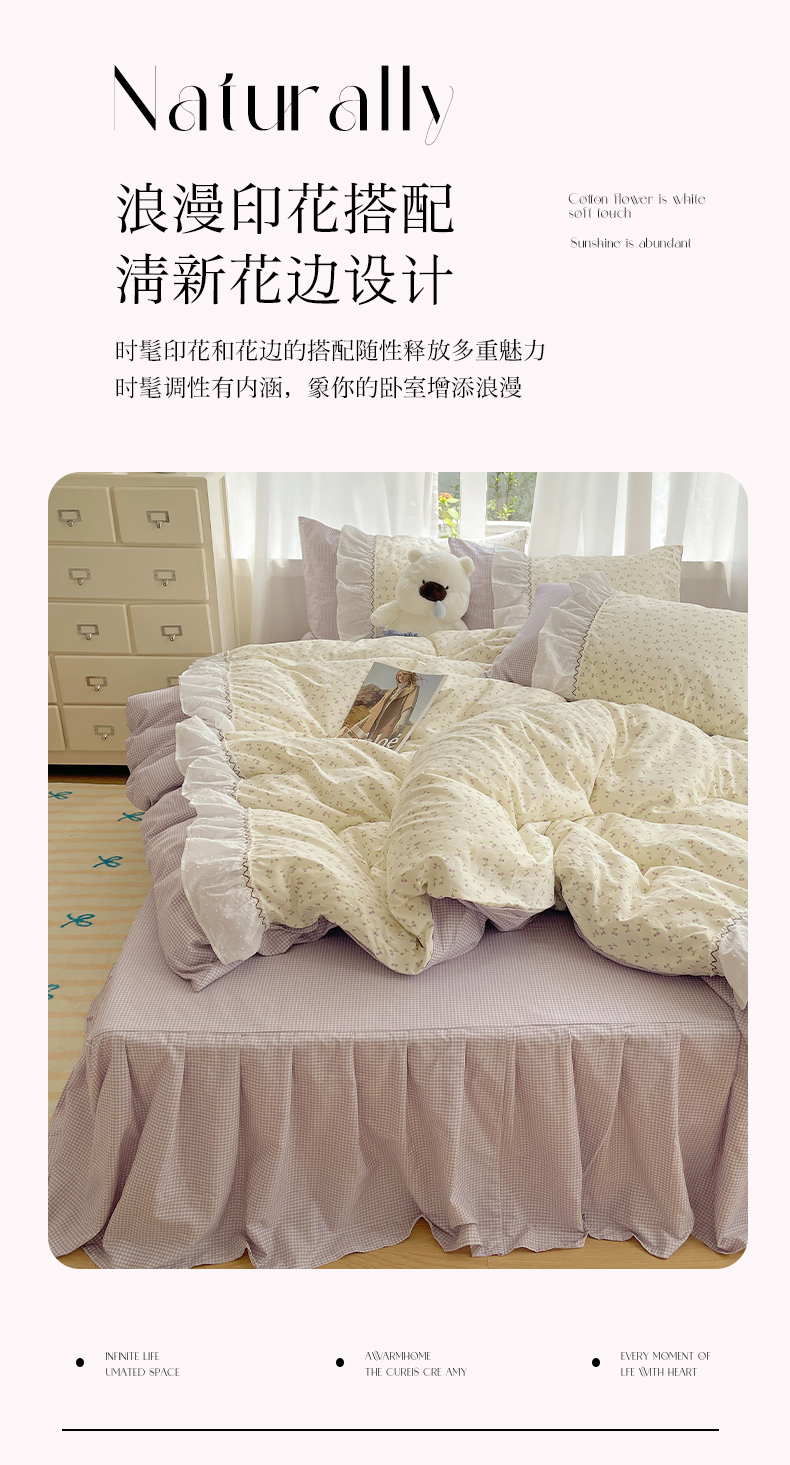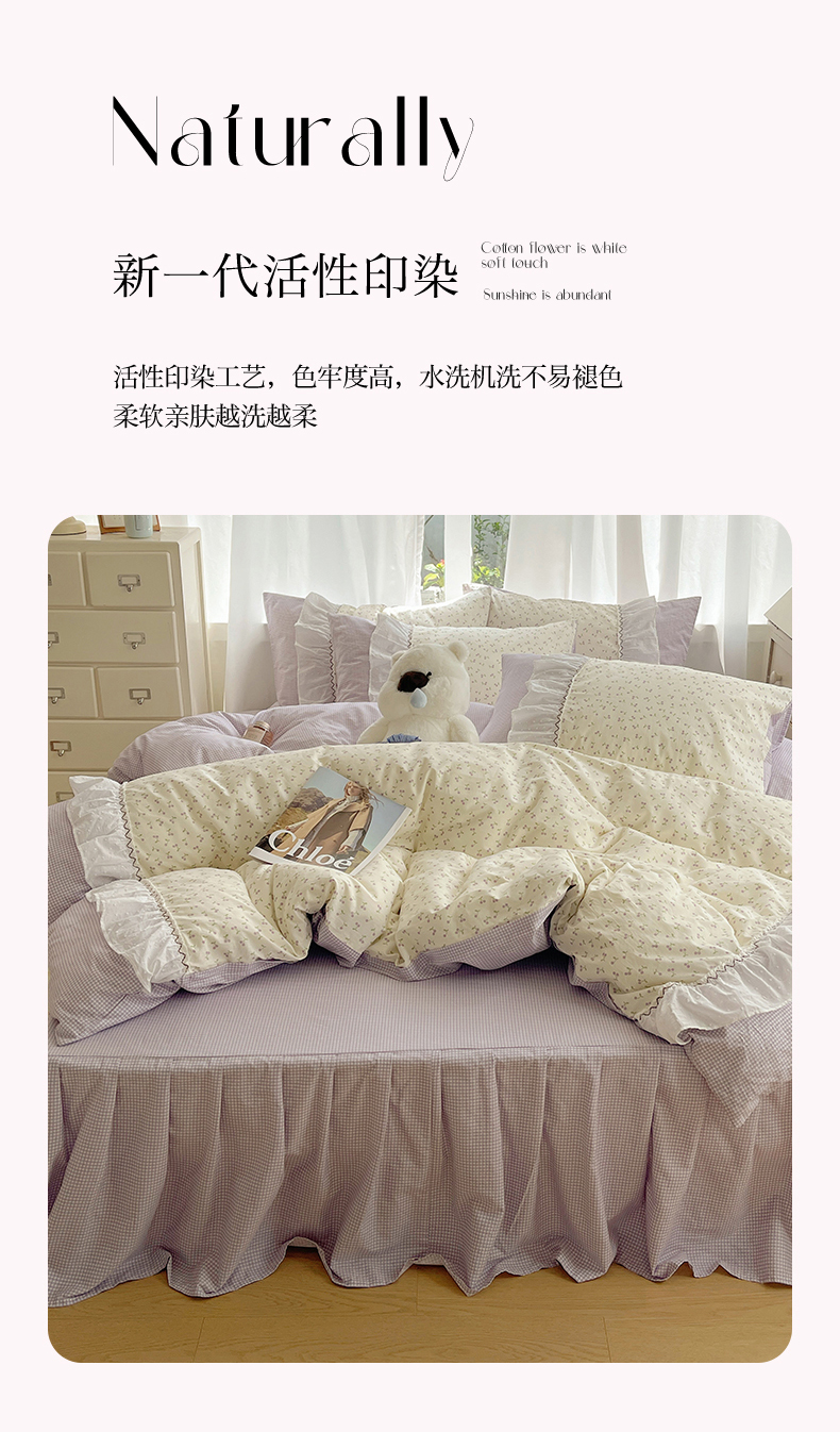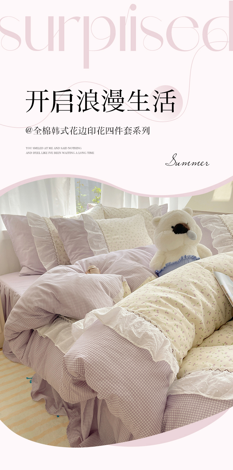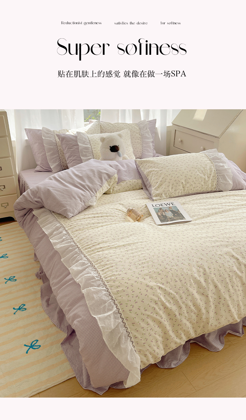 (总)瑞莱 2025全新纯棉清新小碎花四件套,蓝香清韵,那些花儿,紫樱桃