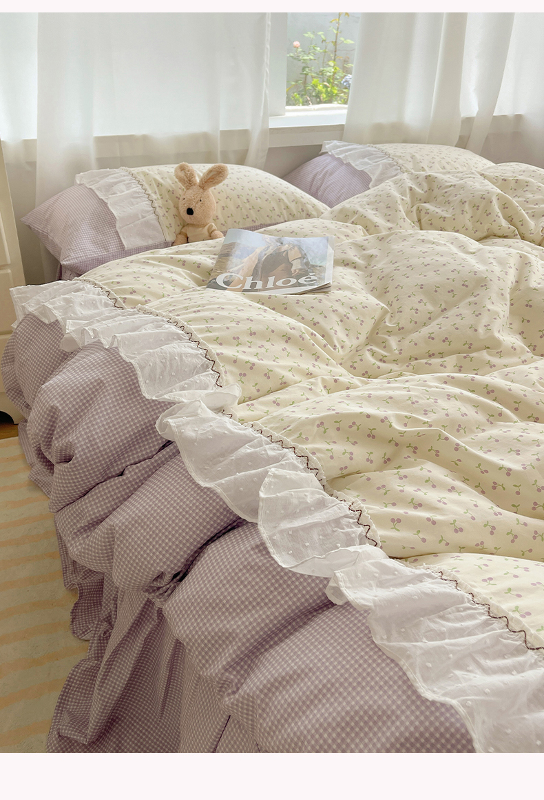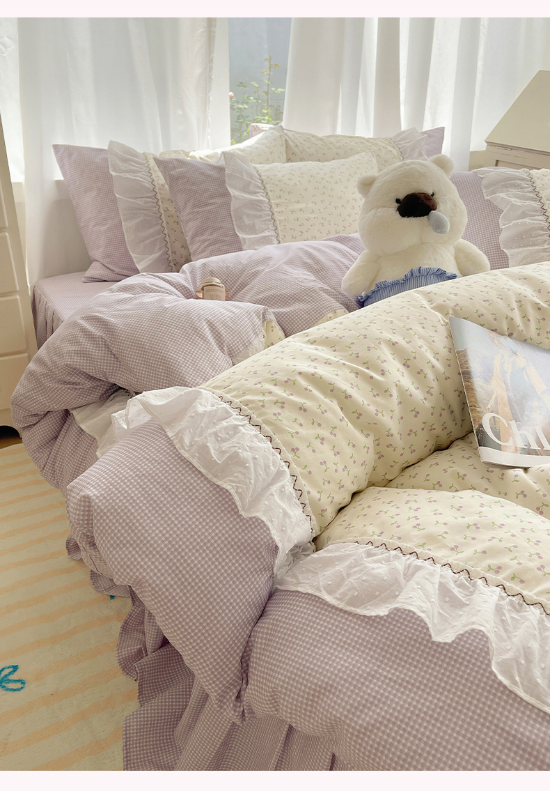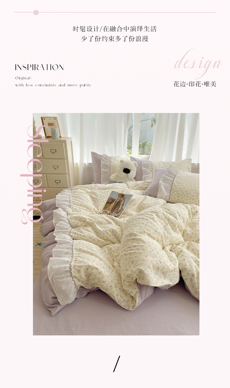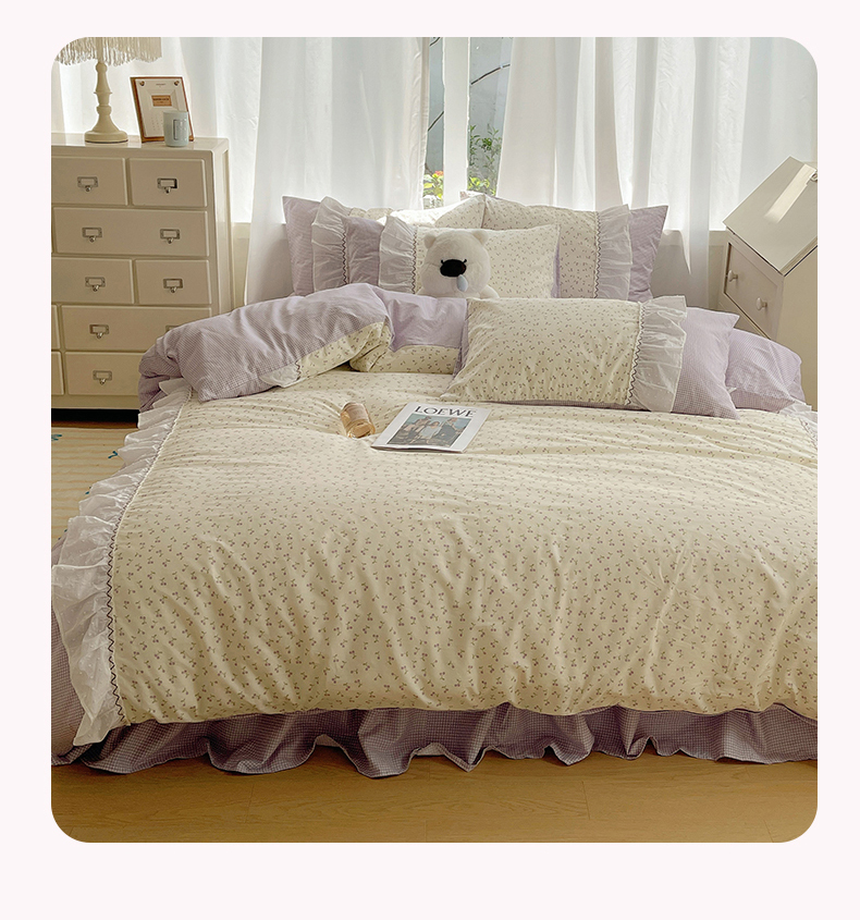 (总)瑞莱 2025全新纯棉清新小碎花四件套,蓝香清韵,那些花儿,紫樱桃