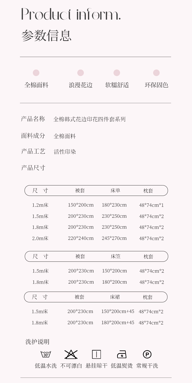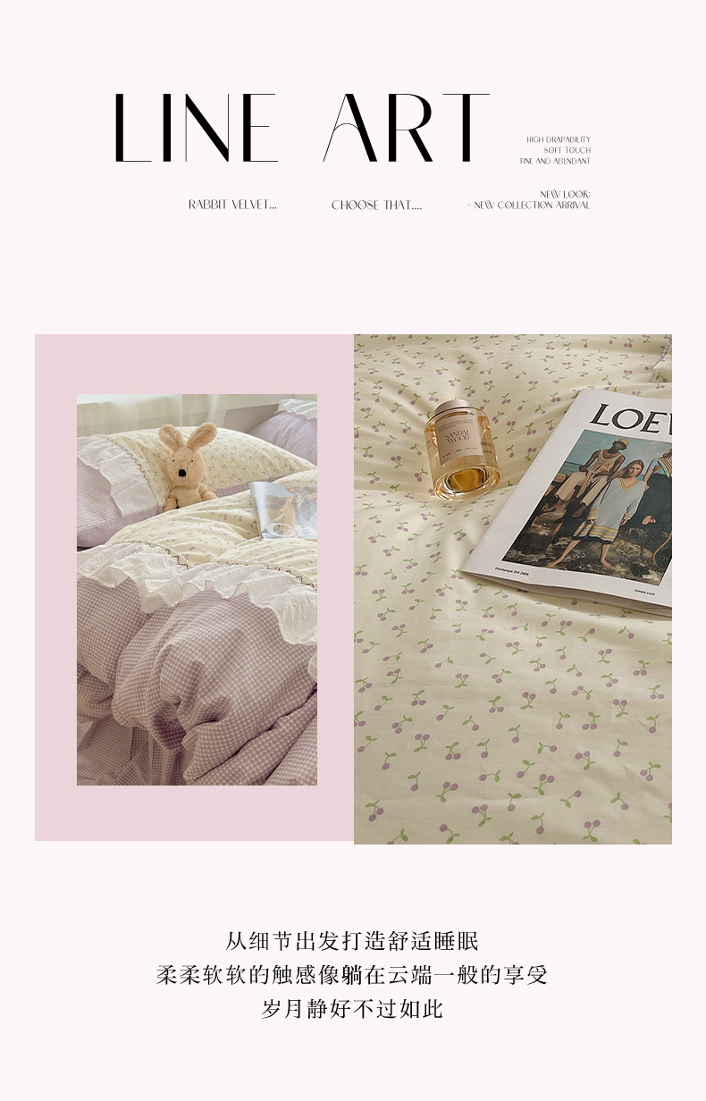 商品名称:瑞莱 2025冬季新款13372舞动花边全棉四件套系列 樱桃奶冻