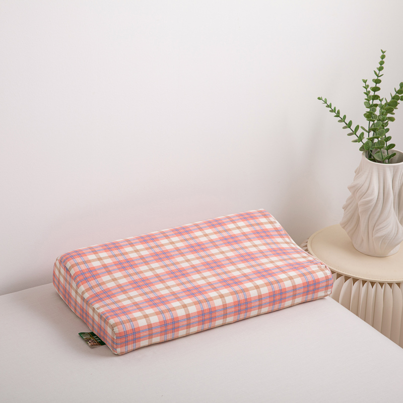 商品名称:2025新款全棉色织水洗零压记忆棉枕芯单人学生枕头 粉大格