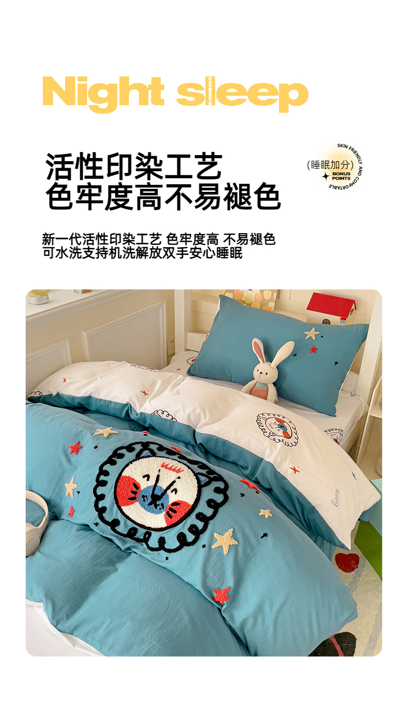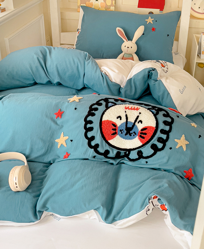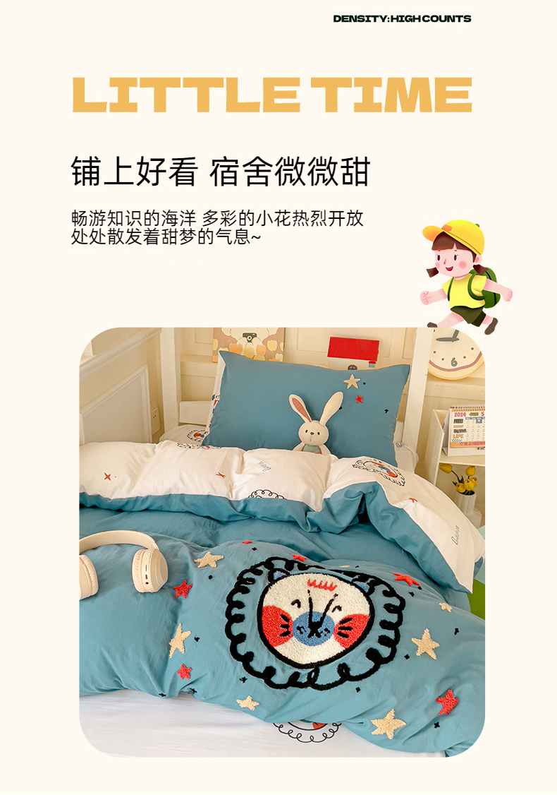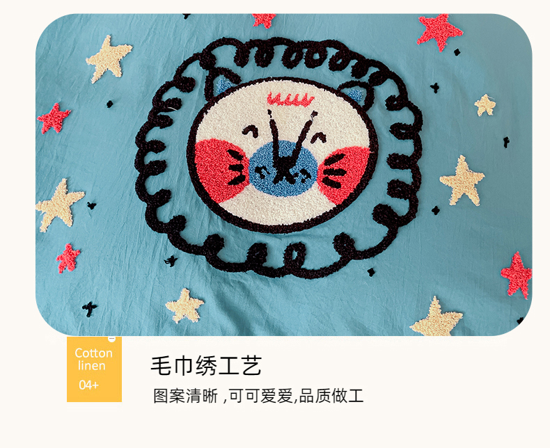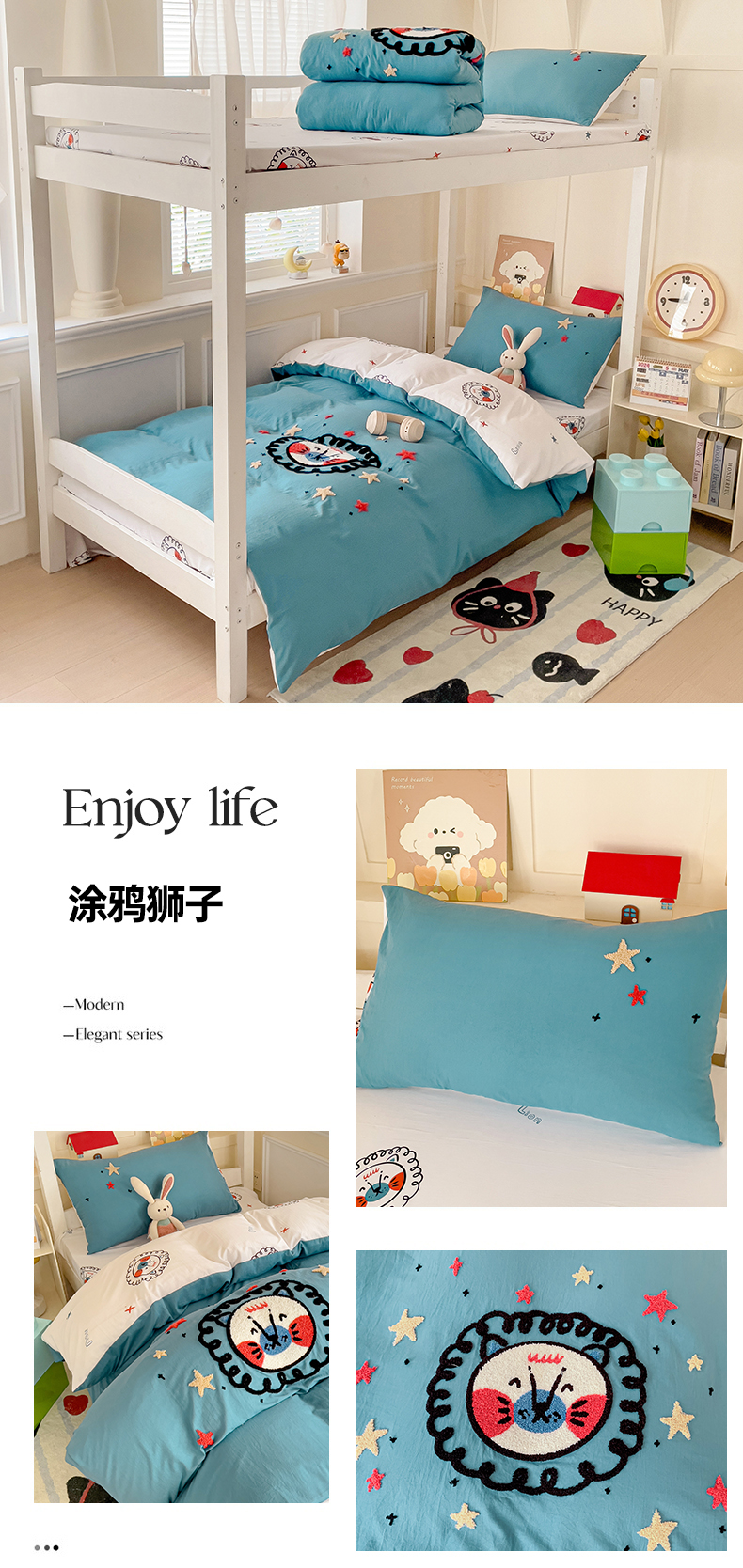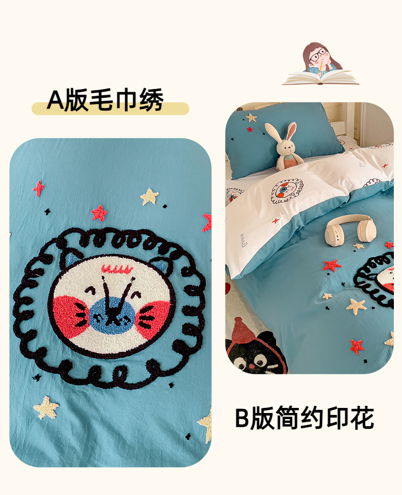 当前位置: 91家纺网 > 商品网购 > 床品套件 > 四件套 > 毛巾绣四件套 > 凯洛奇 2025新款1卡通水洗棉印+绣毛巾绣四件套(学生床)【提供买家秀】 涂鸦狮子
