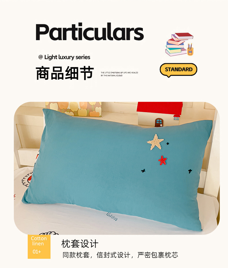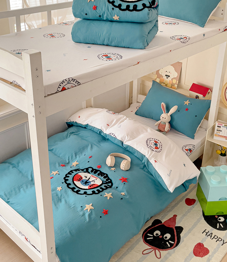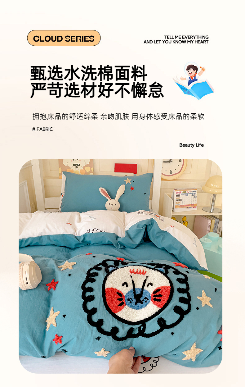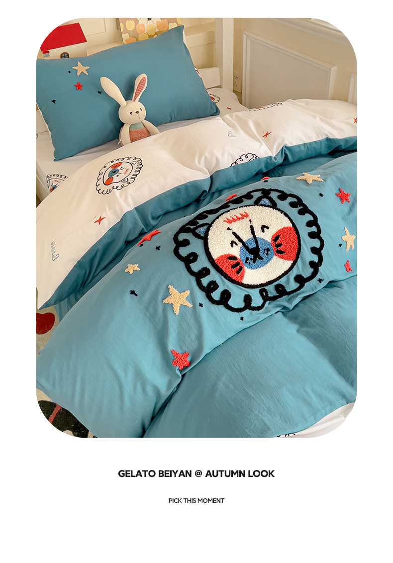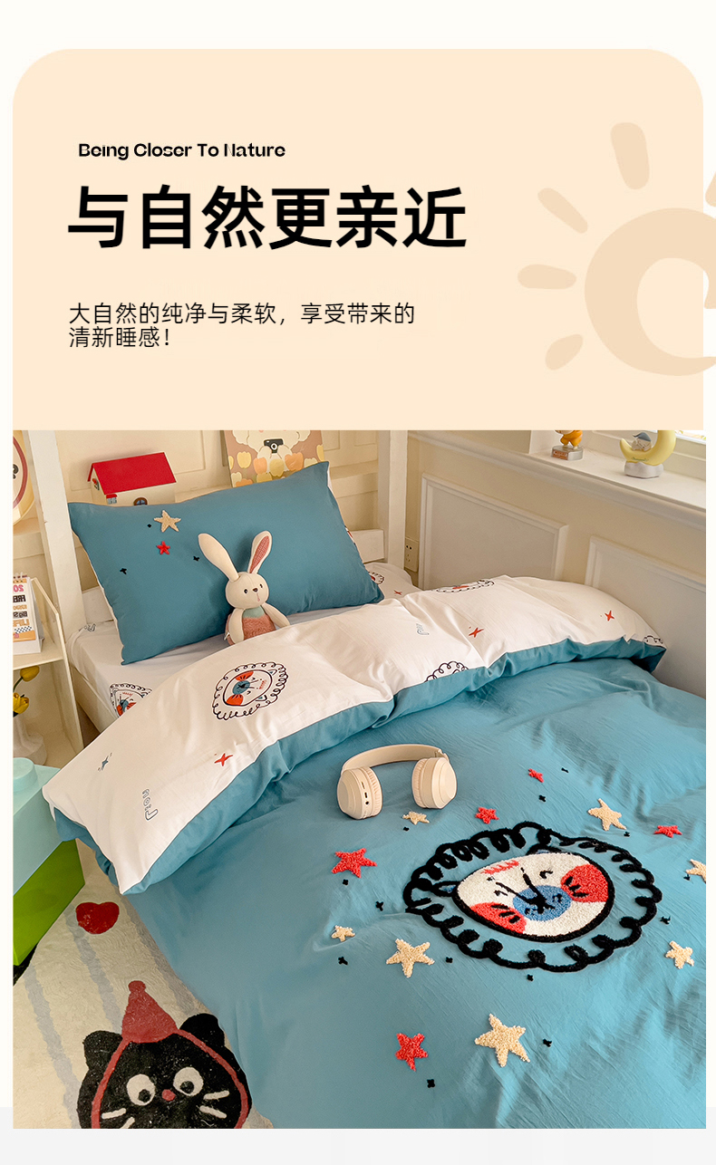 当前位置: 91家纺网 > 商品网购 > 床品套件 > 四件套 > 毛巾绣四件套 > 凯洛奇 2025新款1卡通水洗棉印+绣毛巾绣四件套(学生床)【提供买家秀】 涂鸦狮子