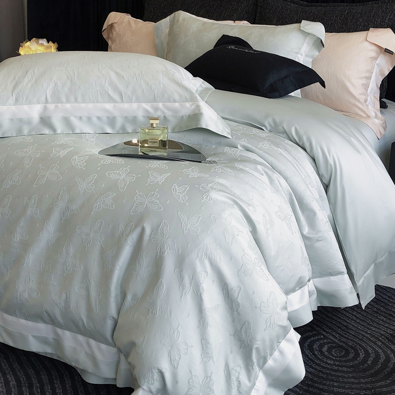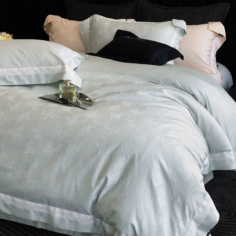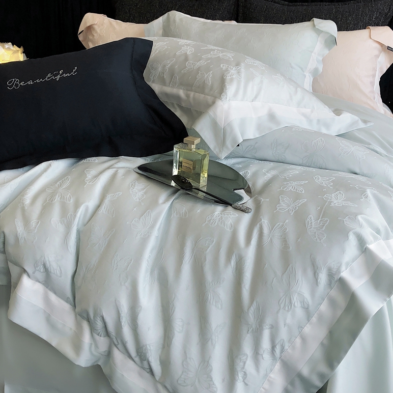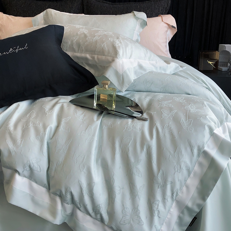 佳汐蓝家纺 2025新款天丝棉磨毛浮雕拼接四件套-蝶与梦 蝶与梦-绿色