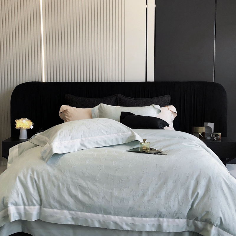 (总)佳汐蓝家纺 2025新款春夏新品TENCEL兰精天丝四件套绣花系列,墨菲花园·珍珠绿