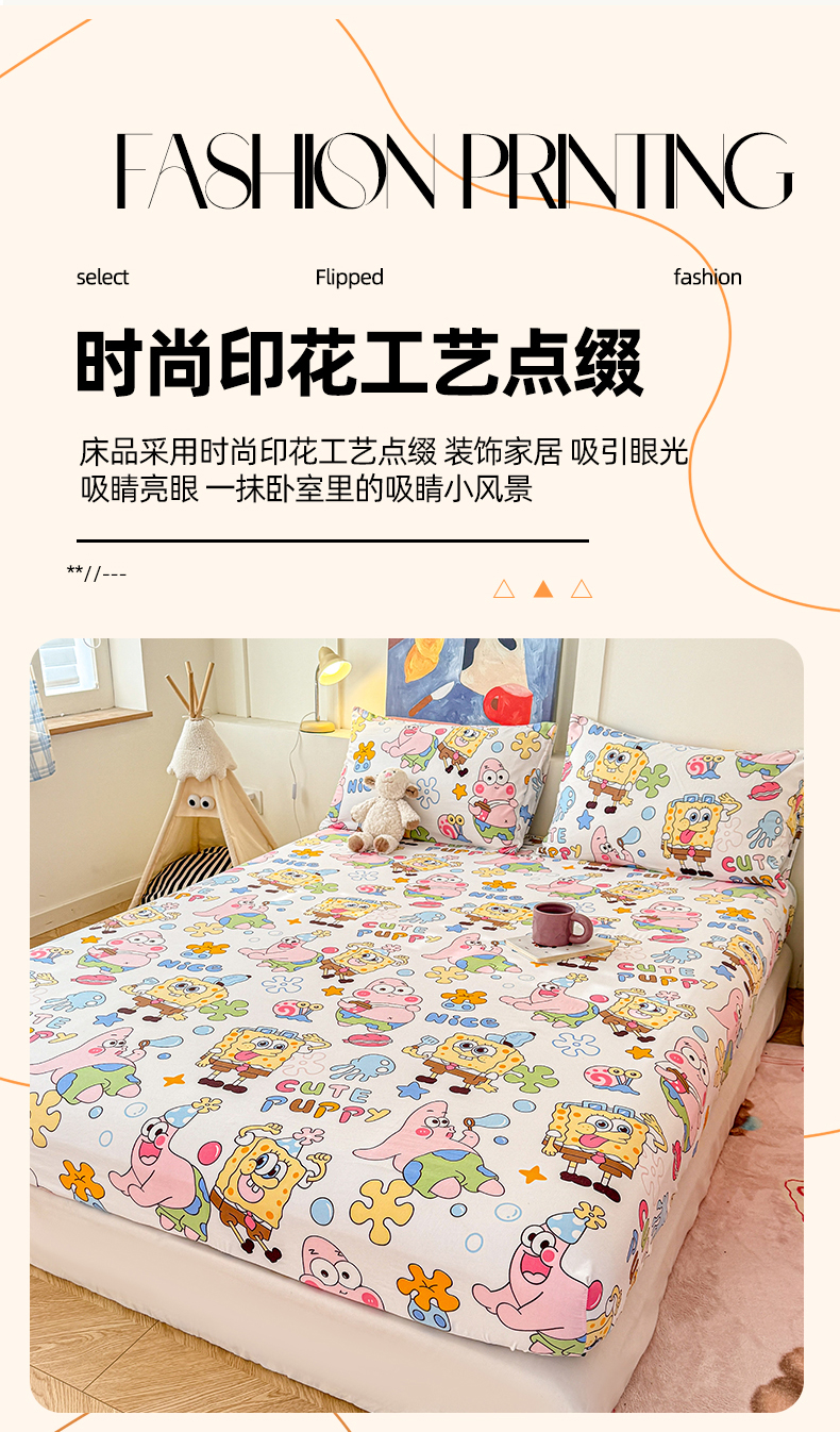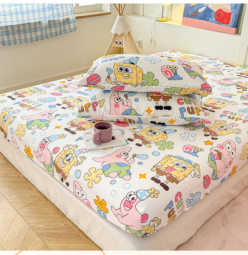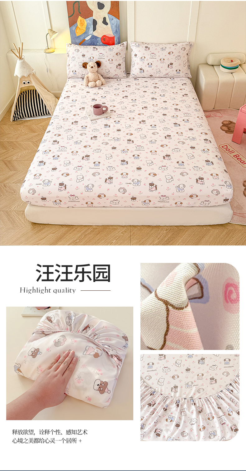 (总)温眠 2025新款A类亲肤水洗棉可爱卡通印花床笠