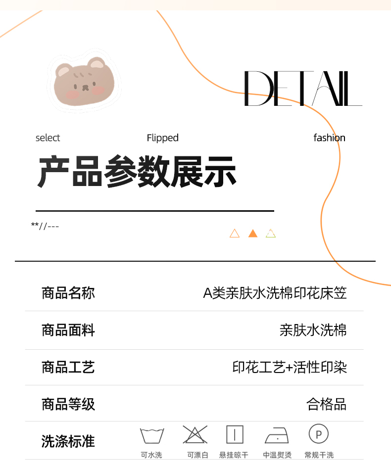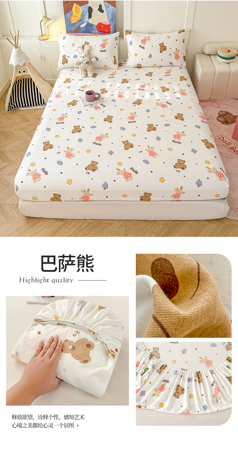 商品名称:(总)温眠 2025新款A类亲肤水洗棉可爱卡通印花床笠