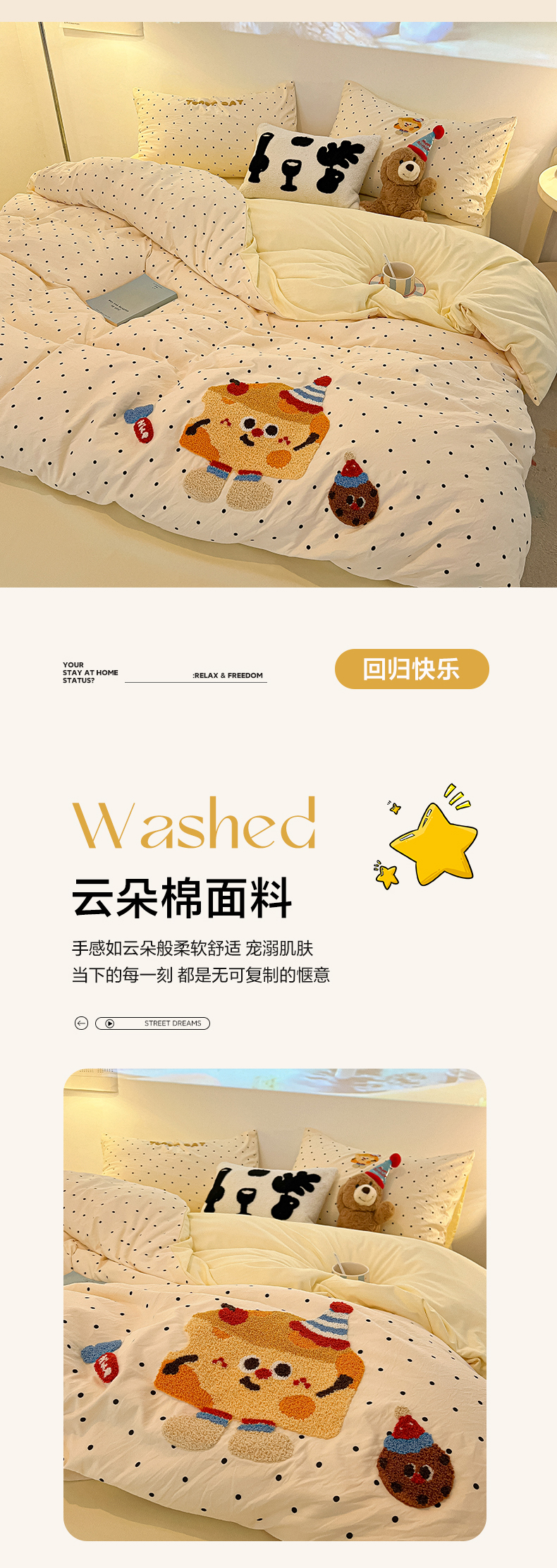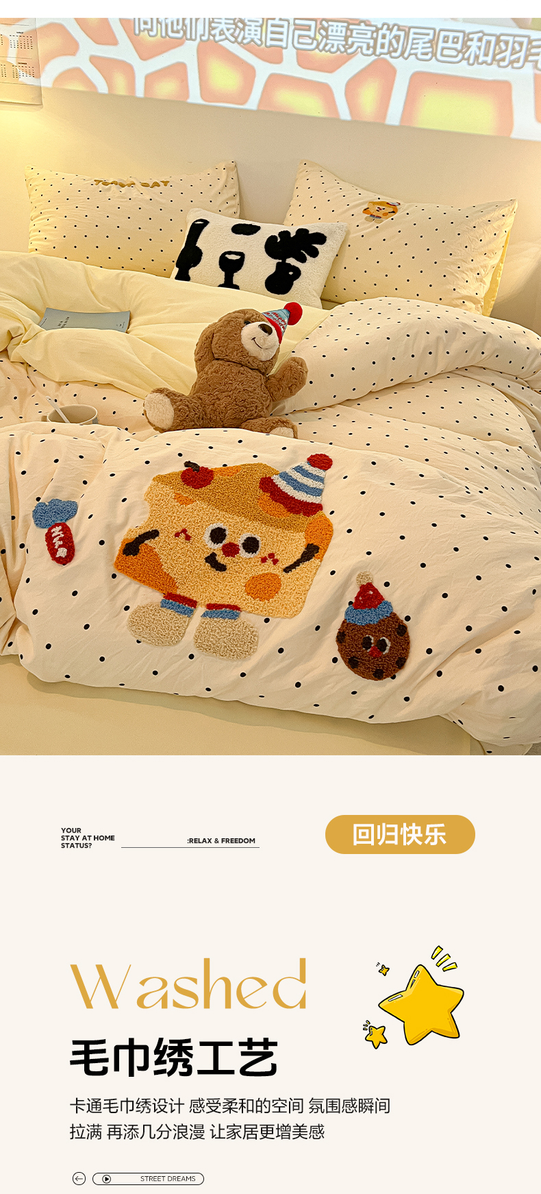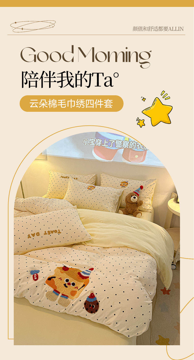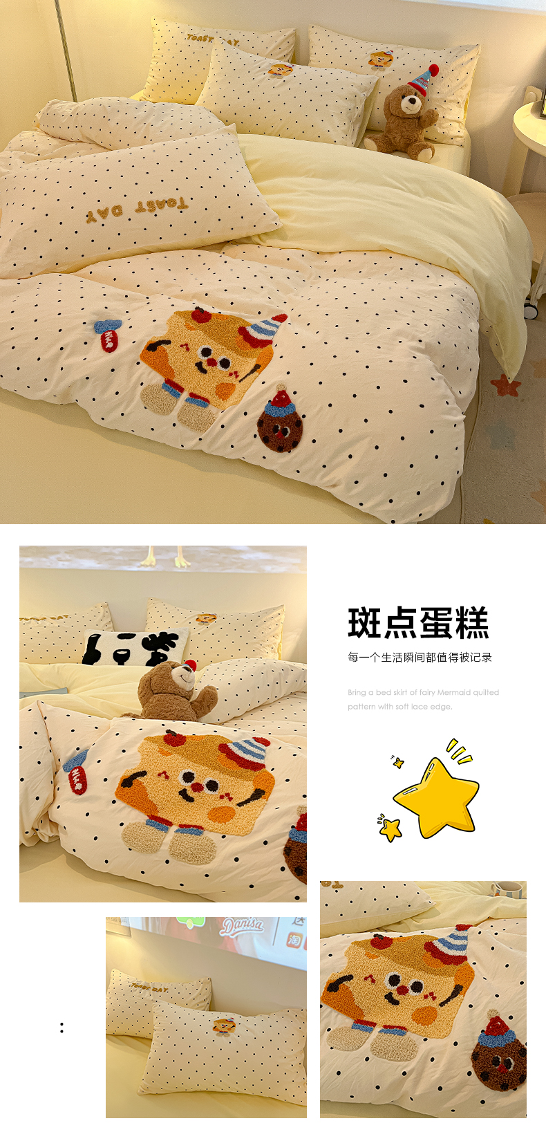 当前位置: 91家纺网 > 商品网购 > 床品套件 > 四件套 > 毛巾绣四件套 > 韩巢家纺 2025新款云朵棉可爱小猫咪毛巾绣被套床单床上用品四件套宿舍三件套(提供卖家秀) 斑点蛋糕