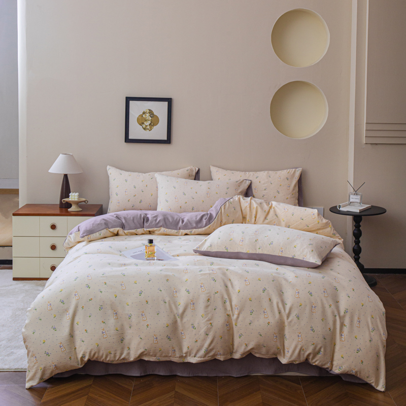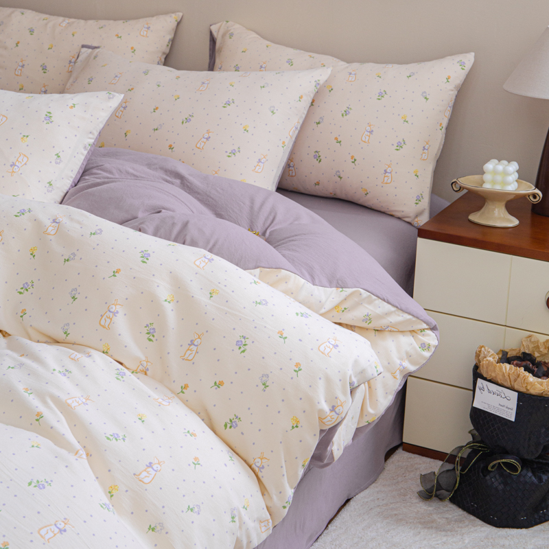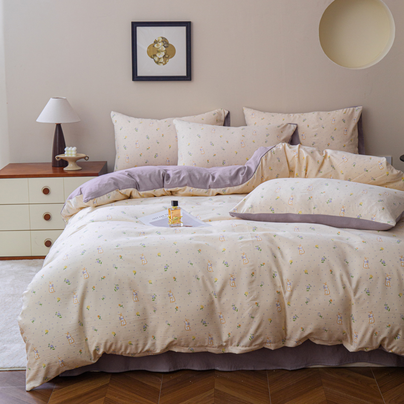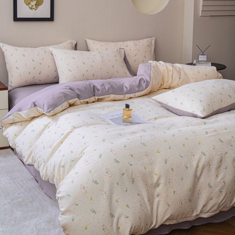 商品名称:利禾家纺 2025新款针织天竺棉水洗棉四件套被套学生宿舍三件套床单款 安琪拉兔