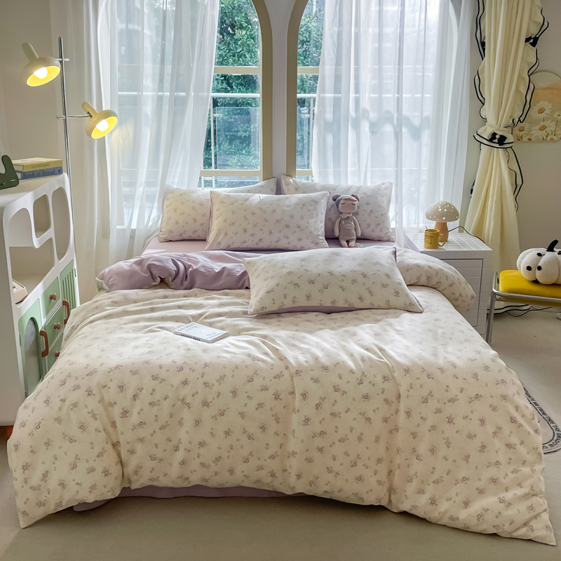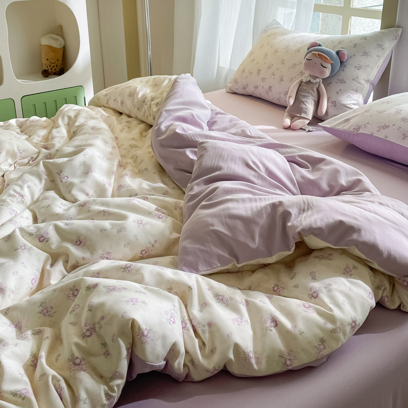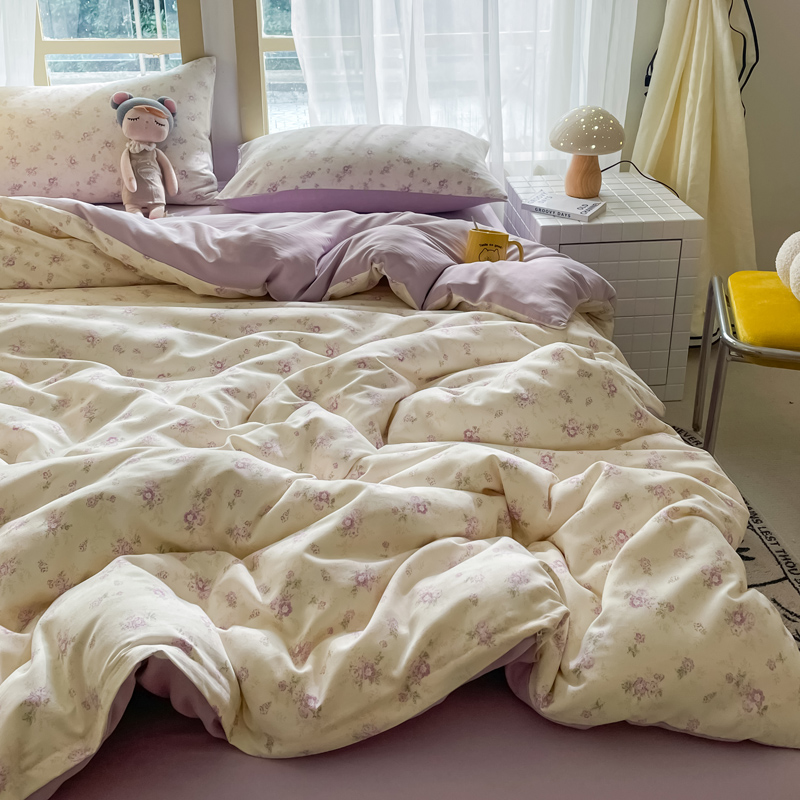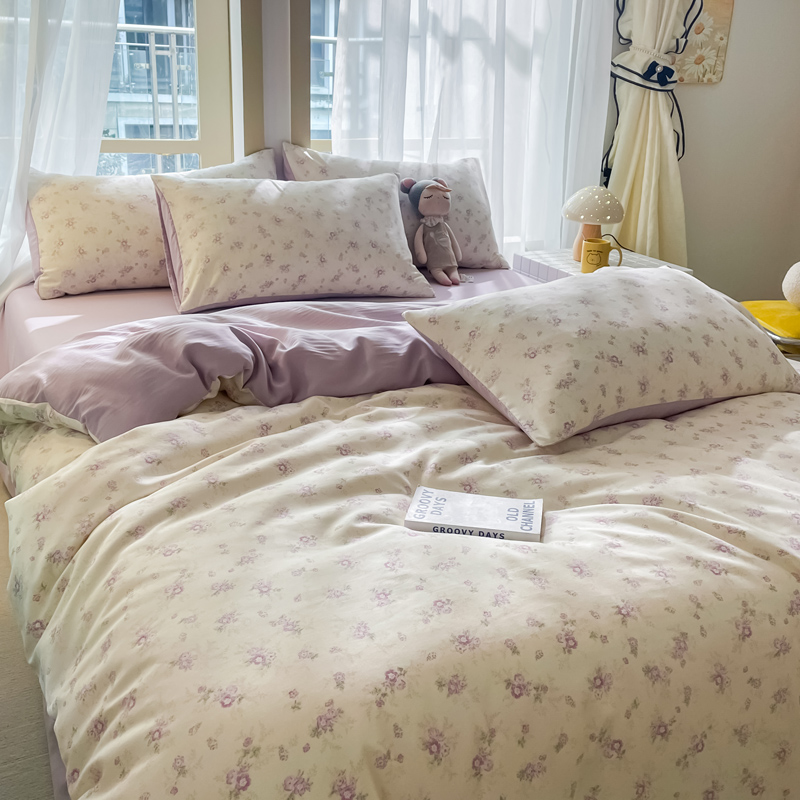 仟网汇 2025新款针织双层纱AB版四件套 莱茵紫花