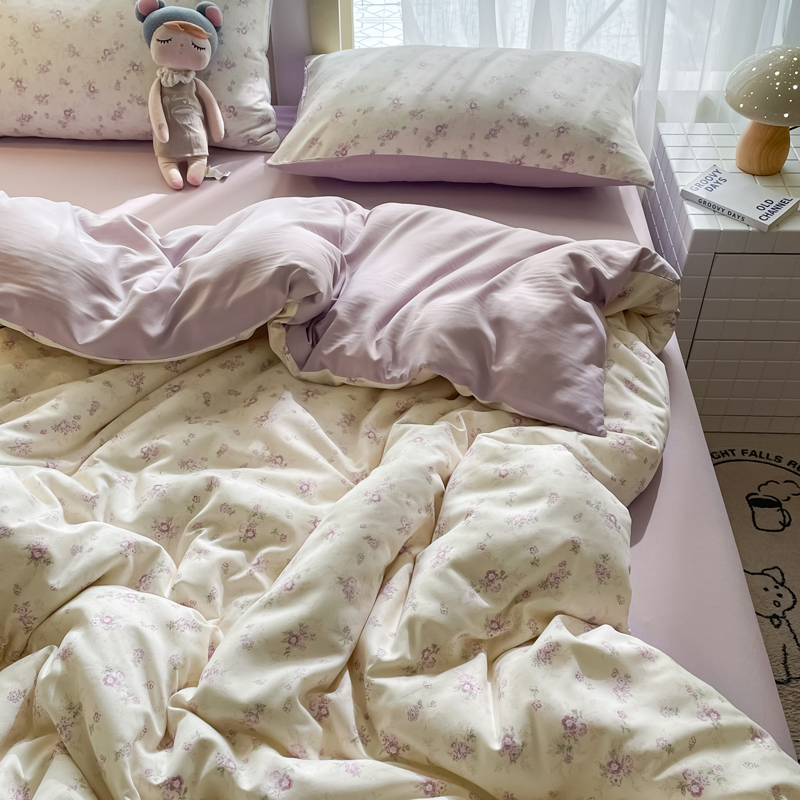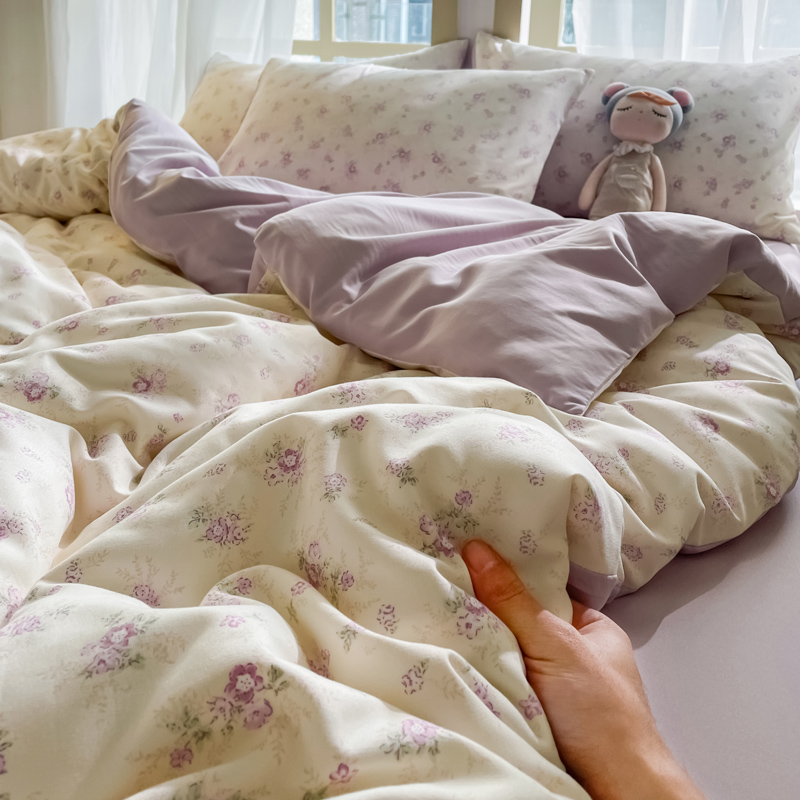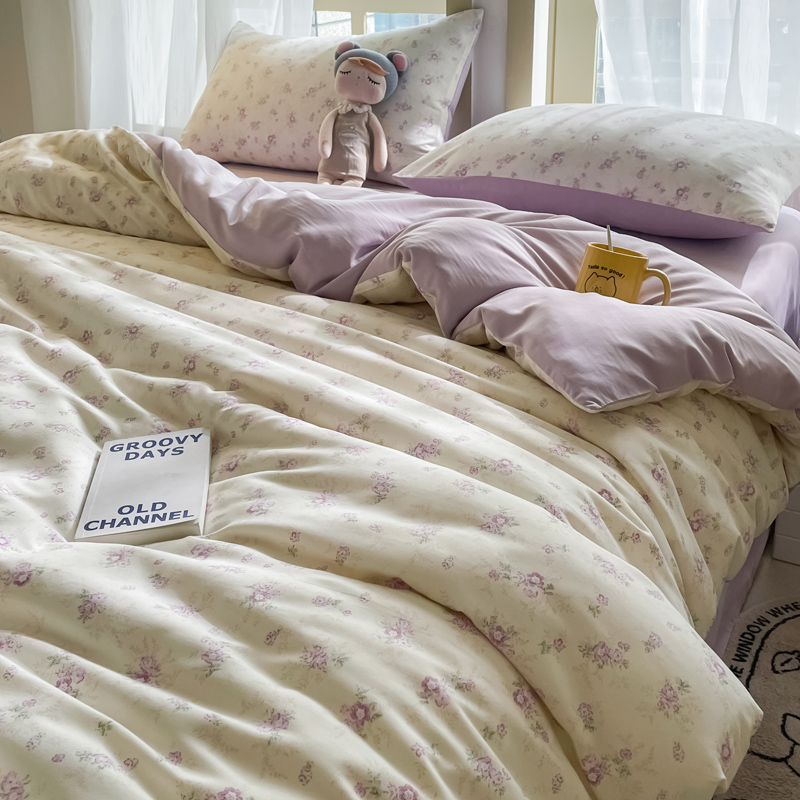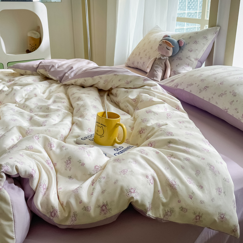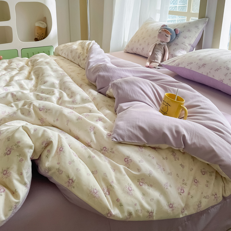 商品名称:仟网汇 2025新款针织双层纱AB版四件套 莱茵紫花