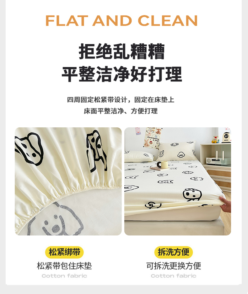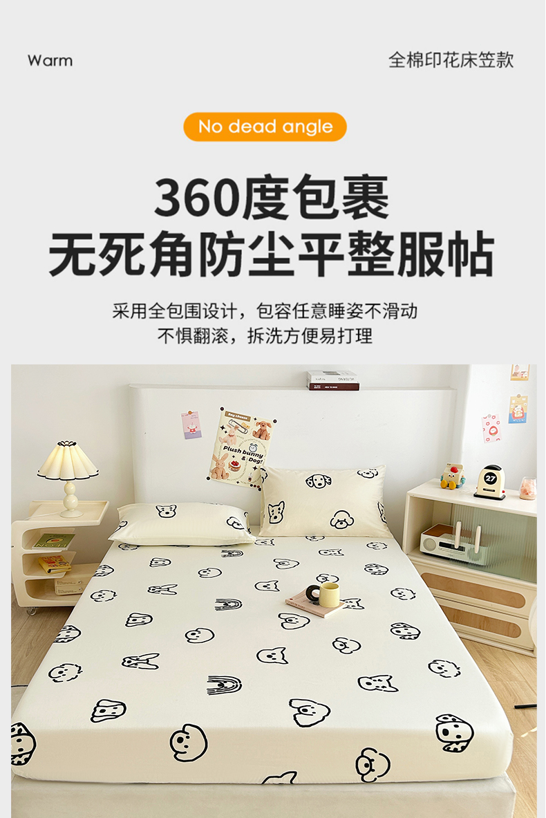 商品名称:柠馨 2025新款13372全棉床单床笠枕套被套单品系列-单床笠 小甜狗