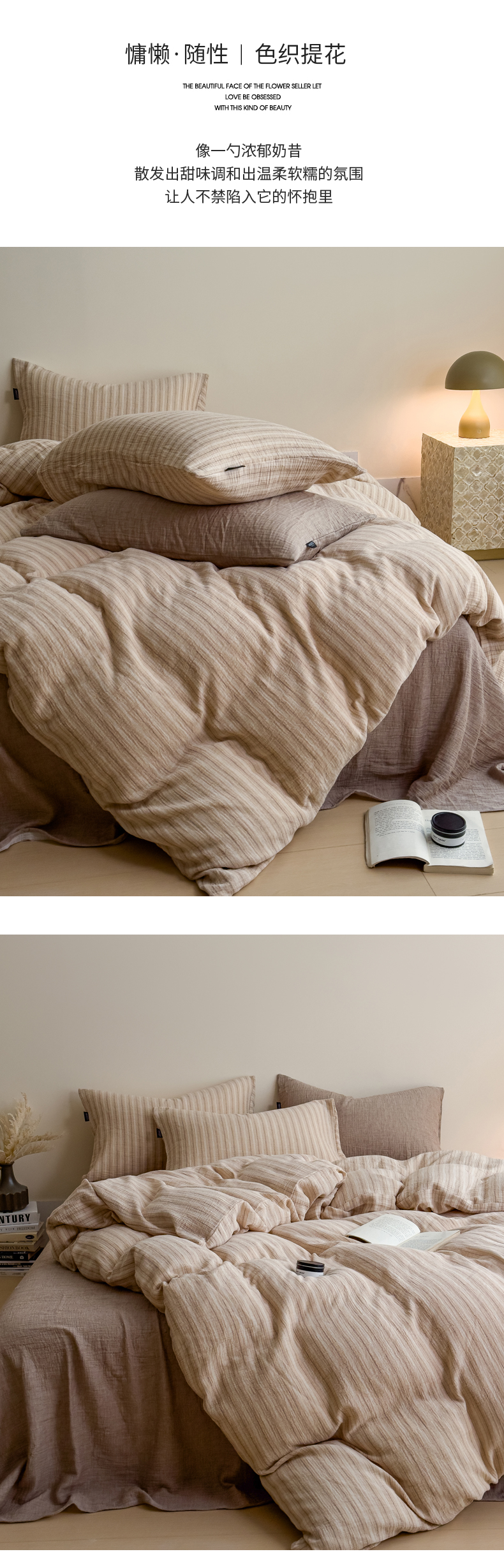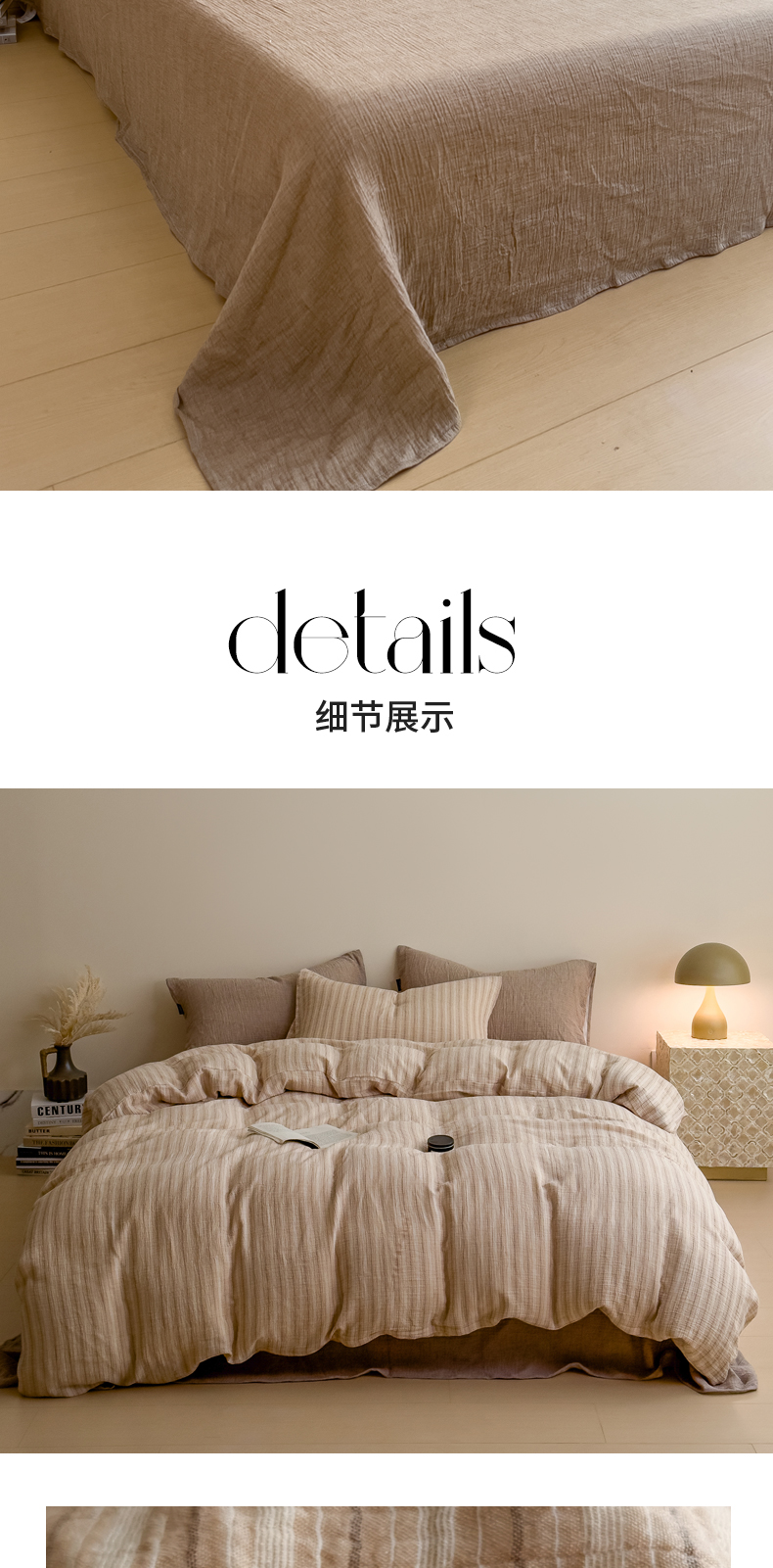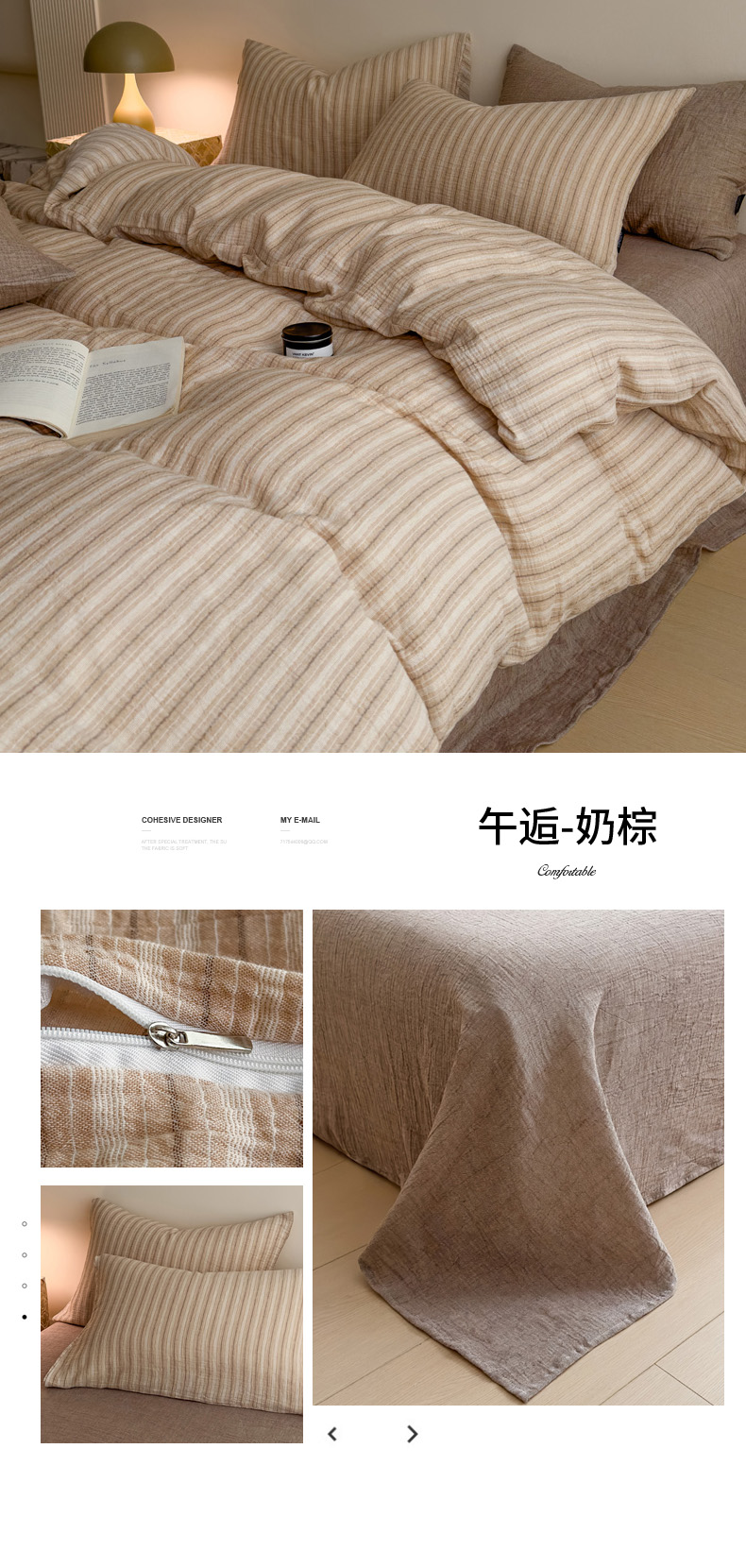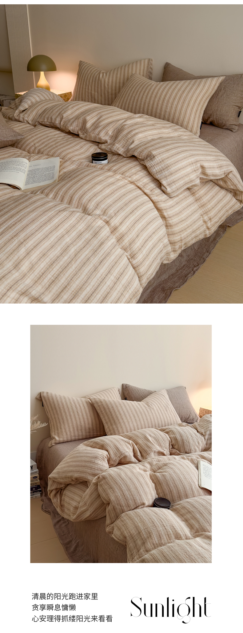 当前位置: 91家纺网 > 商品网购 > 床品套件 > 四件套 > 全棉普通四件套 > 席世家条纹皱皱纱-午逅 午逅-奶棕