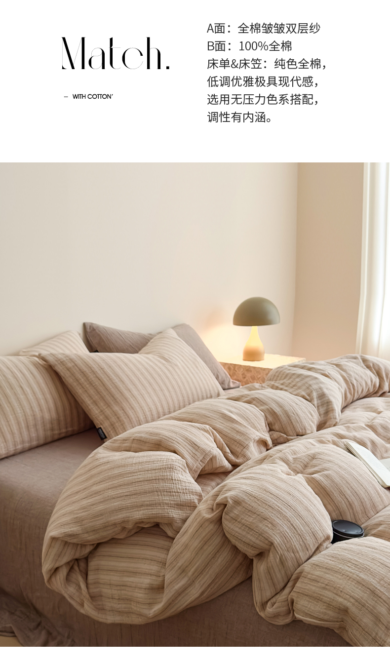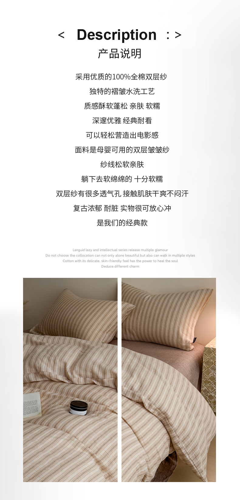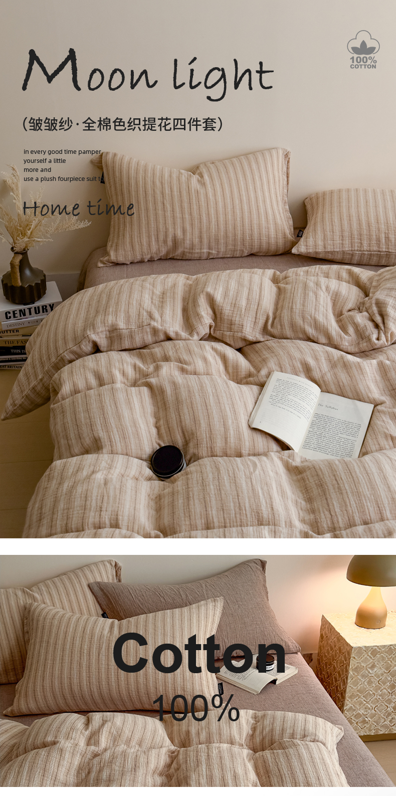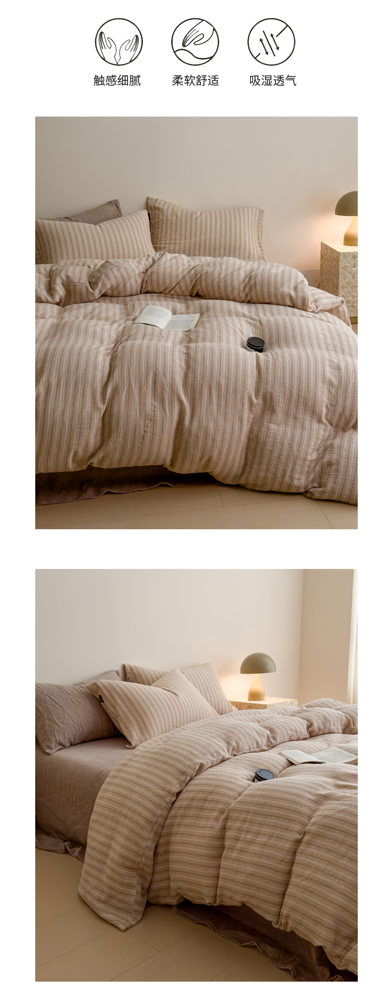 当前位置: 91家纺网 > 商品网购 > 床品套件 > 四件套 > 全棉普通四件套 > 席世家条纹皱皱纱-午逅 午逅-奶棕