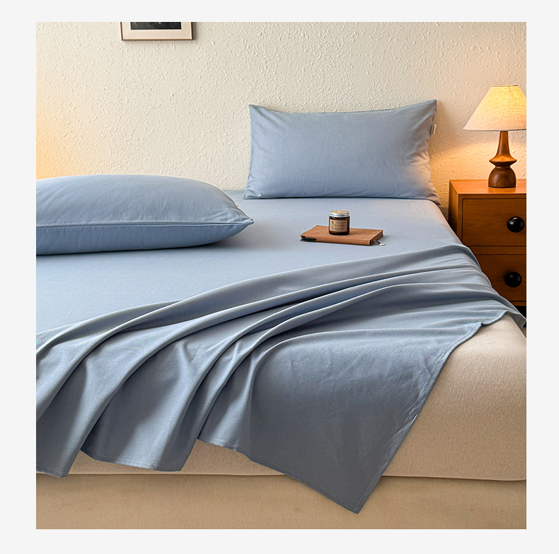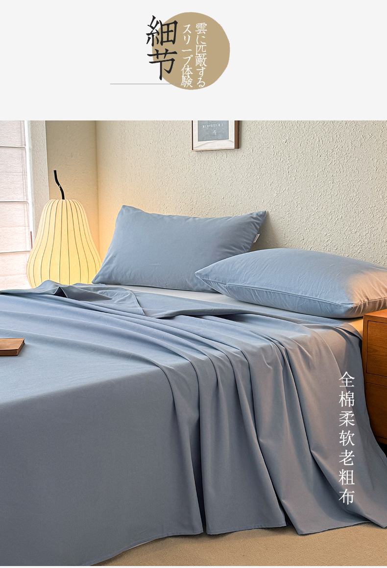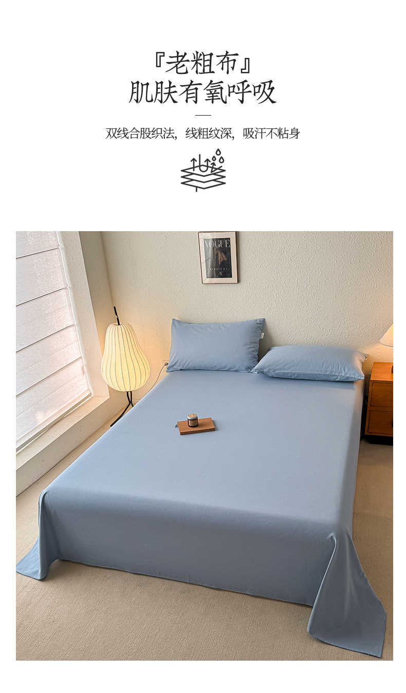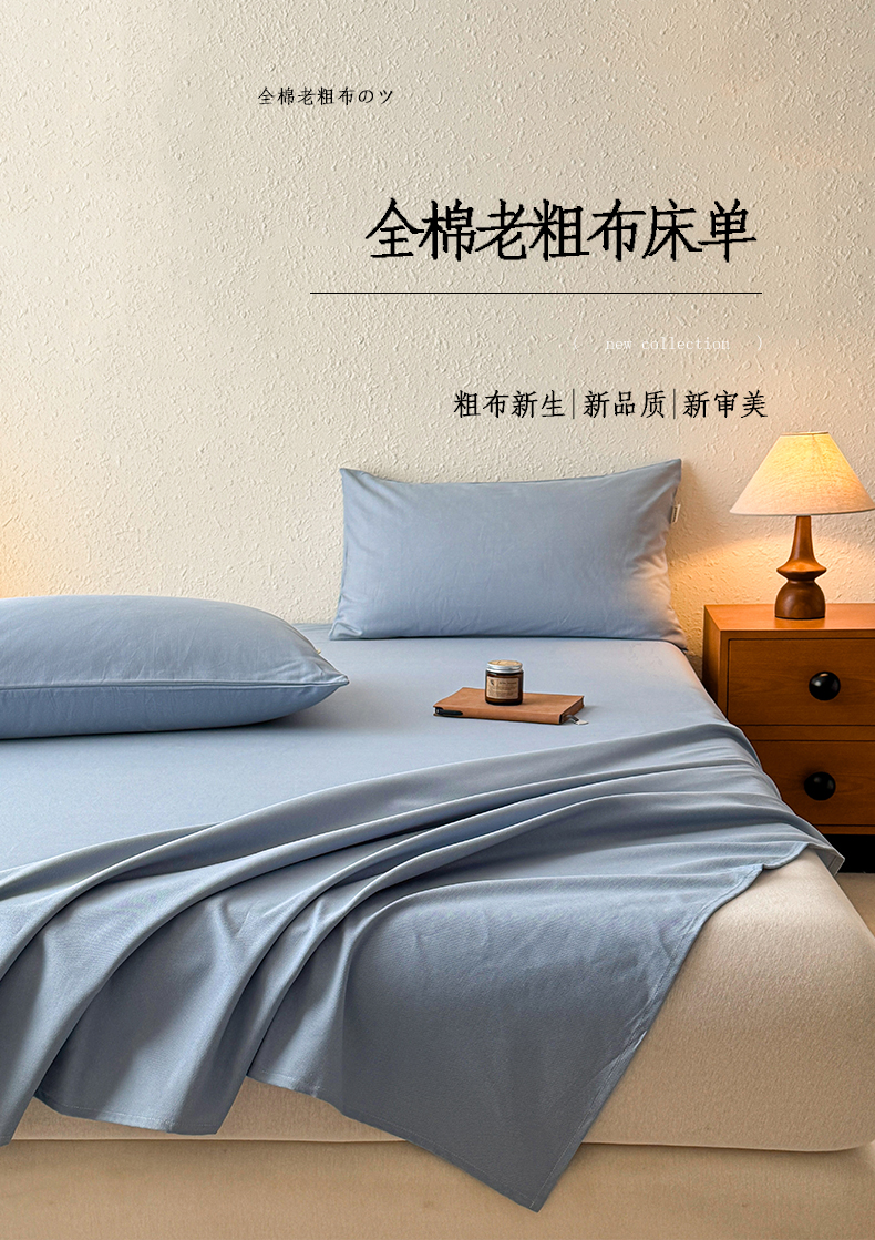 卧趣家纺 2025新品全棉纯色老粗布单品床单系列 烟蓝