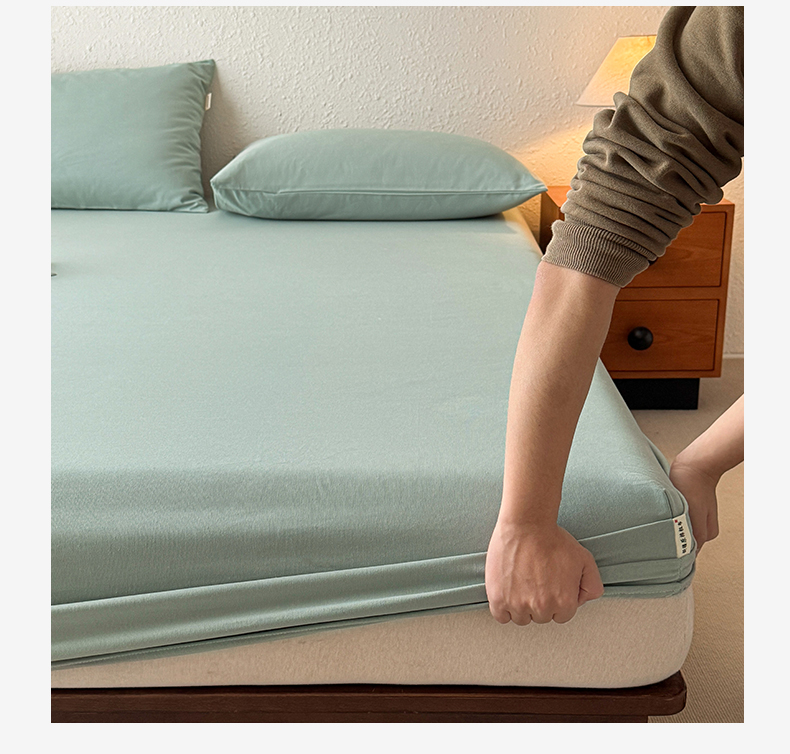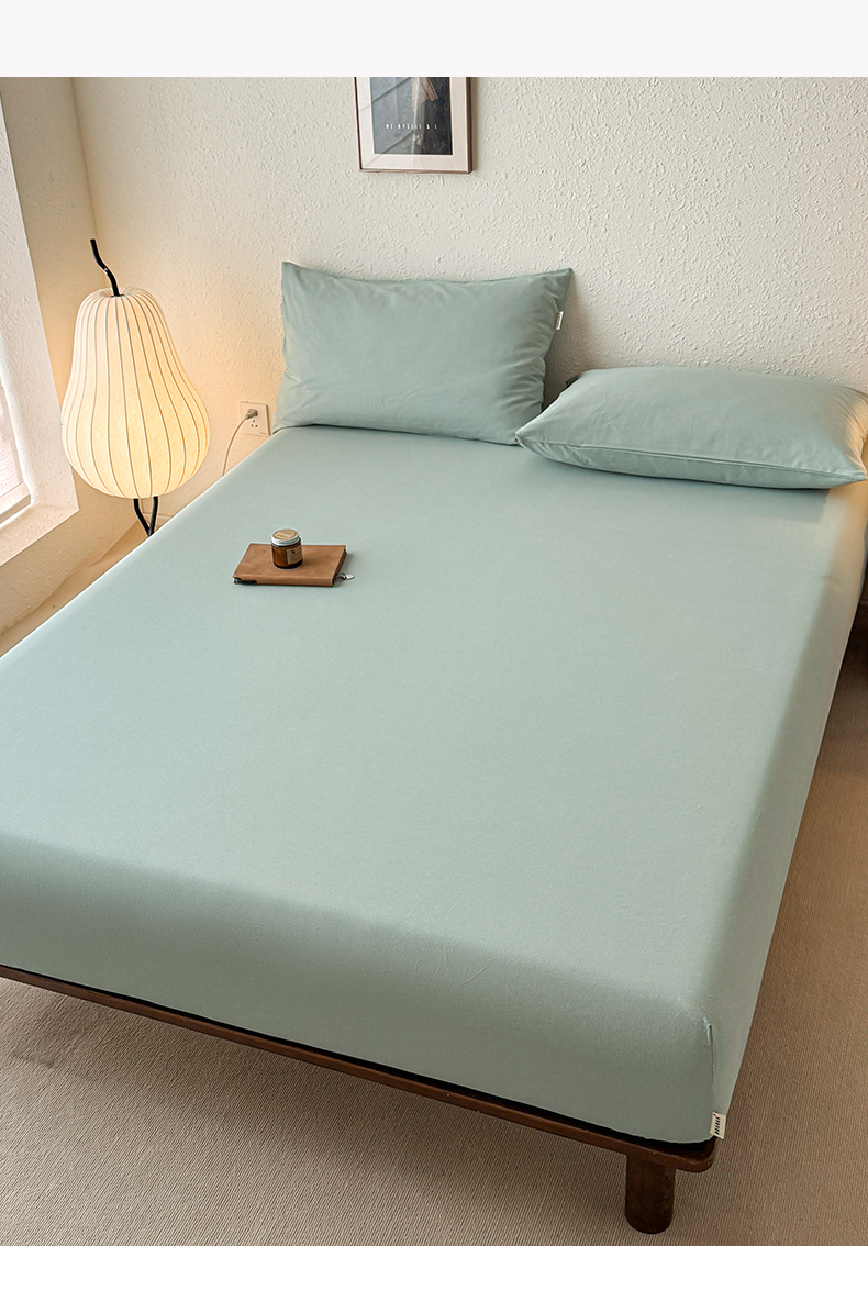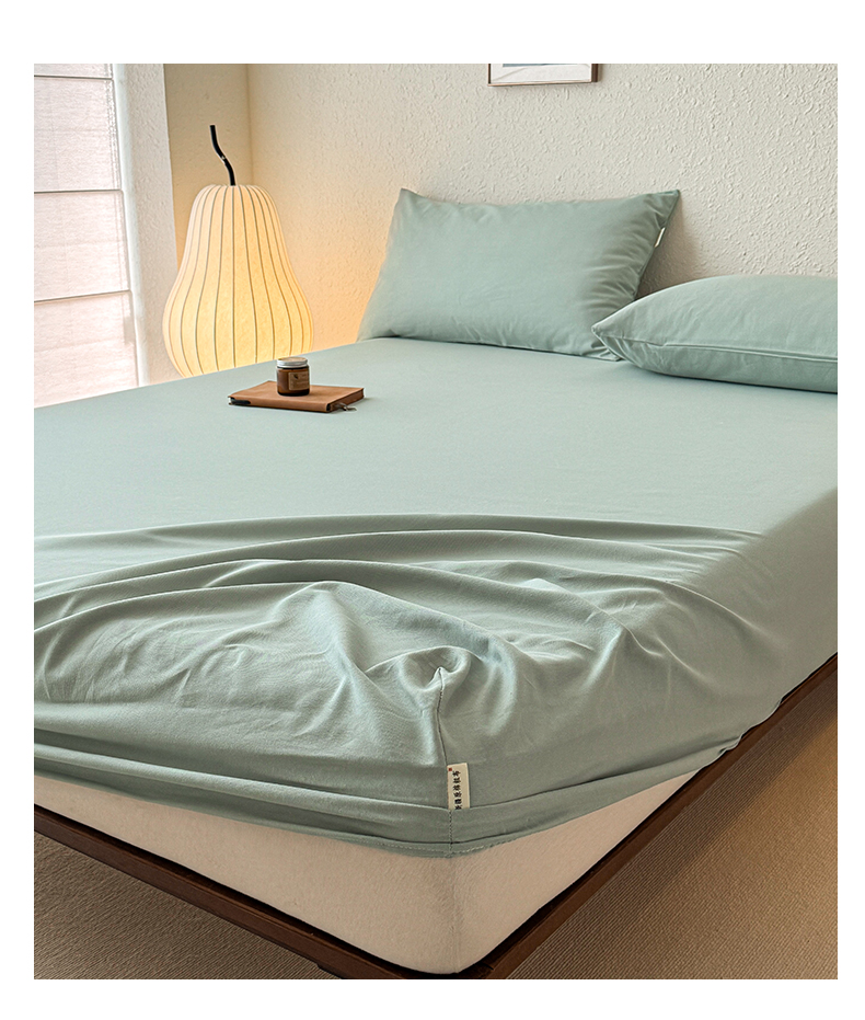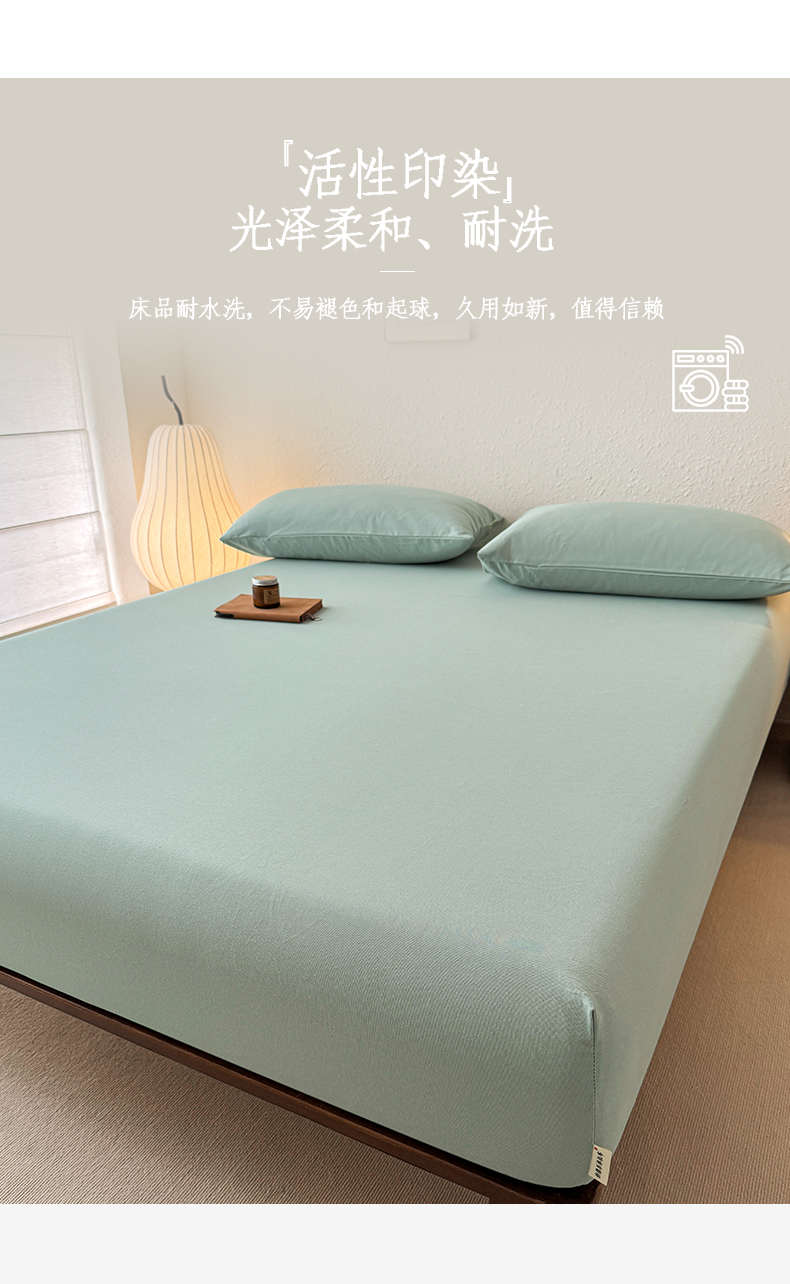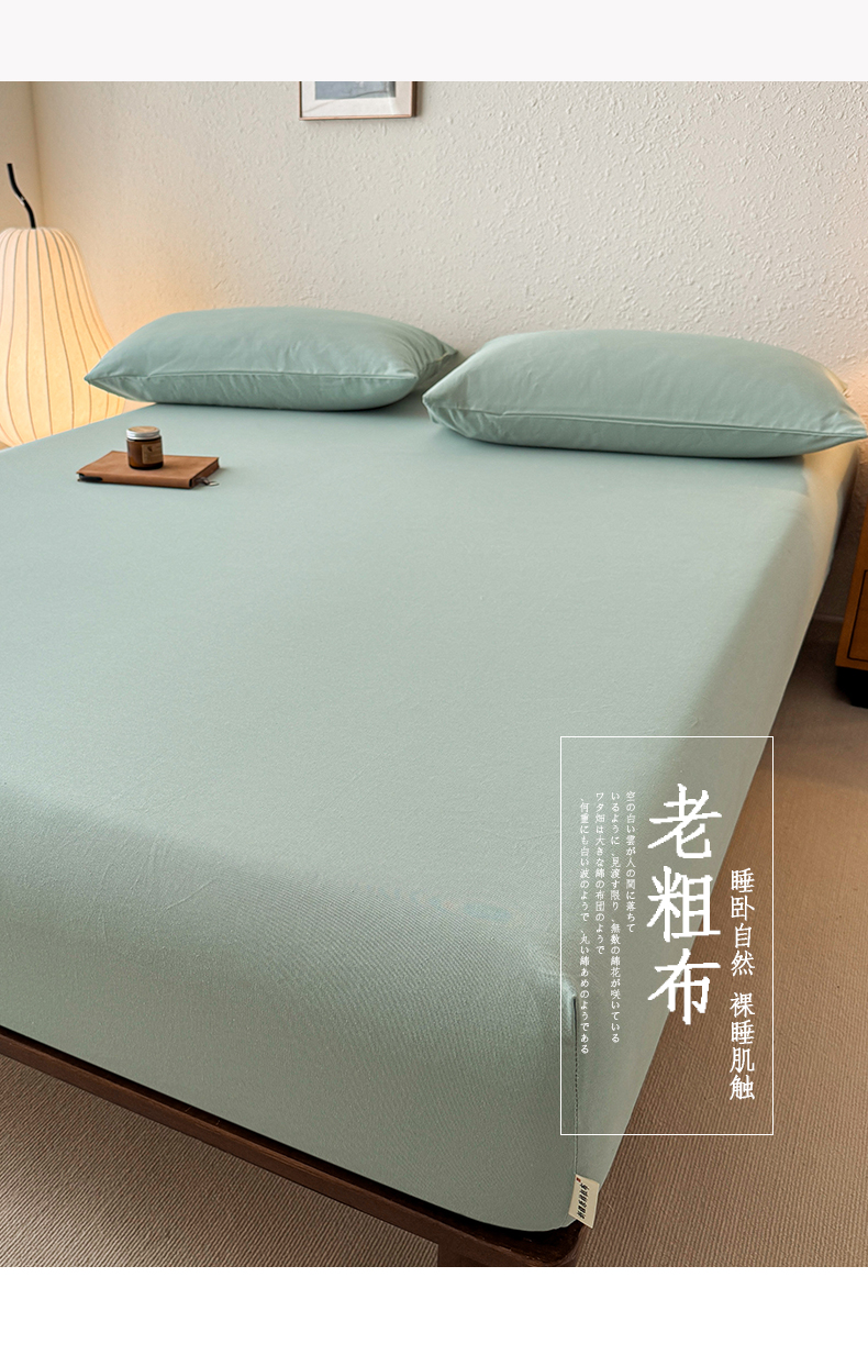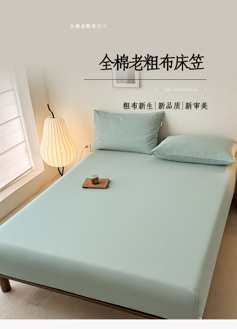 卧趣家纺 2025新品全棉纯色老粗布单品床笠系列 烟青
