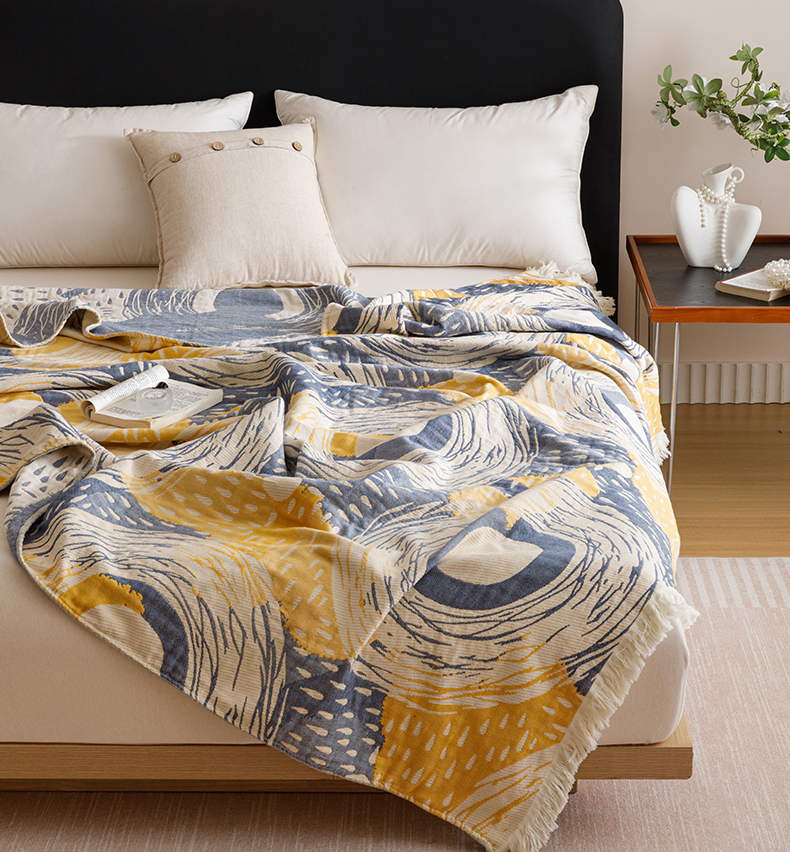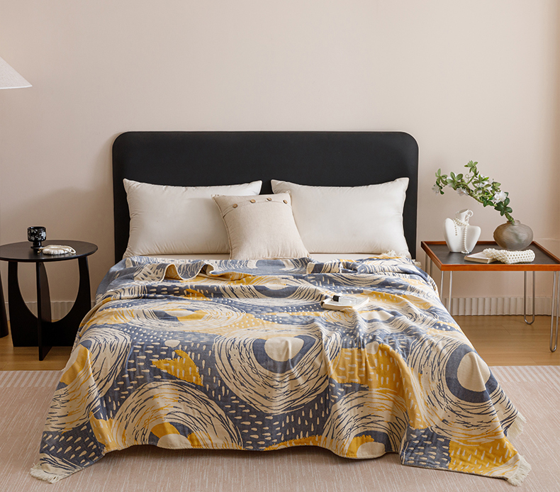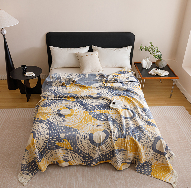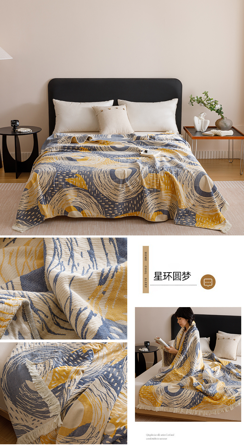 悦然毛巾被 2025新款全棉工艺四层纱毛巾被 星环圆梦