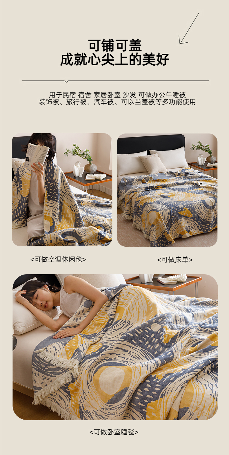商品名称:悦然毛巾被 2025新款全棉工艺四层纱毛巾被 星环圆梦