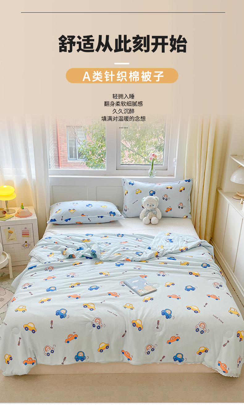 心卓婴童馆 2025新款A类针织棉被芯—影棚图 小汽车蓝
