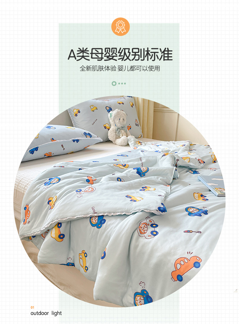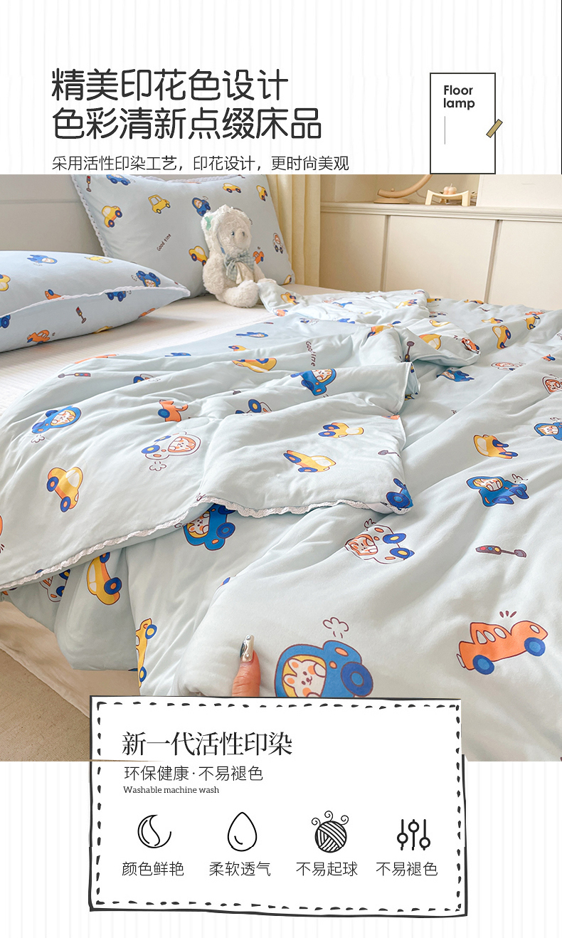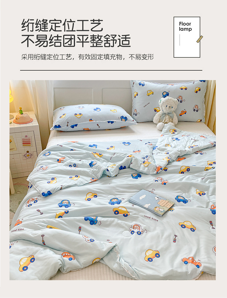 • 91家纺网 家纺一手货源 找家纺 心卓婴童馆 2025新款A类针织棉被芯—影棚图 小汽车蓝