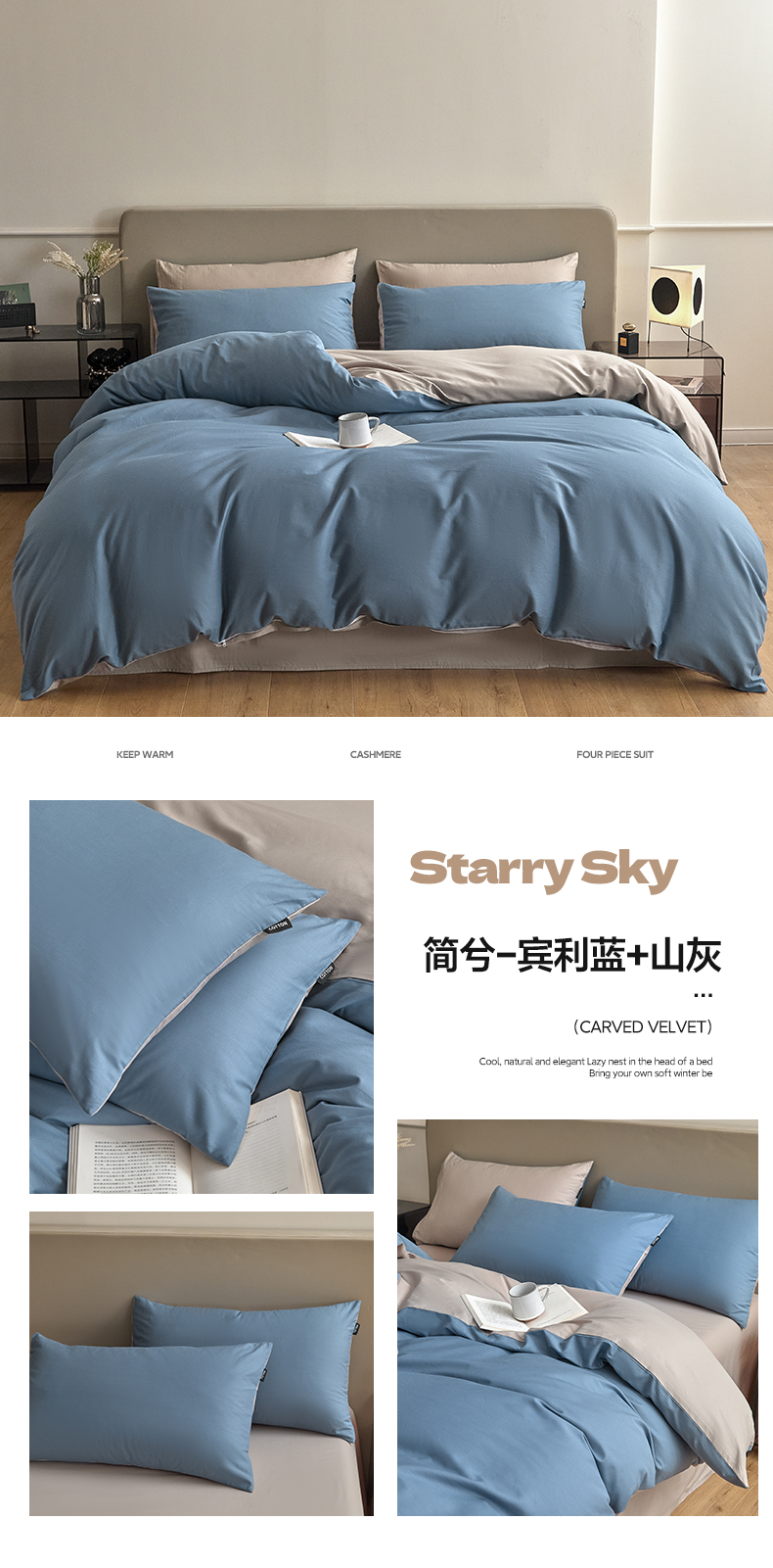 当前位置: 91家纺网 > 商品网购 > 床品套件 > 四件套 > 全棉普通四件套 > 佳汐蓝家纺 2025新款全棉纯色双拼-简兮系列四件套 简兮-宾利蓝+山灰