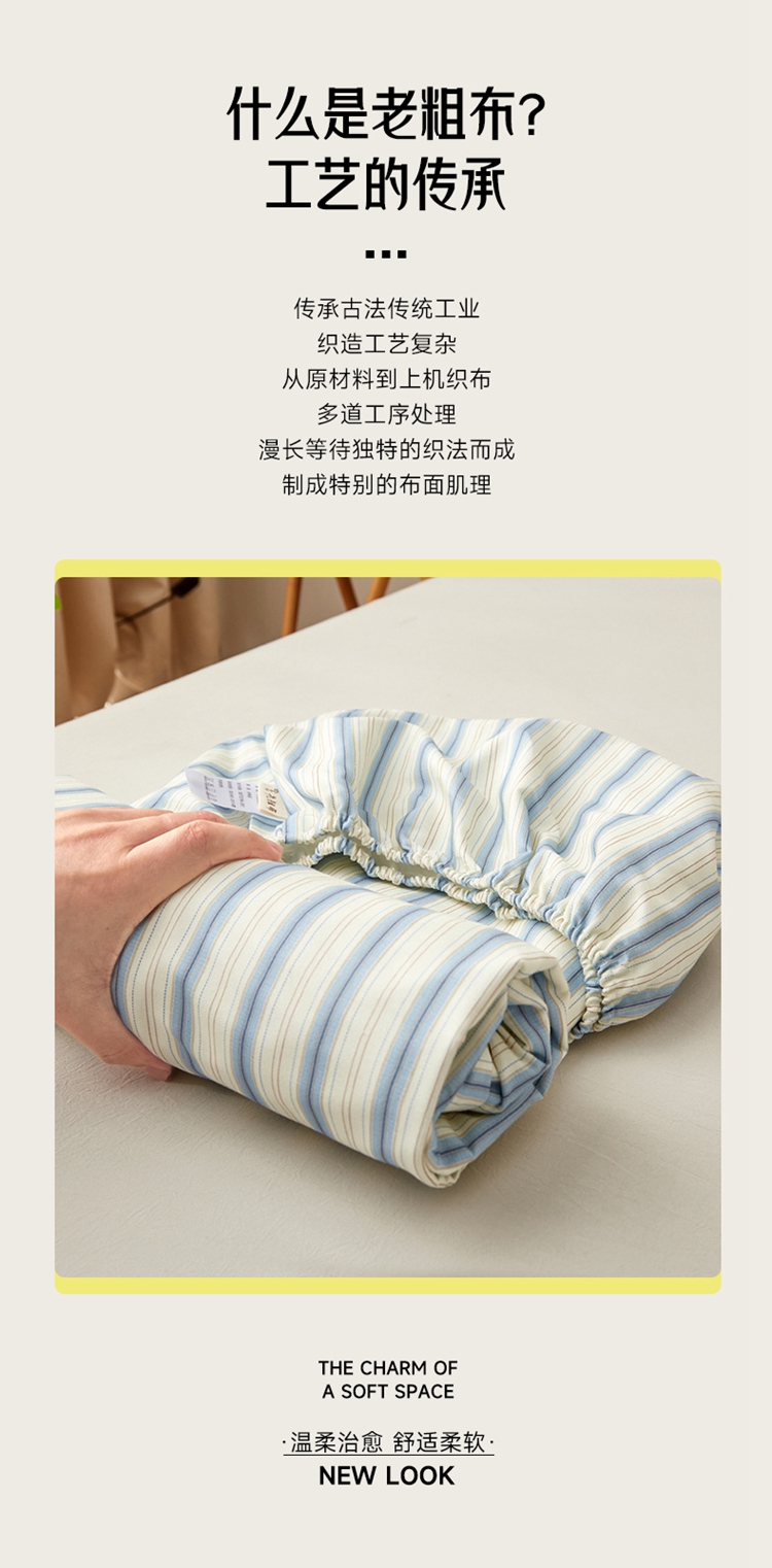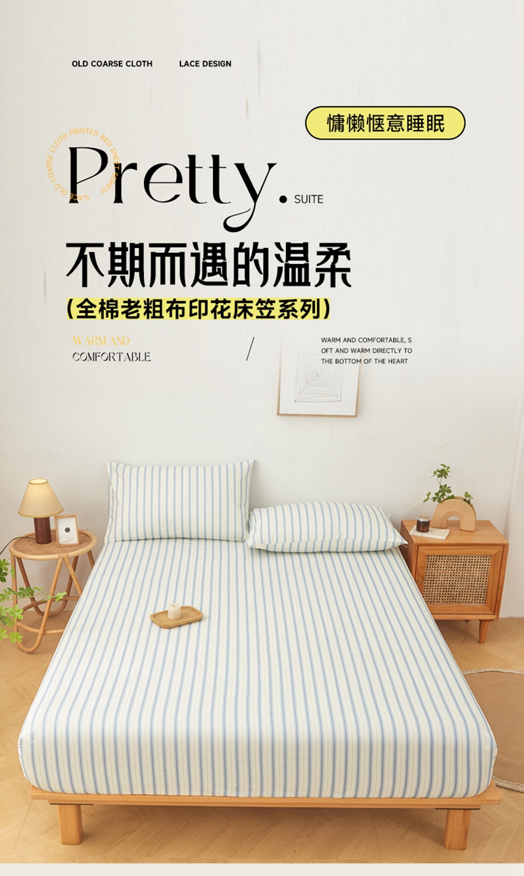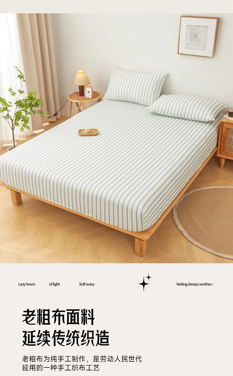 商品名称:慕梵家居 2025新款全棉老粗布床笠系列 全棉老粗布-彩条兰