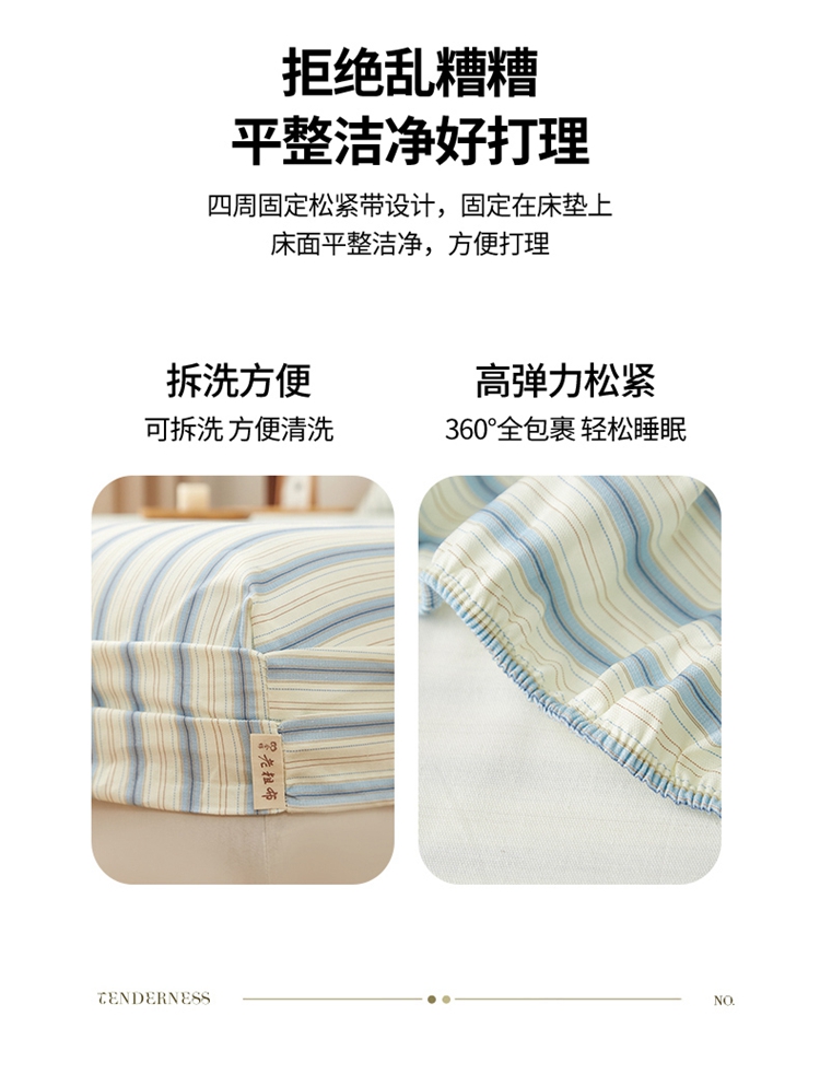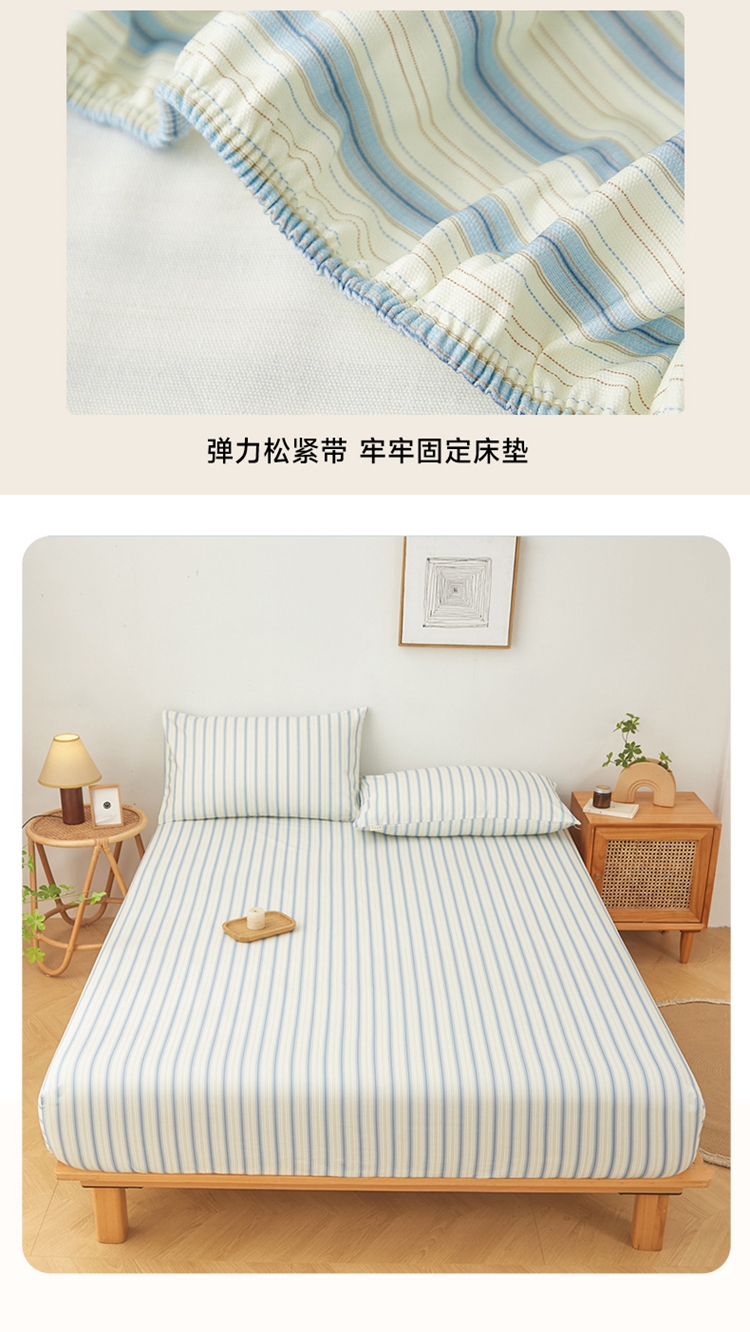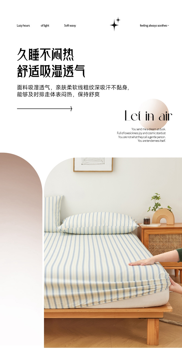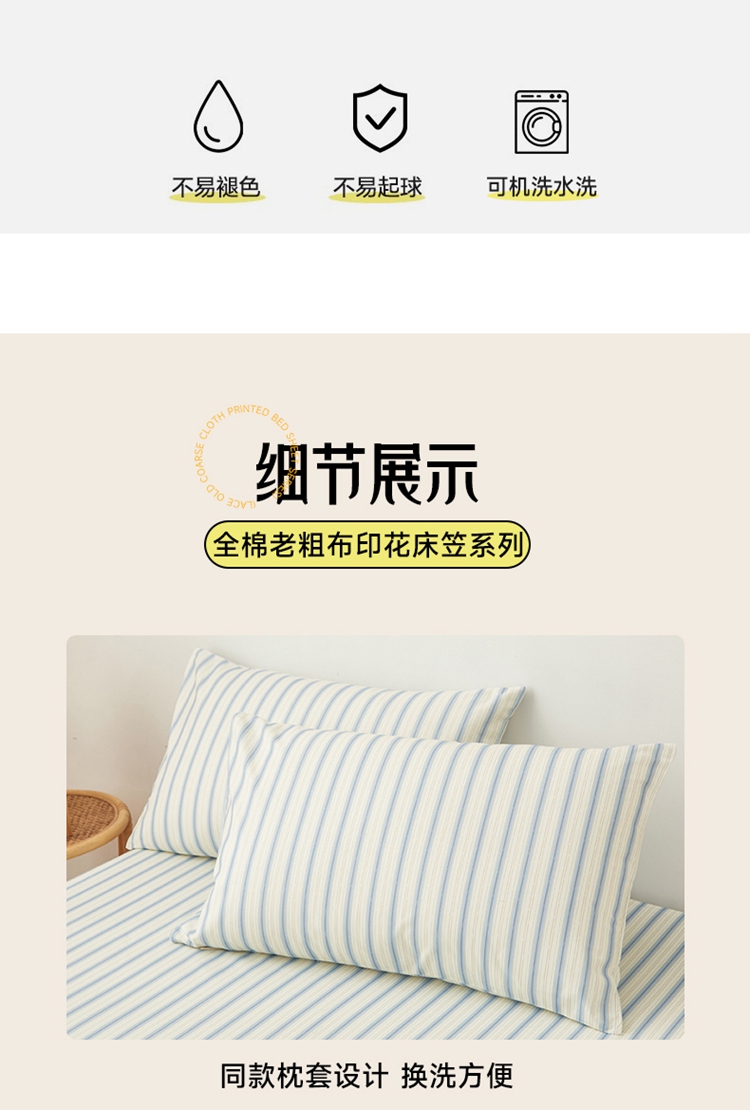 商品名称:慕梵家居 2025新款全棉老粗布床笠系列 全棉老粗布-彩条兰