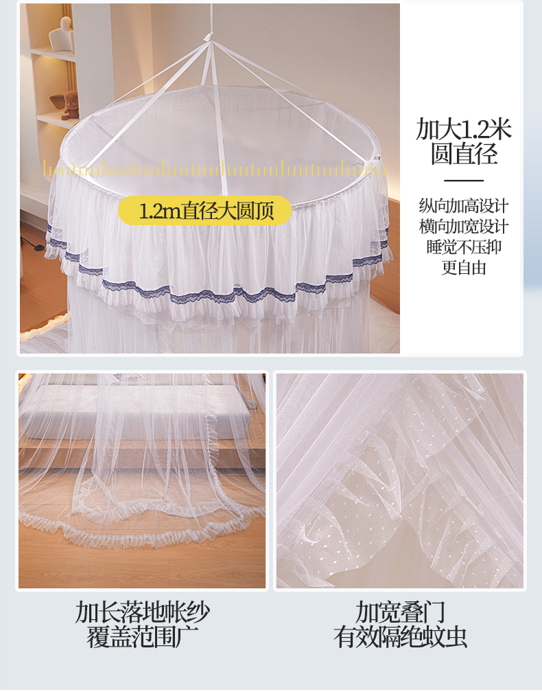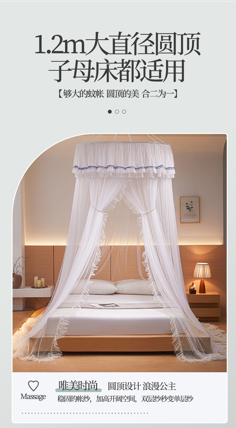 商品名称:夏彩 2025新款直径加高加密加柔吊顶蚊帐-88621 88621-雅士白