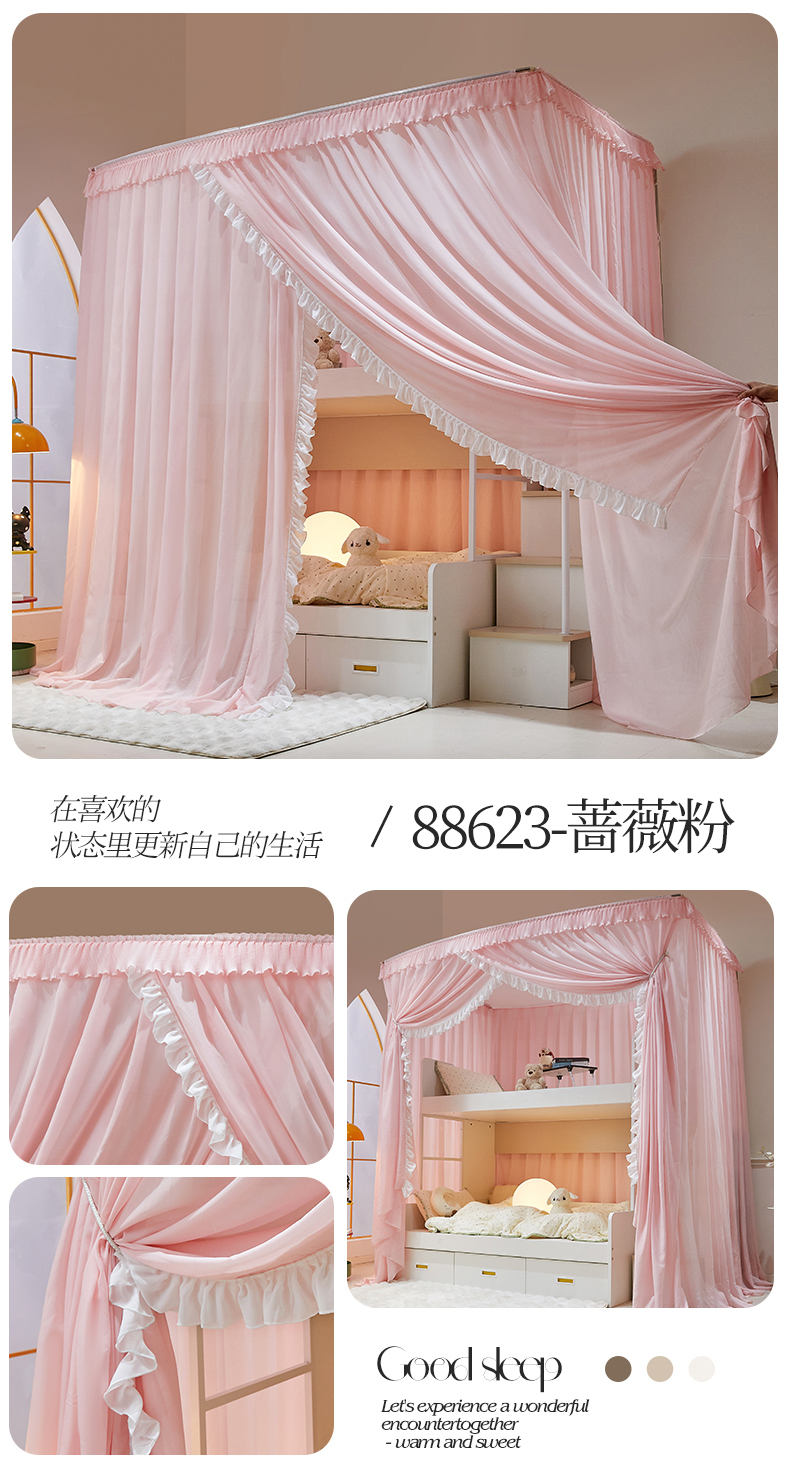 (总)夏彩 2025新款蕾丝U型防摔坐床蚊帐-88630,绿雅灰,藕玉色,香槟色