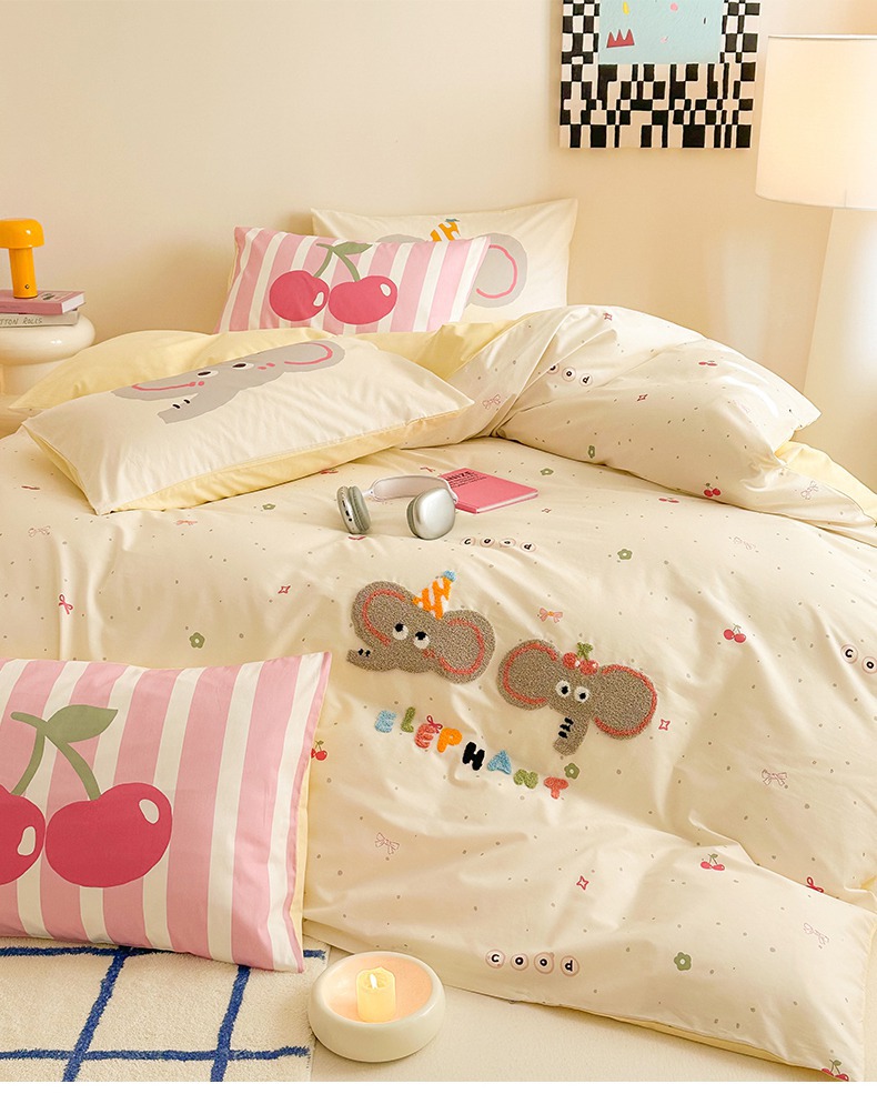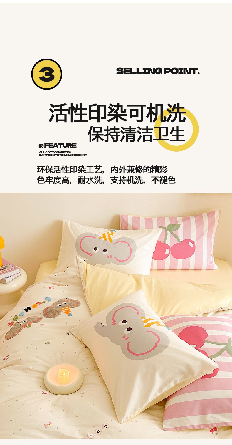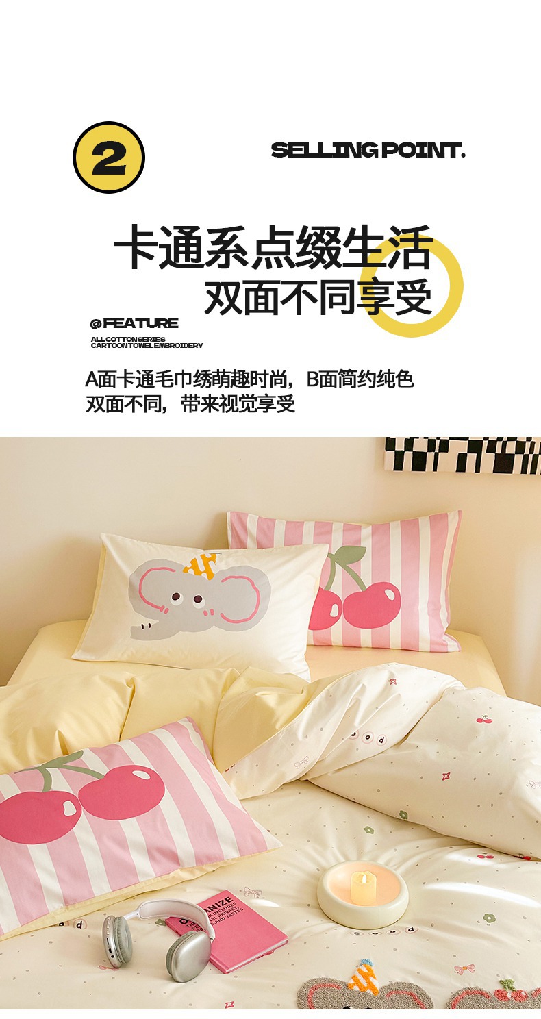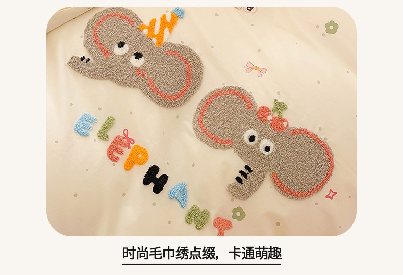 商品名称:典曼家纺 2025新款印花毛巾绣四件套系列 甜蜜小象