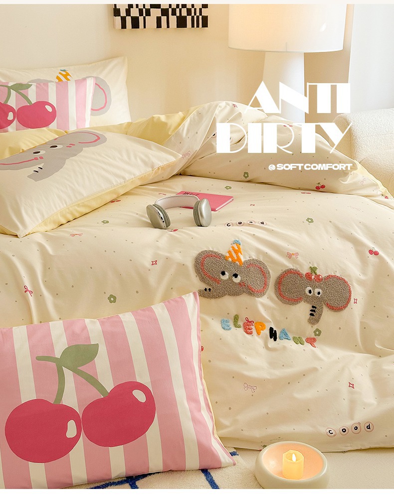 典曼家纺 2025新款印花毛巾绣四件套系列 甜蜜小象