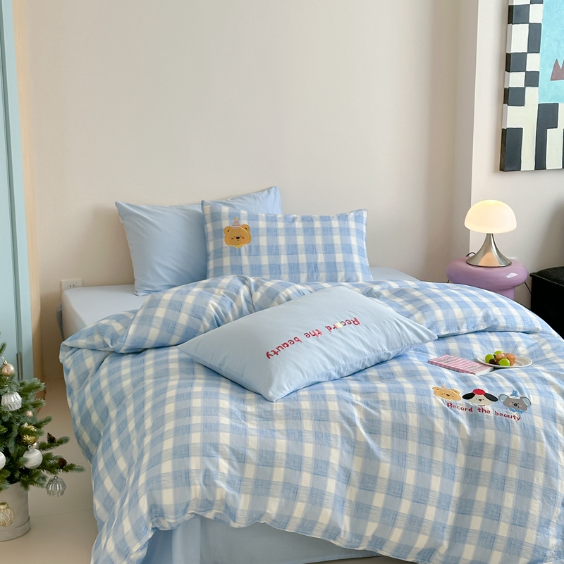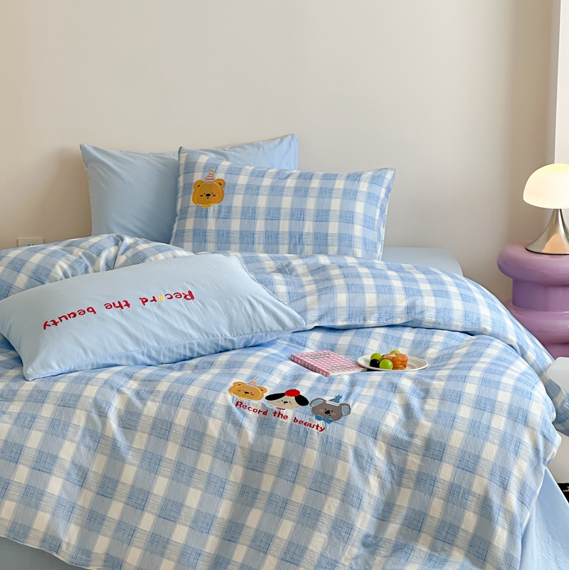 (总)觅糖家纺 2025新款色织水洗提花小波点贴布系列四件套,sweet兔,滑板小狮子,可爱松鼠,奶油比熊,小熊的故事,小羊驼